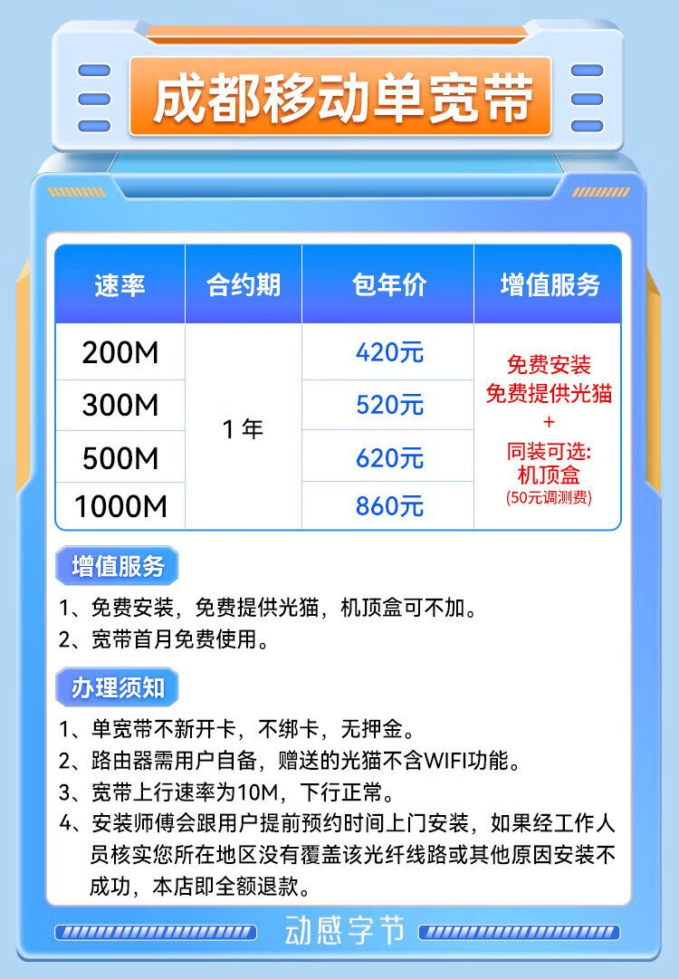 China Mobile Sichuan Chengdu Mobile Broadband annual broadband online processing door-to-door installation King Kong 100M single broadband 400 yuan per year