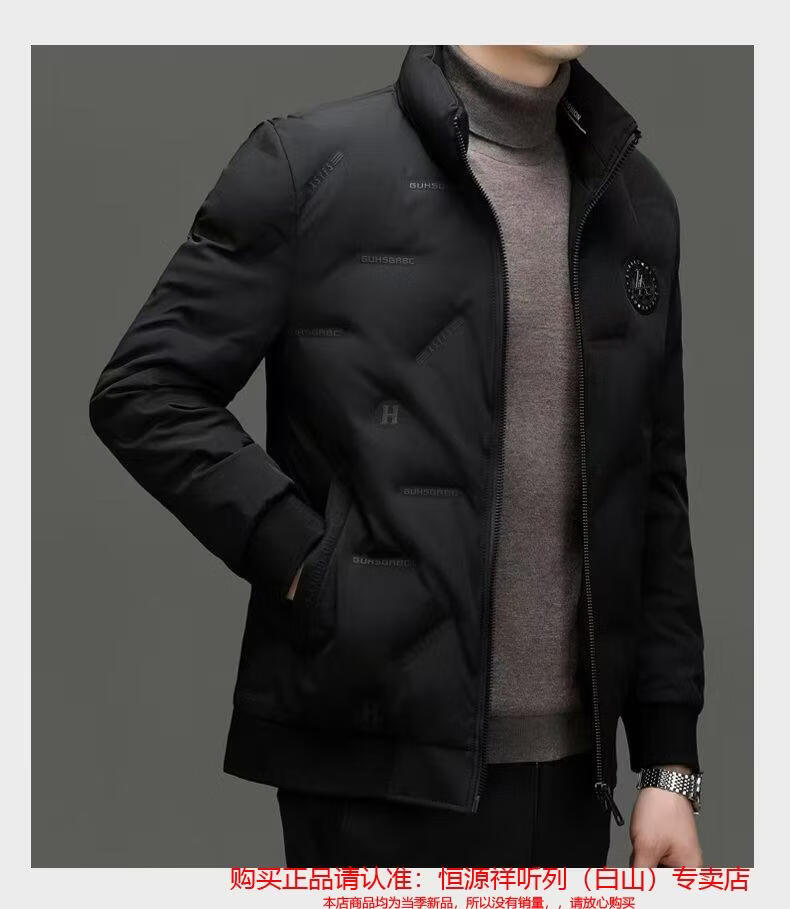 Hengyuanxiang 2025 New Middle-aged and Elderly Men's Winter Down Jackets Casual Fashion Jackets Dad's White Duck Down Jackets Brand High-end Men's Clothing Black L