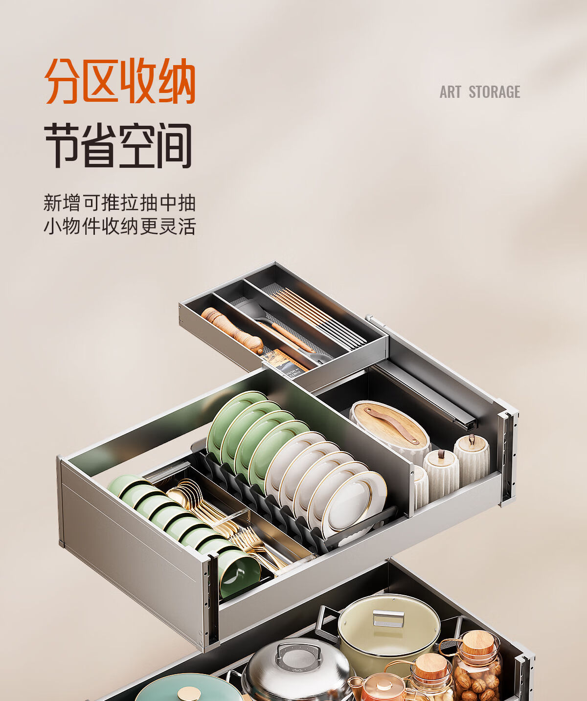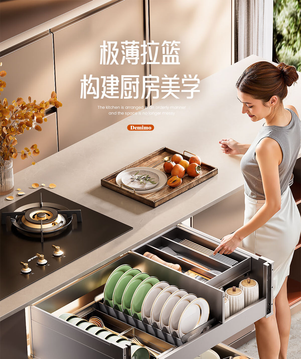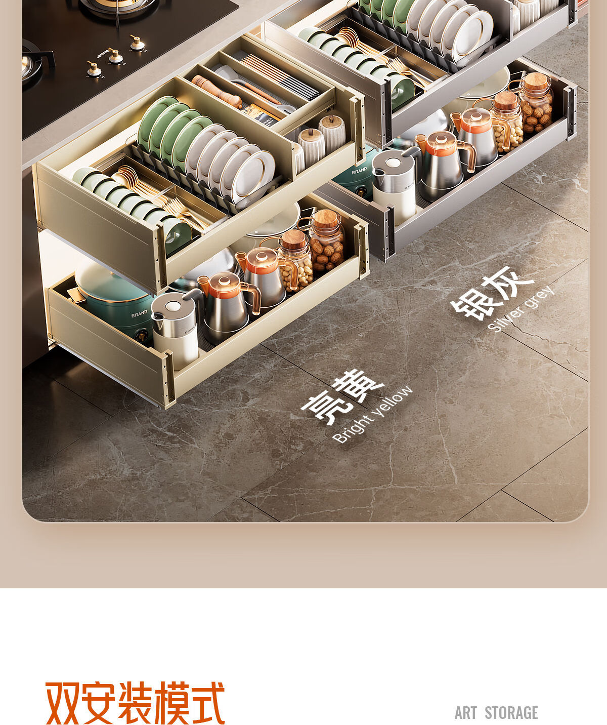 BLUM kitchen cabinet pull-basket bowl basket drawer-type cupboard multi-layer pull-basket bowls and pots blue tool drawer-with drain basket fluorine porcelain gray 600 cabinet thickened basket body-1 double layer drawer type