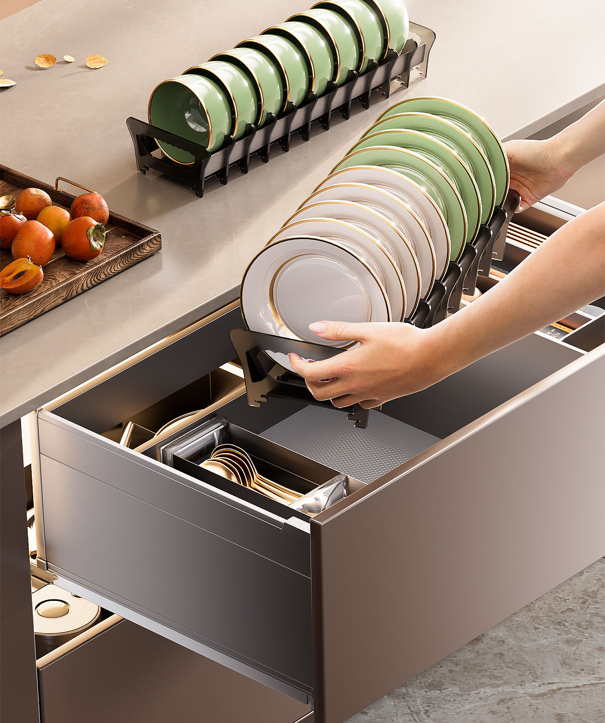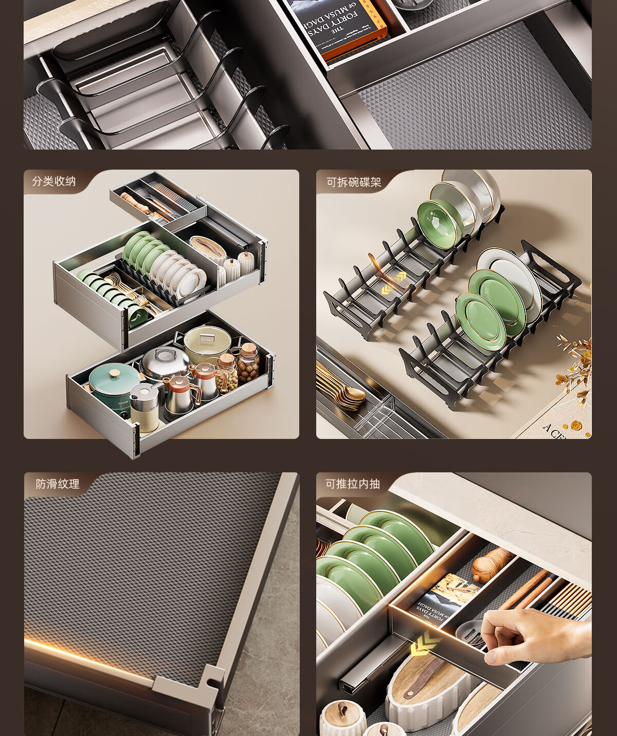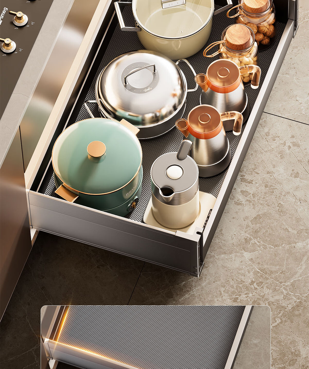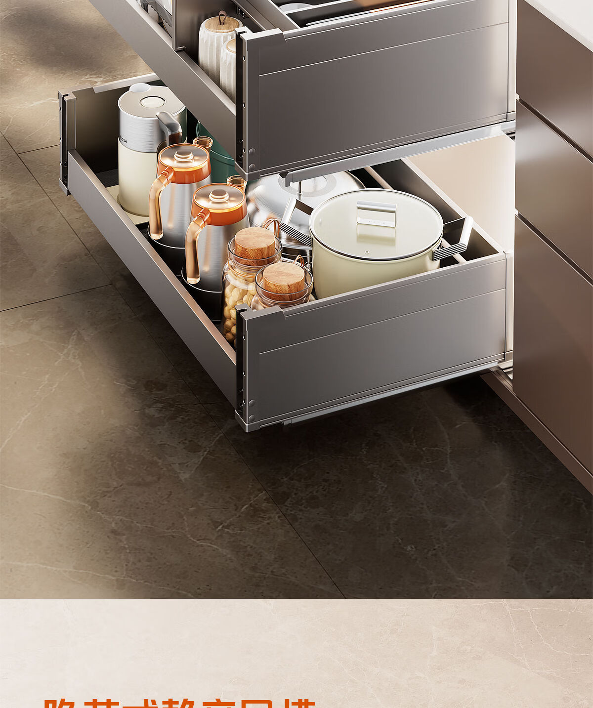 BLUM kitchen cabinet pull-basket bowl basket drawer-type cupboard multi-layer pull-basket bowls and pots blue tool drawer-with drain basket fluorine porcelain gray 600 cabinet thickened basket body-1 double layer drawer type
