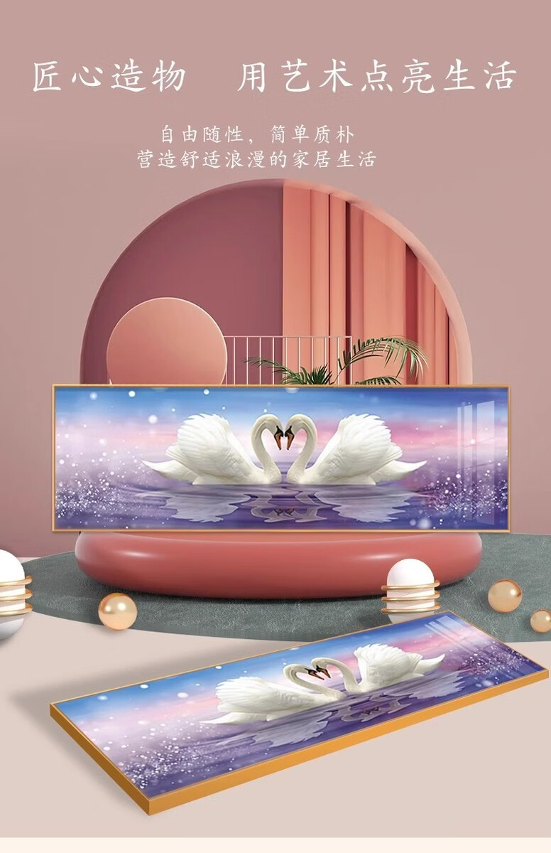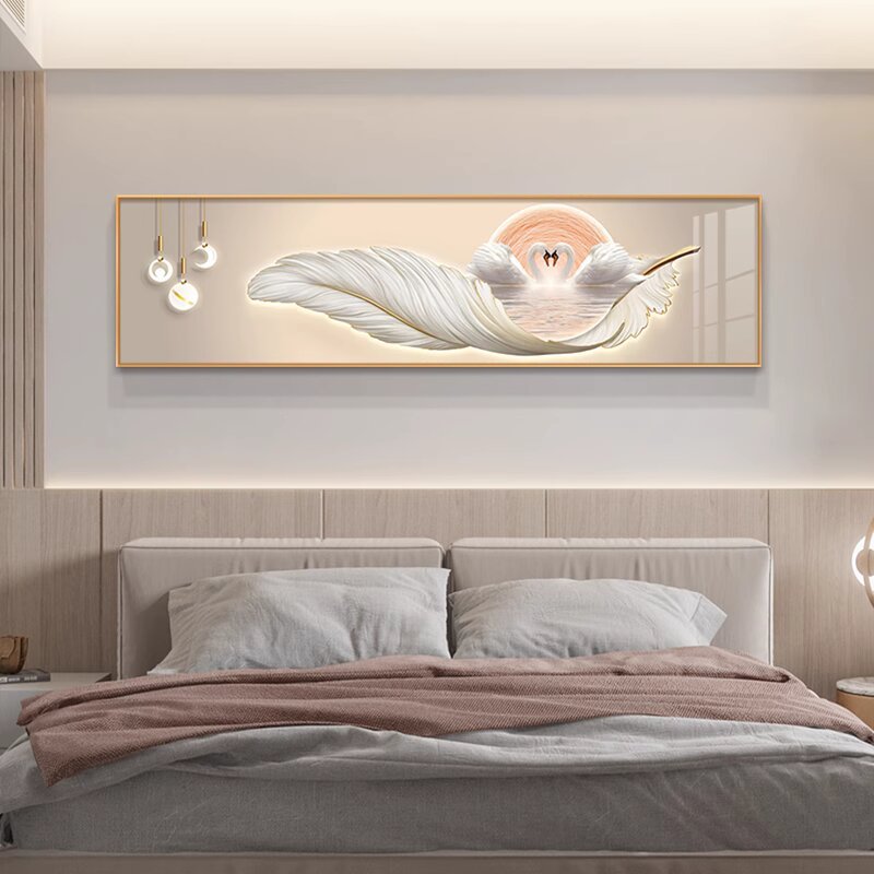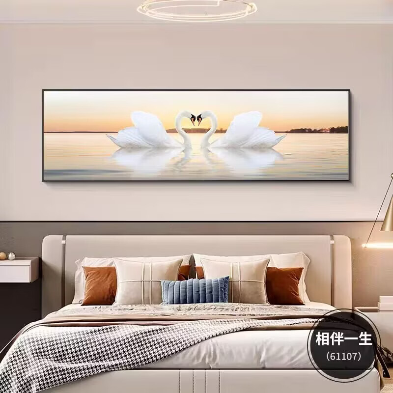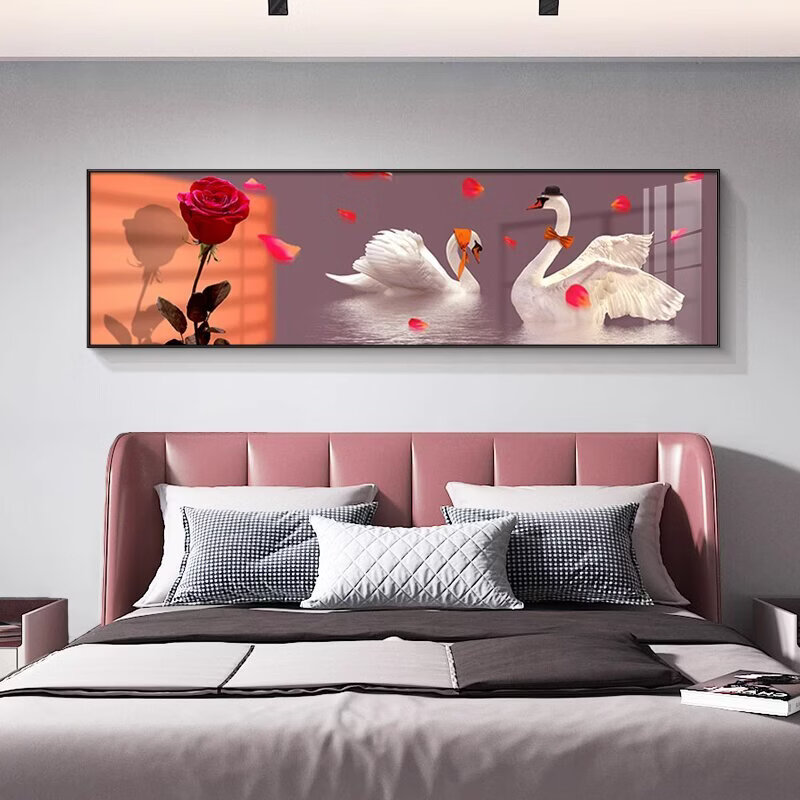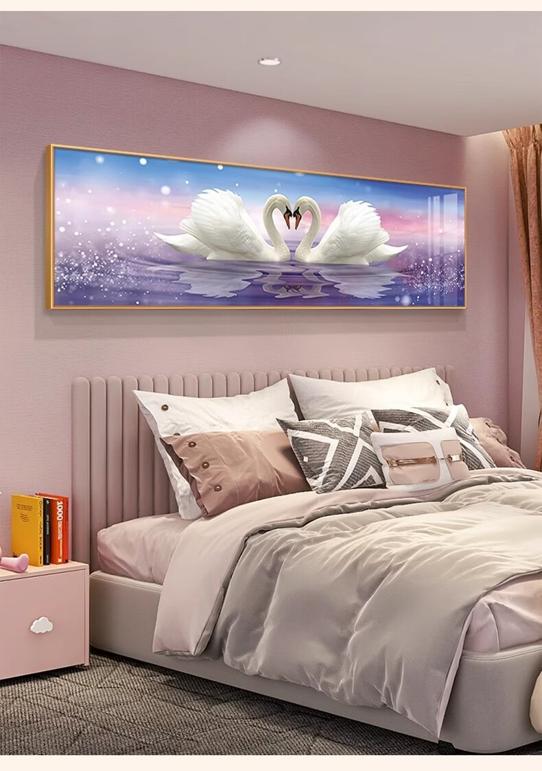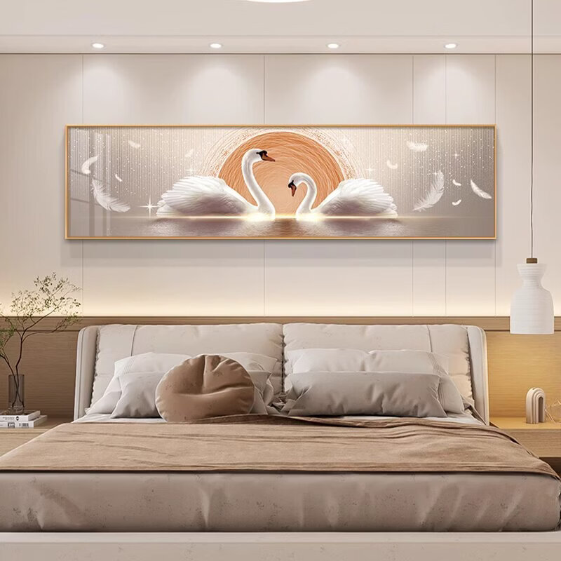 Fantasy Swan Bedroom Bedside Decoration Painting Light Luxurious and High-Level Couple Love Master Bedroom Room Hanging Painting New Warmth Model D Happiness Aluminum alloy frame (free reissue if damaged) 90cm wide