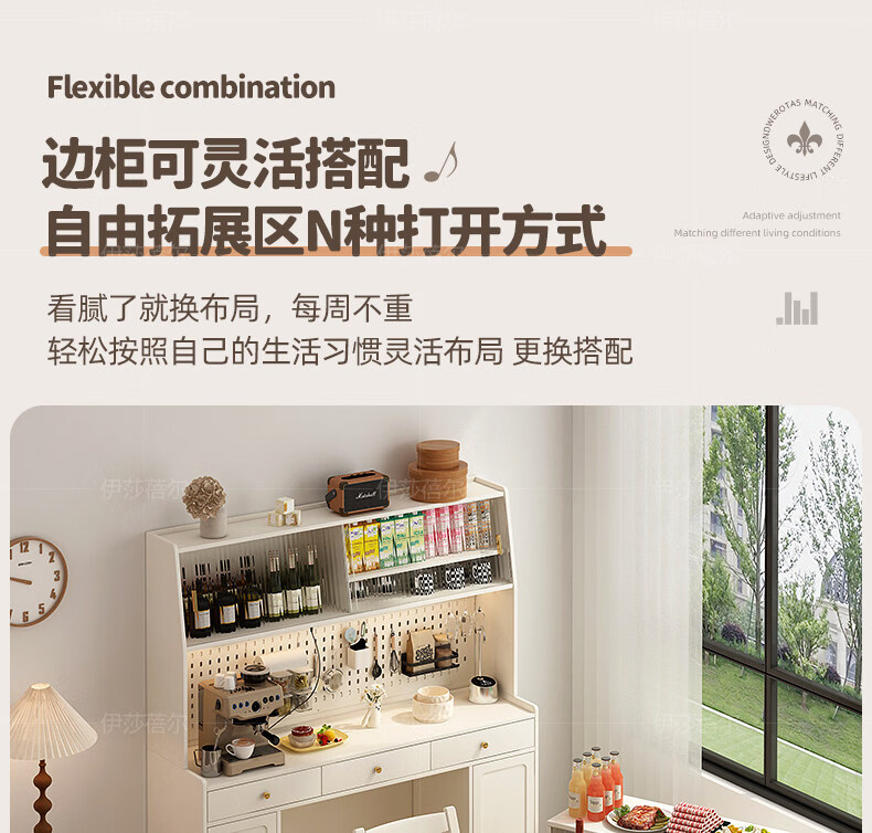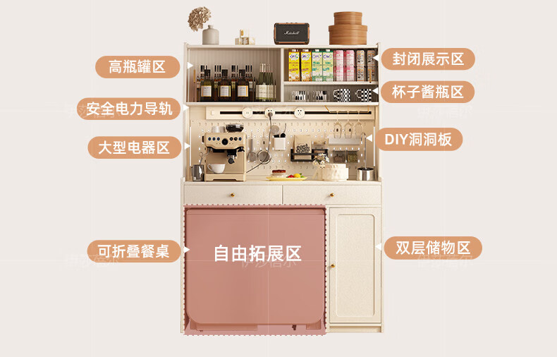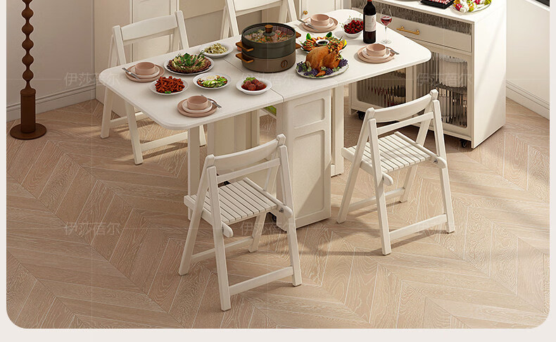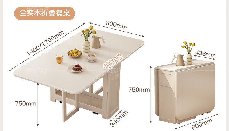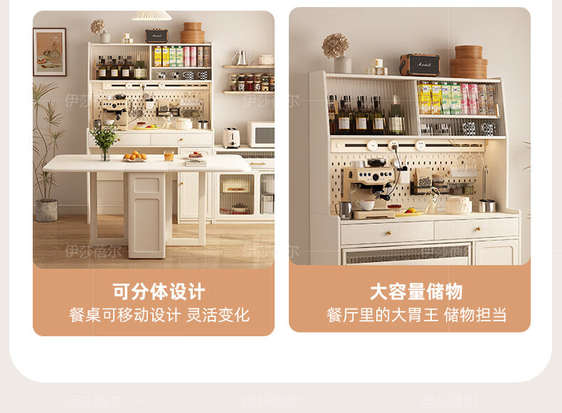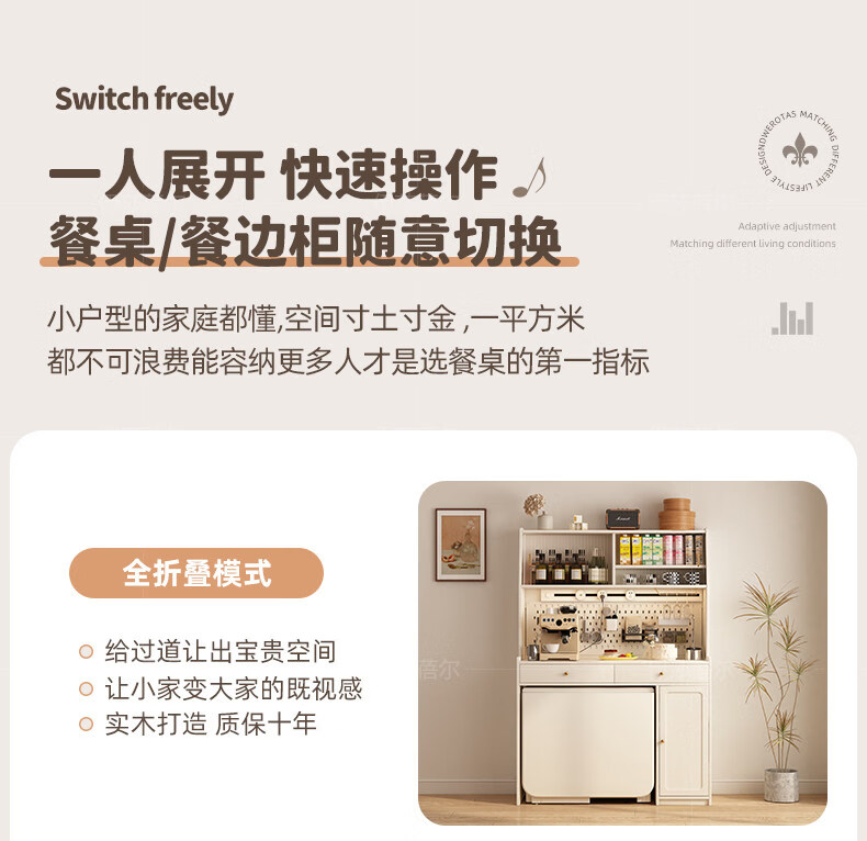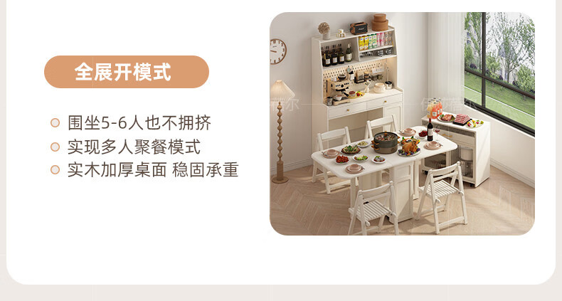 Pupan solid wood slate folding dining table and sideboard integrated household simple small apartment with retractable dining table wall living room cabinet 10.87m solid wood high cabinet + 1.2m solid wood folding