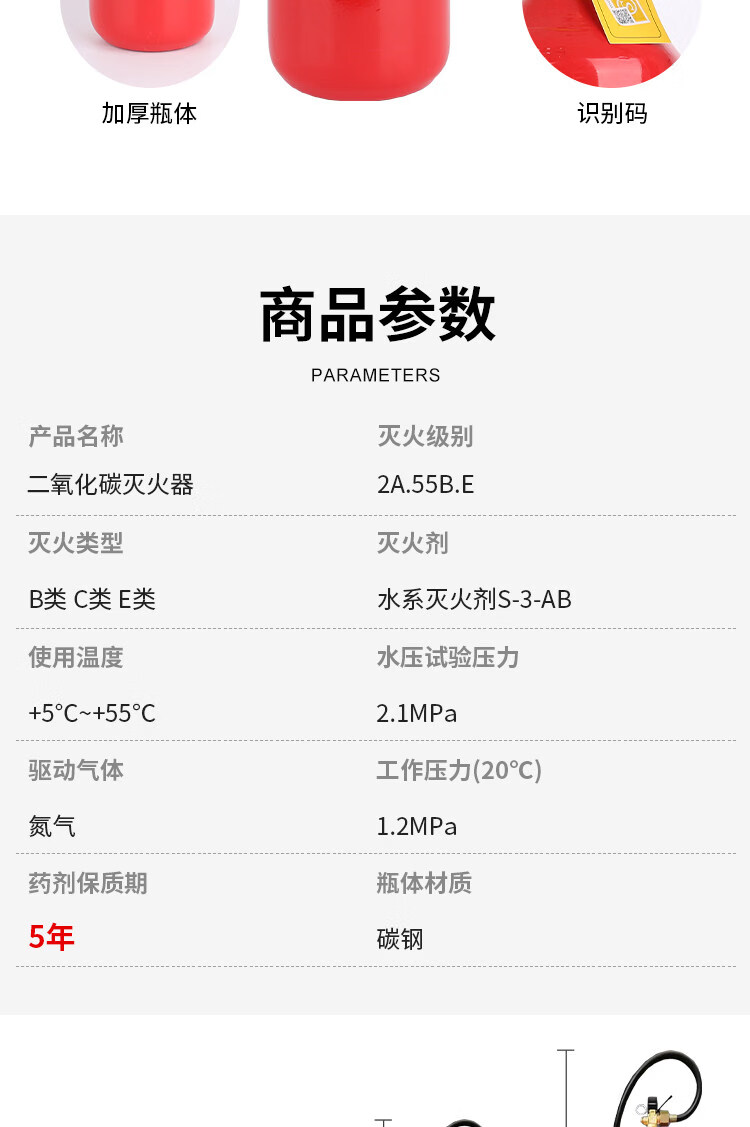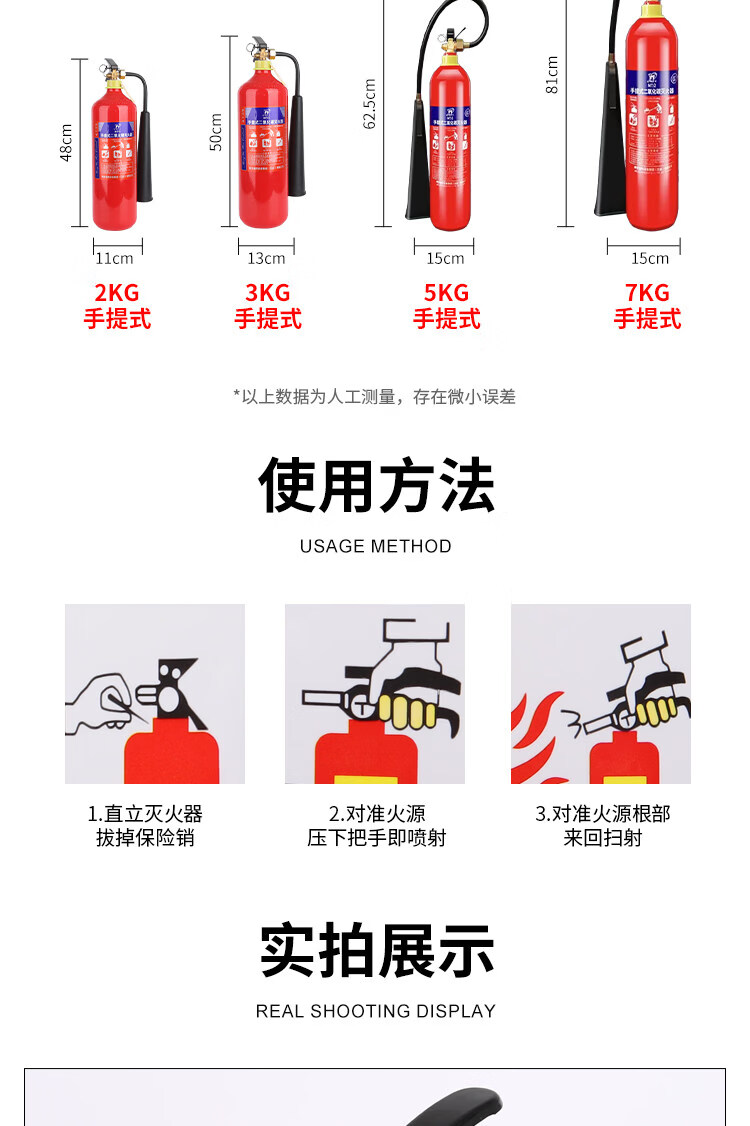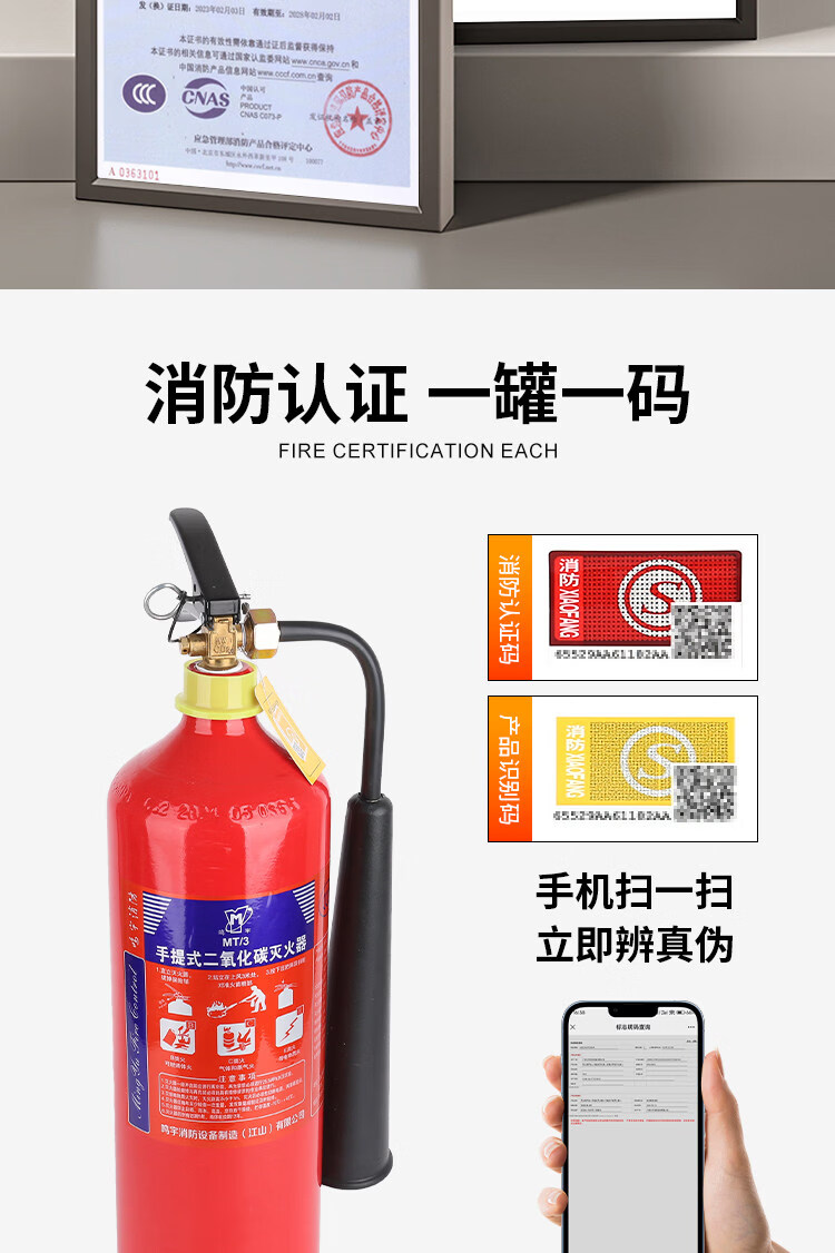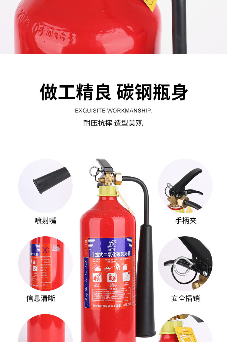 Portable carbon dioxide fire extinguisher factory motor room fire extinguisher dedicated 2/5kg 3kg commercial fire equipment upgrade 24 old standard 3KG carbon dioxide fire extinguisher