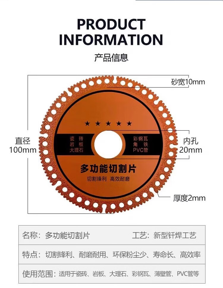 Yusenyi angle grinder multifunctional composite cutting blade glass tile rock plate cast iron steel bar wood saw blade industrial grade special angle grinder multifunctional composite cutting blade no specifications