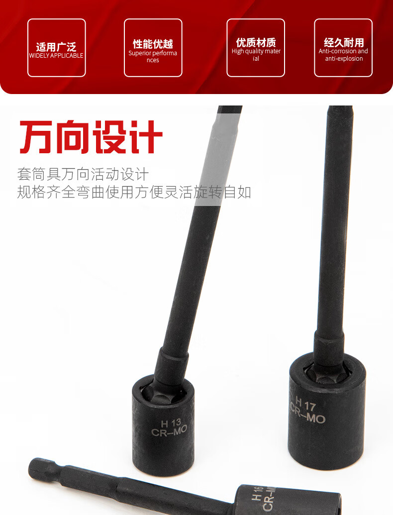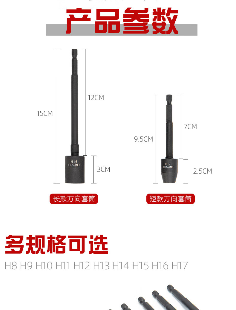 Taslon Universal Wind Batch Socket Extended Adjustable Angle Sleeve Head External Hexagonal Batch Head Extended Sleeve Screw Socket H9 Short Universal Sleeve