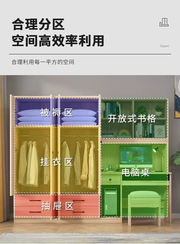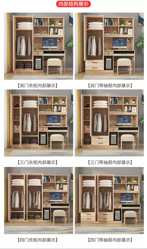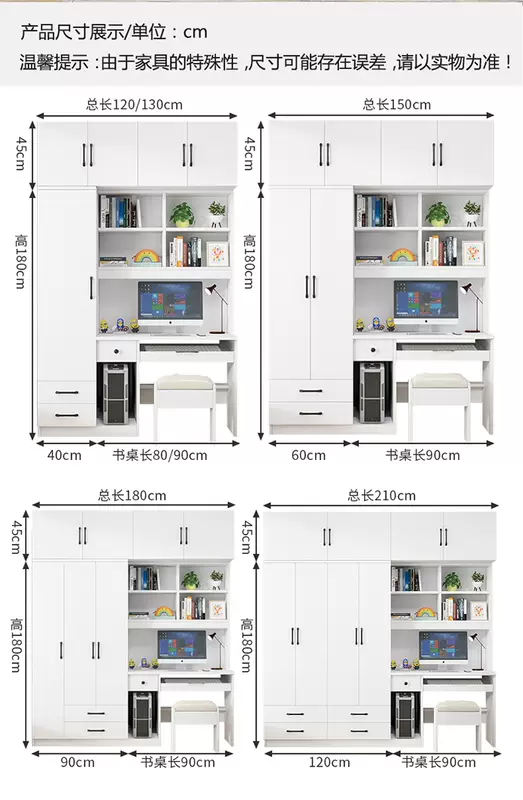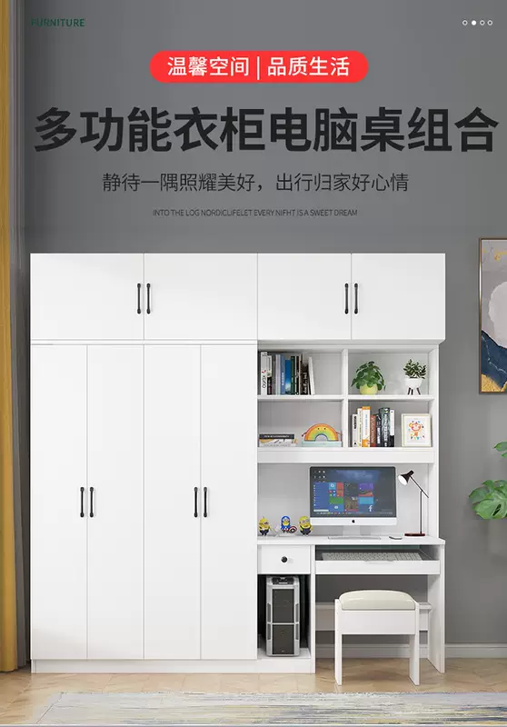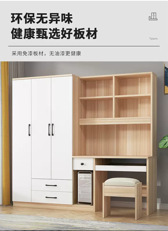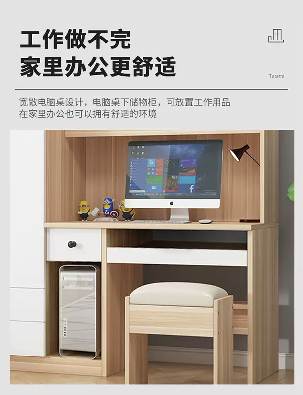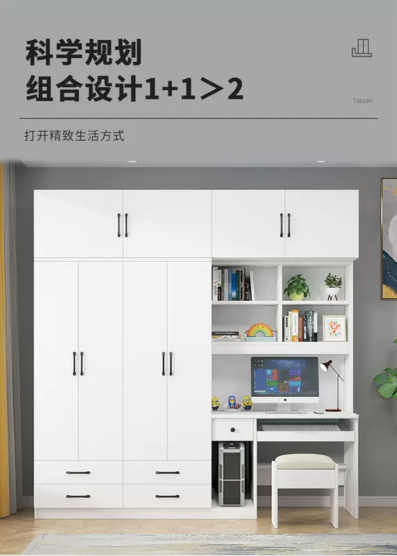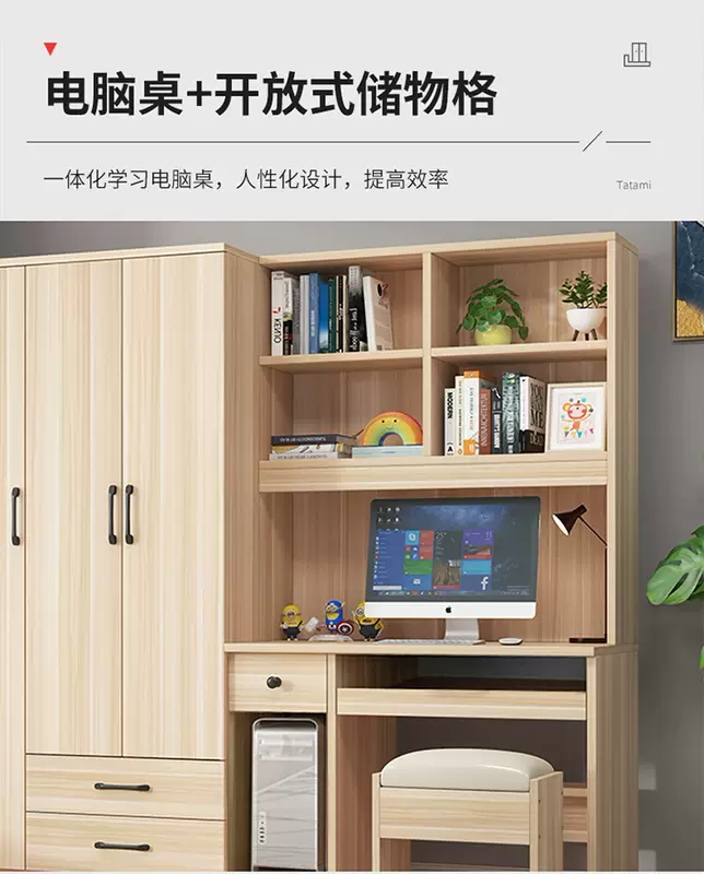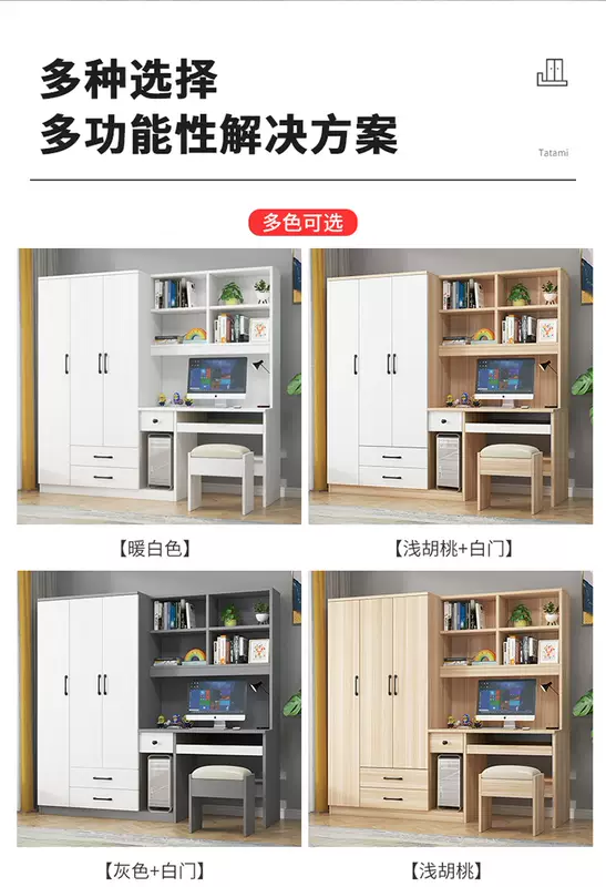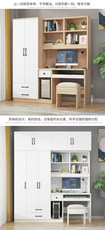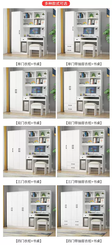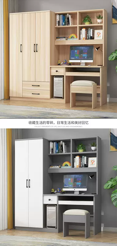 Yusenyi computer desk with student simple cabinet one-piece combined bookshelf wardrobe children's all-in-one bedroom desk desktop desk 1.2 single door-desk comes with stool assembly + 2 doors
