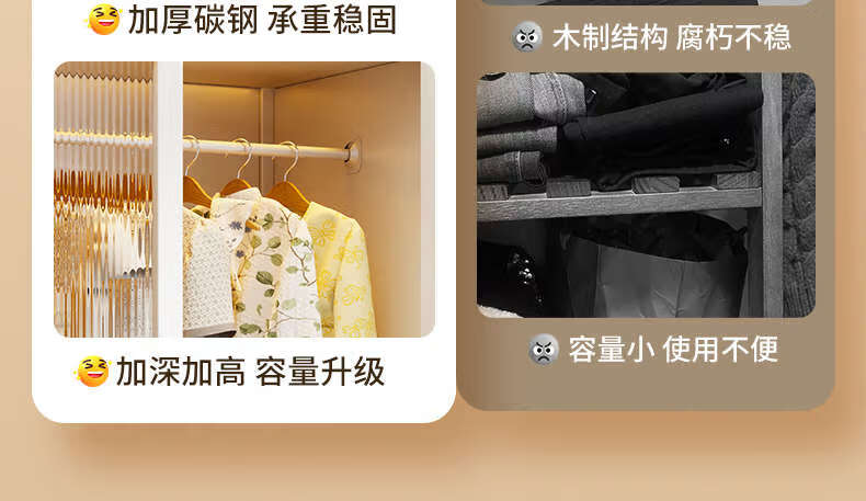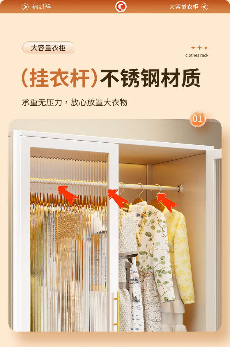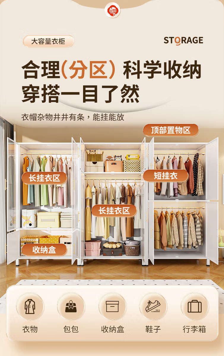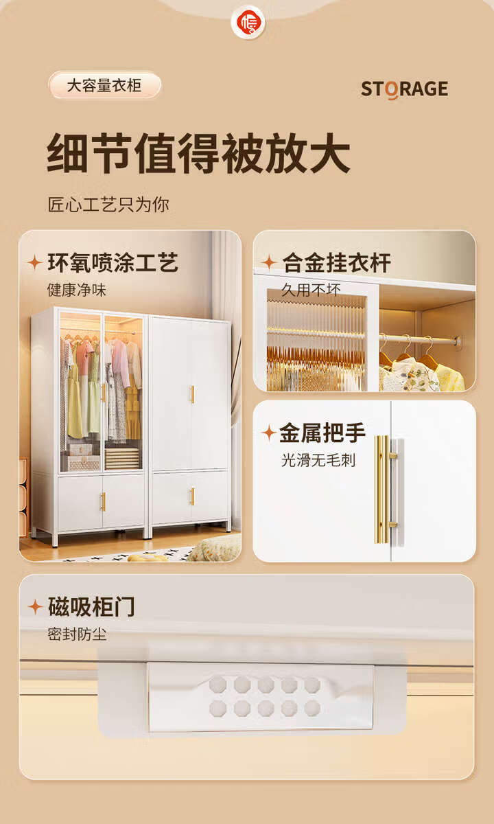 Yusenyi Steel Wardrobe Bedroom Use Simple Assembly Iron Combination Wardrobe Cloakroom Storage Cabinet Thickened Plate 120cm Wide Type A Semi-Transparent Door Double Hanging Clothes Upstairs Package Installation