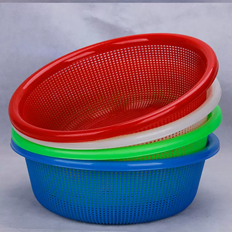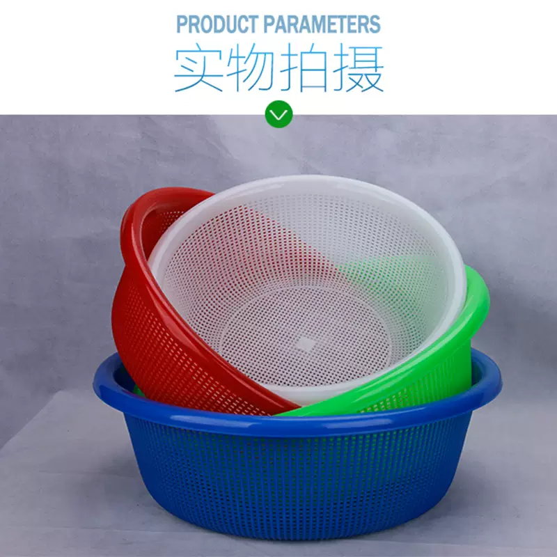 Yusenyi round basket blue drain spicy hot drain basket vegetable basket thickened washing commercial basin sieve plastic snack dense eye white extra thick No. 1