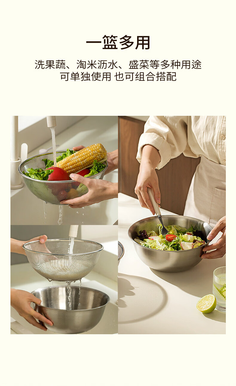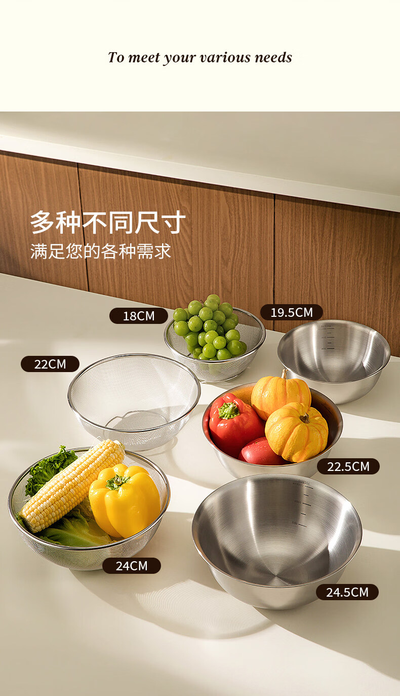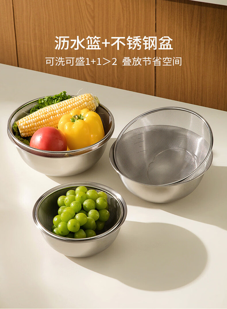 MEOD Germany imported quality drain basket 304 stainless steel sink drain basket household kitchen rice washing artifact set more discount 304 stainless steel drain basket (18cm) + 6