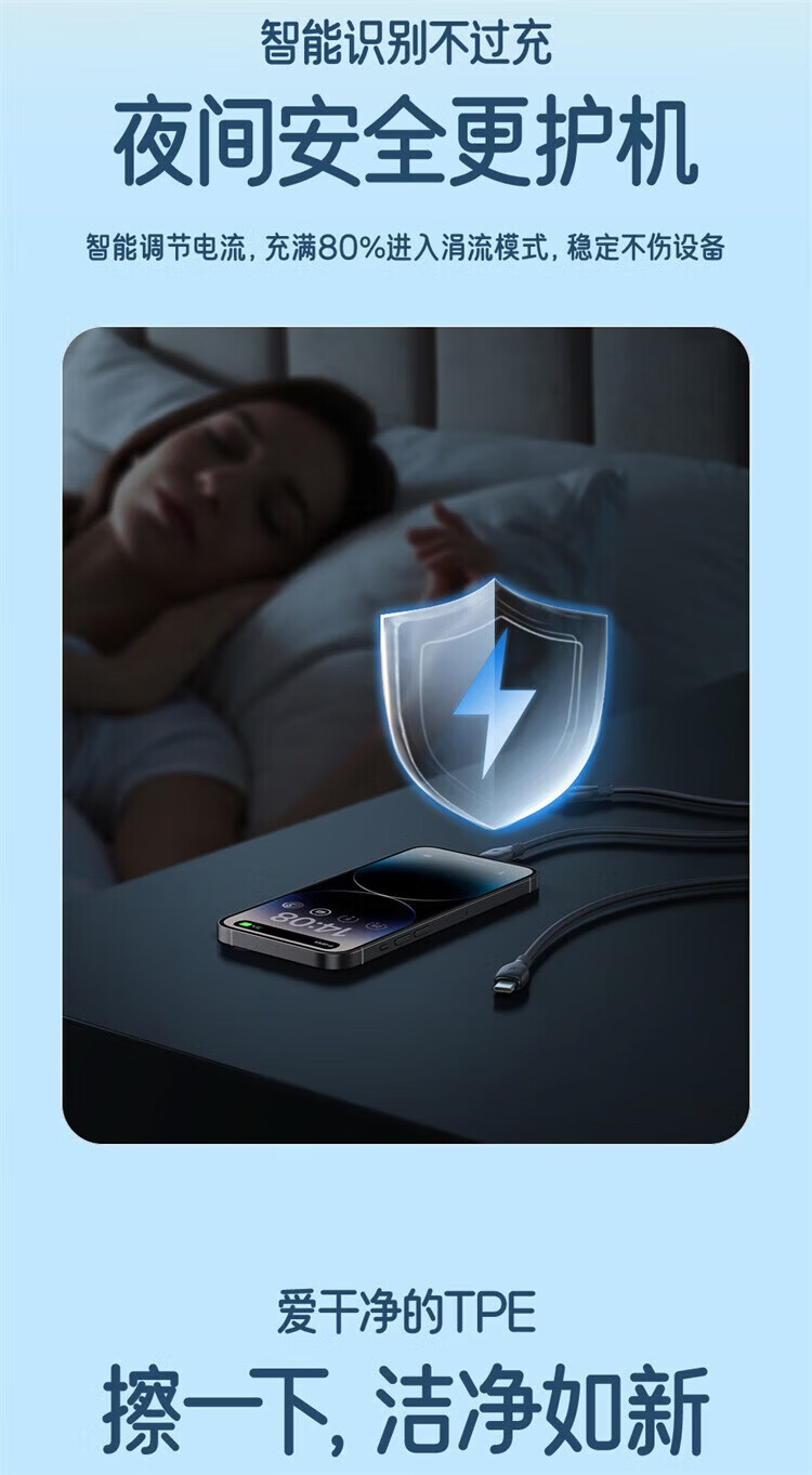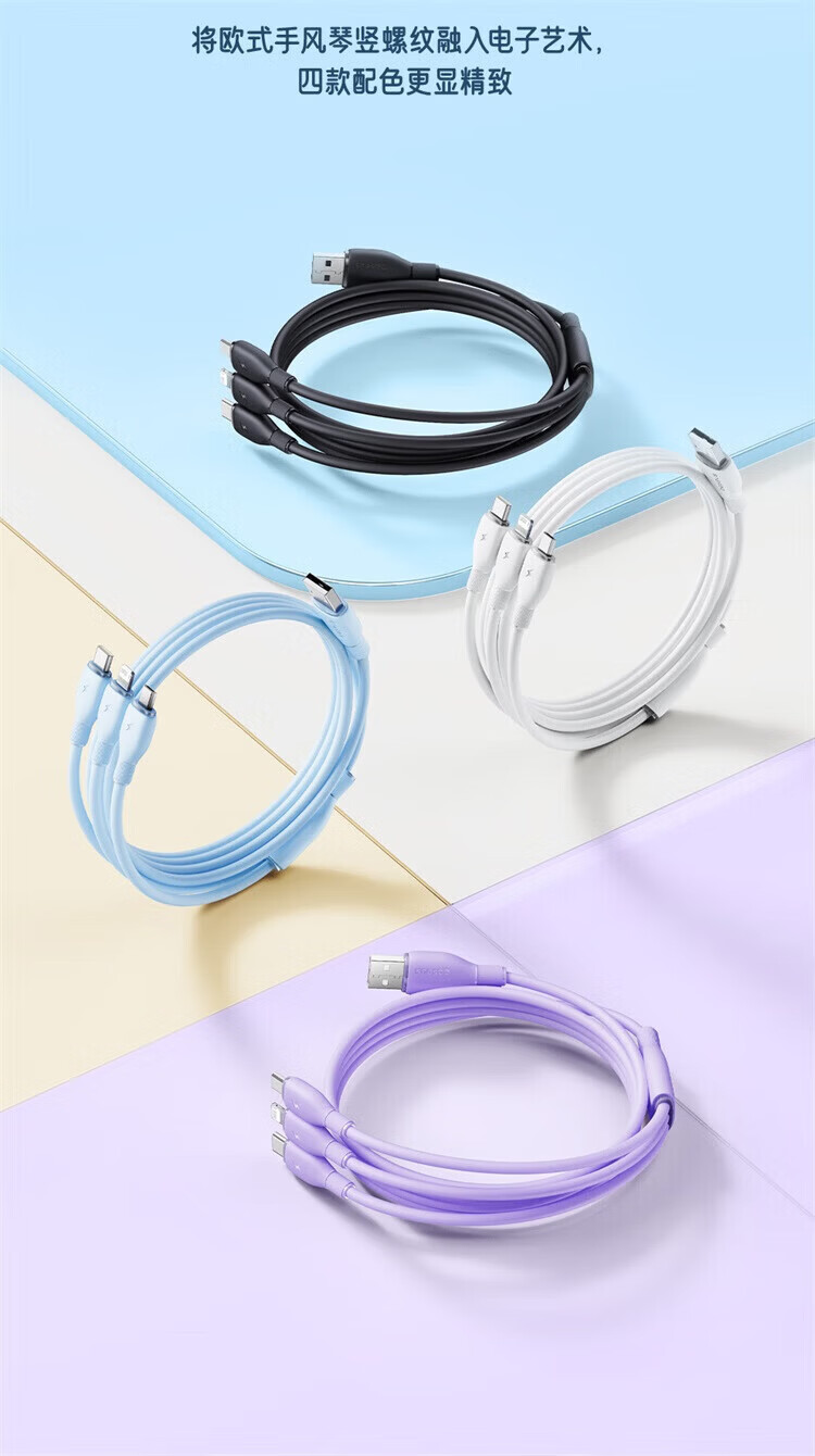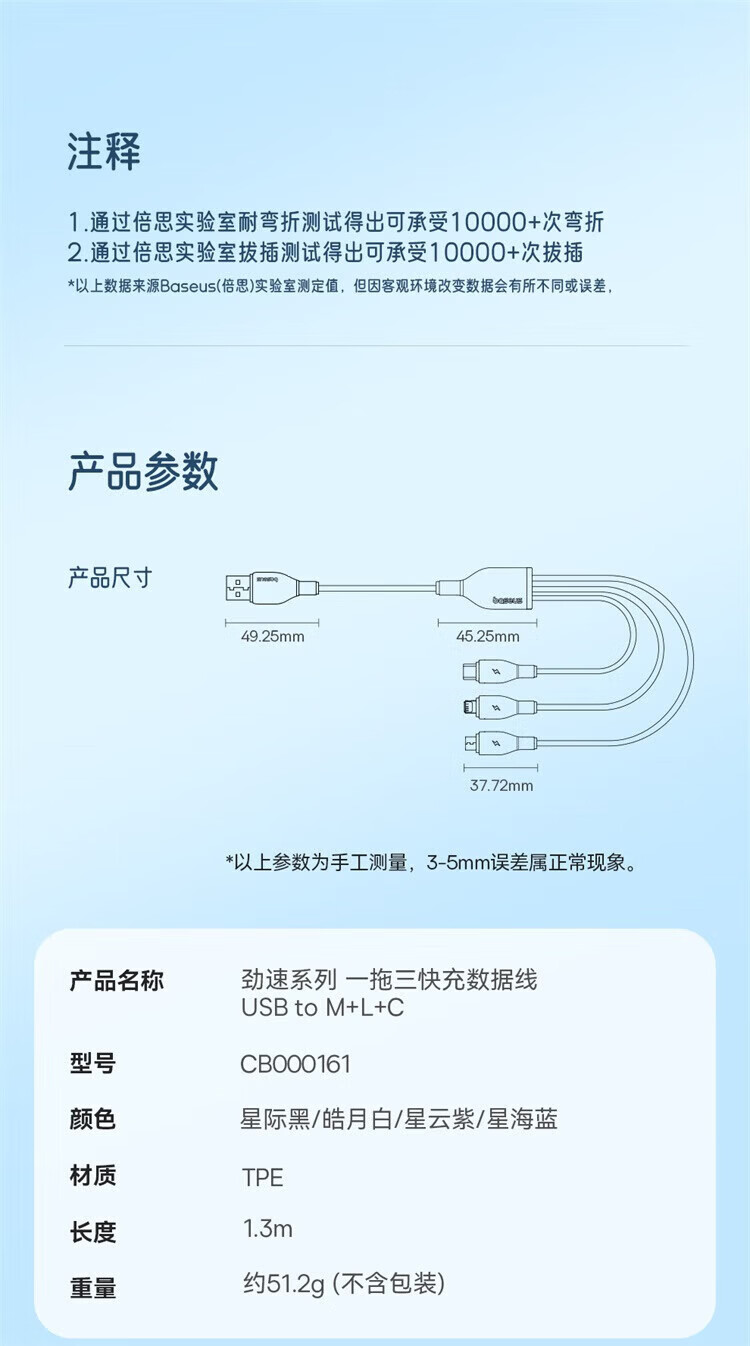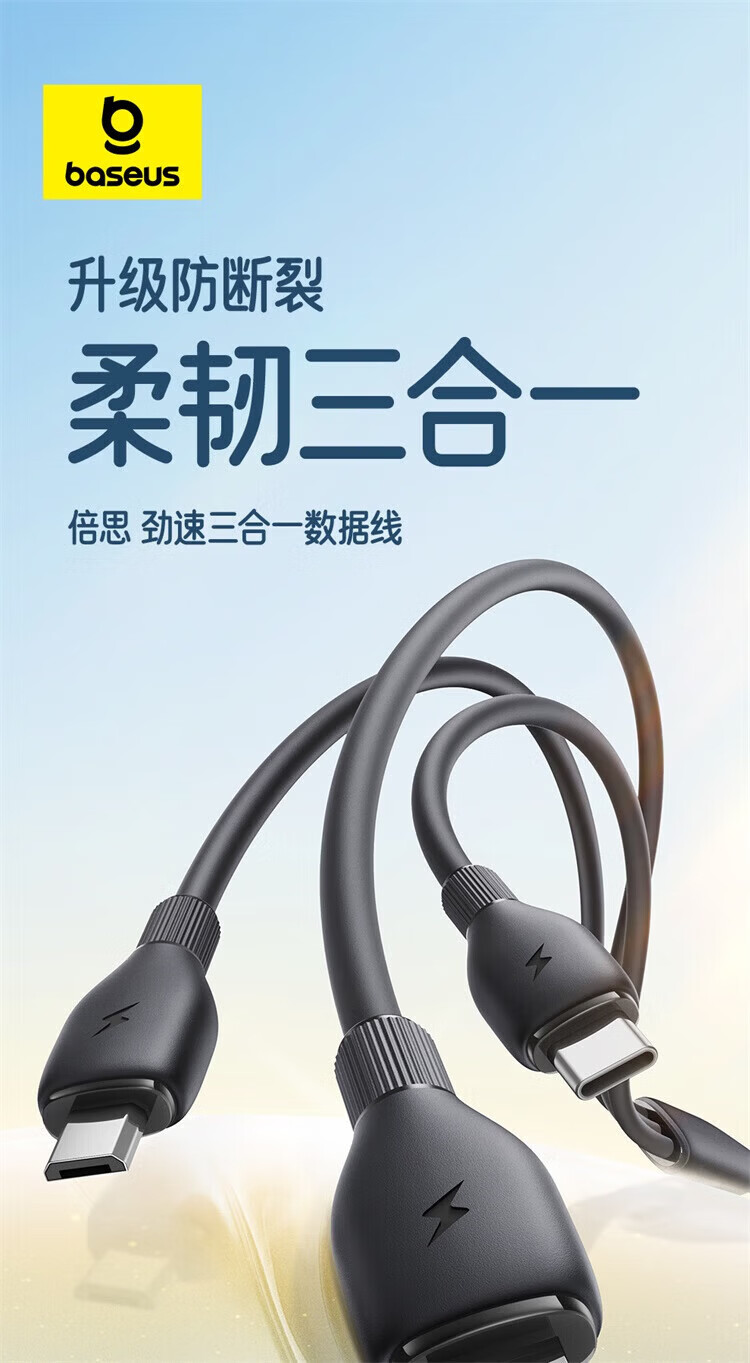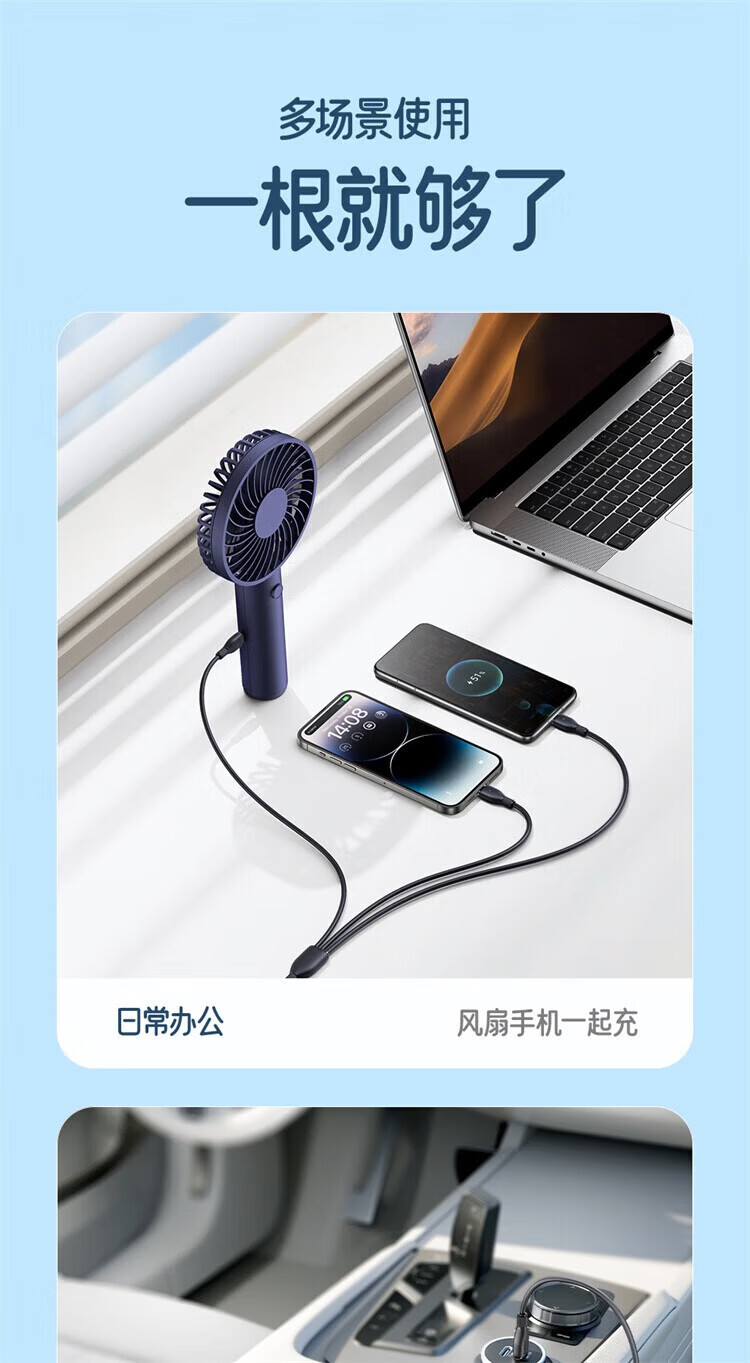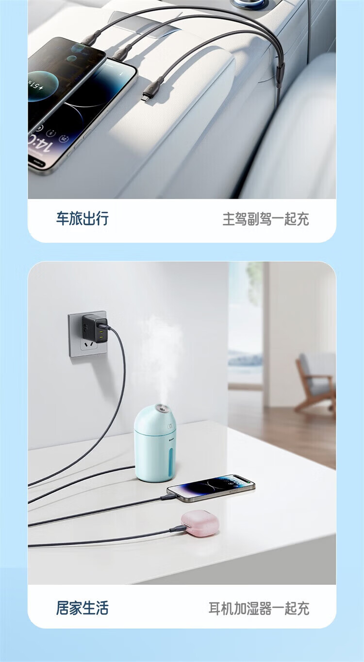 BASEUS three-in-one data cable car one-to-three charging cable suitable for Apple 16 Huawei Android Ty fast charging set Xinghai Blue 1.3m single port fast charging