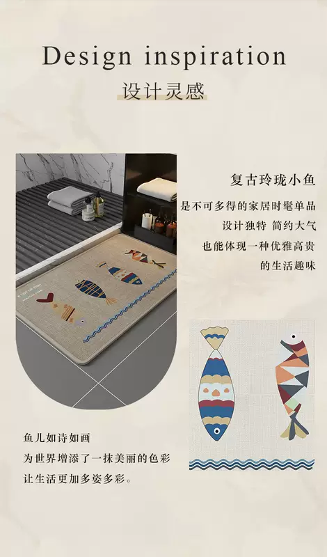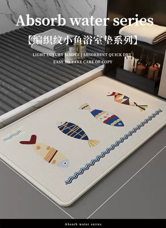 Yusenyi high-end bathroom floor mats, toilet door mats, water-absorbent, stain-resistant, non-slip living room linen woven style woven oatmeal shallow meeting 40x60CM (super absorbent丨first choice for quality)