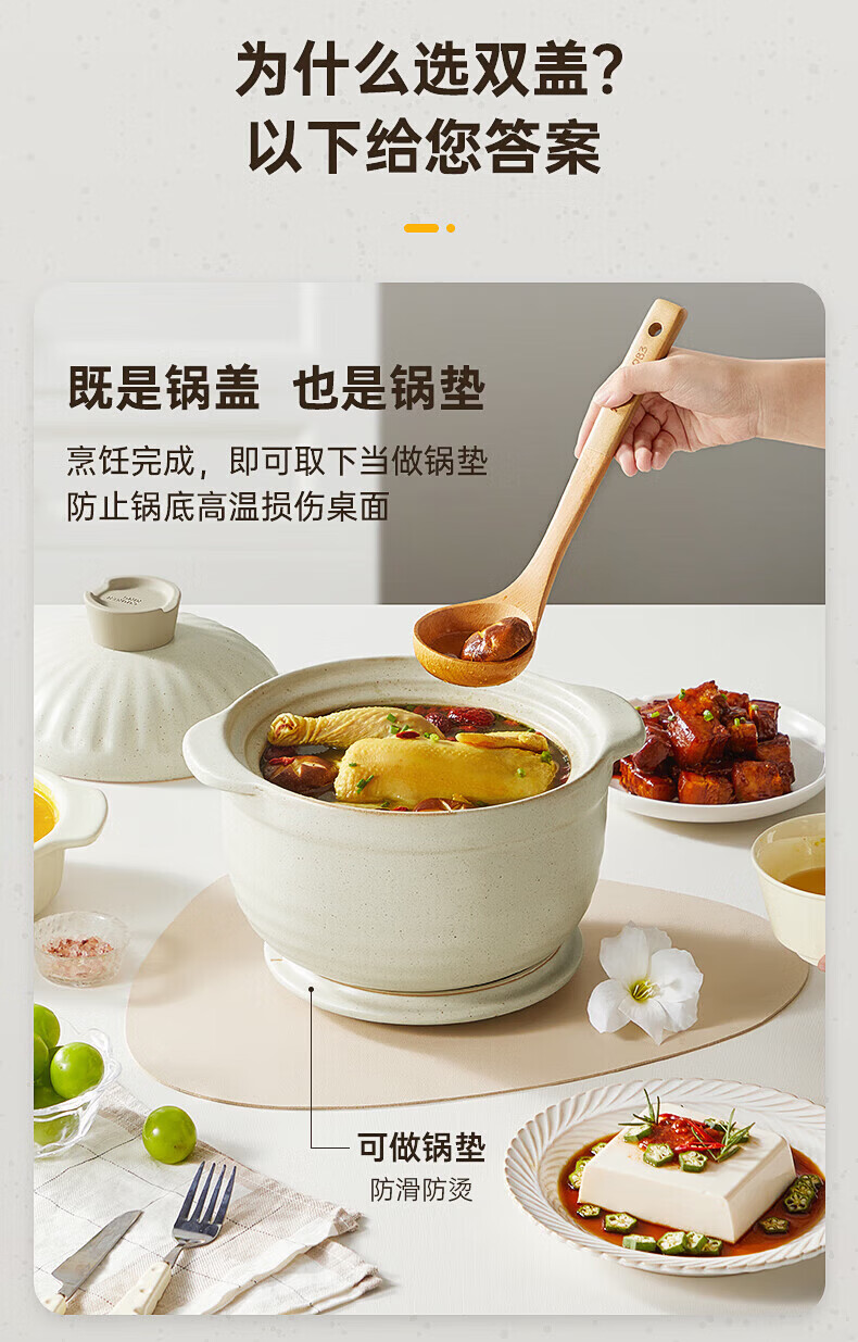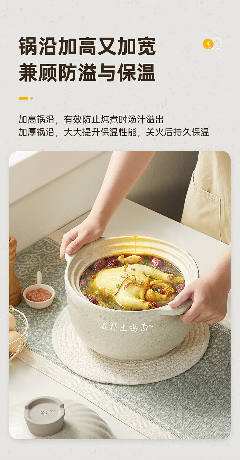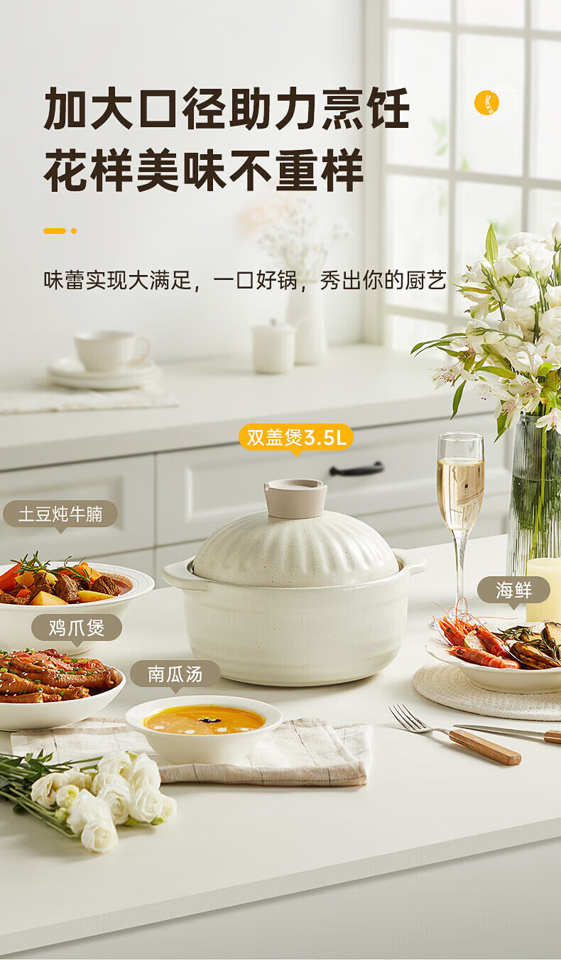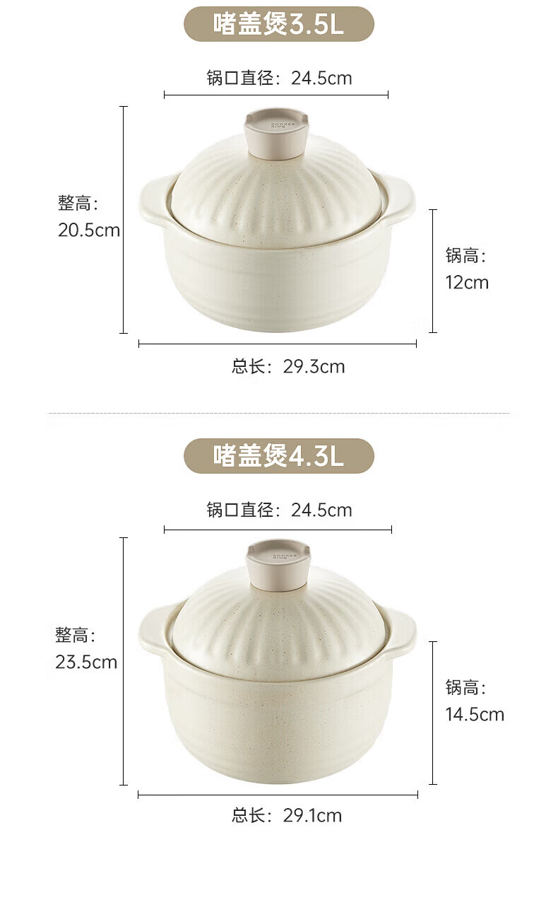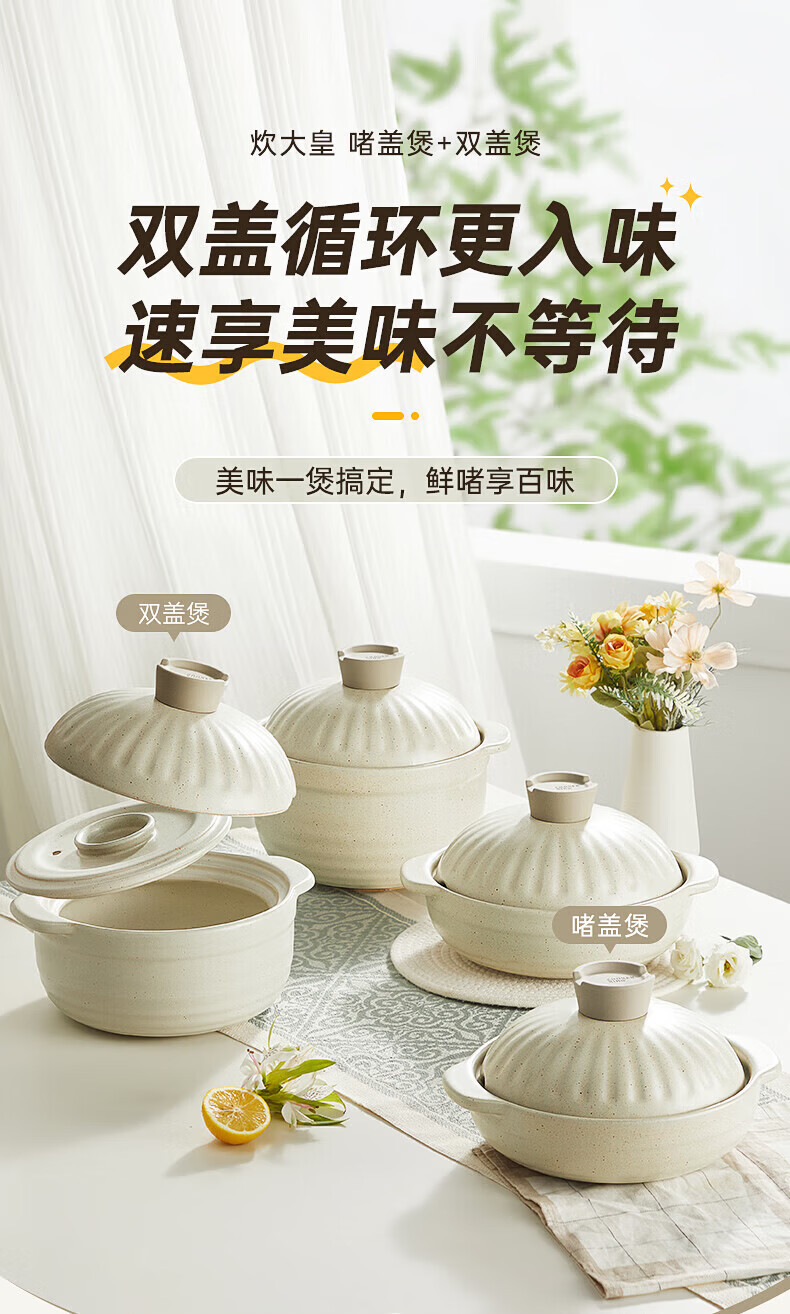 Cui Dahuang casserole ceramic pot large capacity stew soup pot open flame heat-resistant household clay pot rice pot Chinese medicine health double lid pot 3.5L