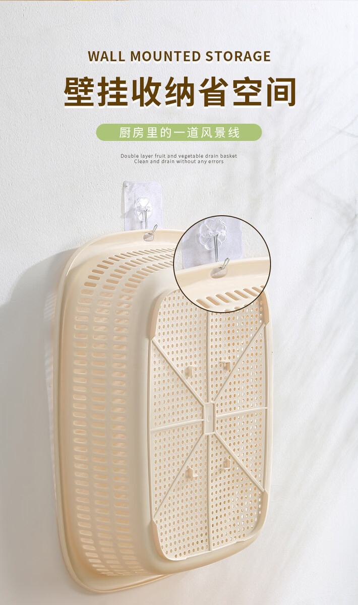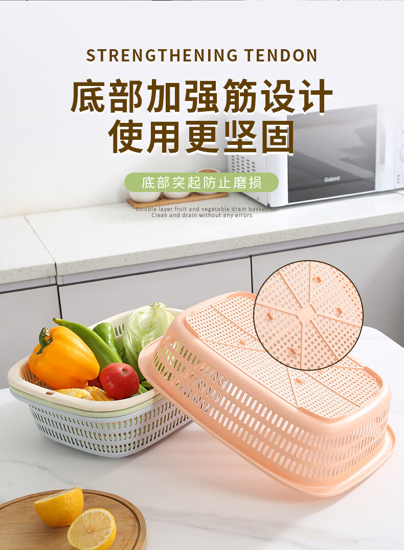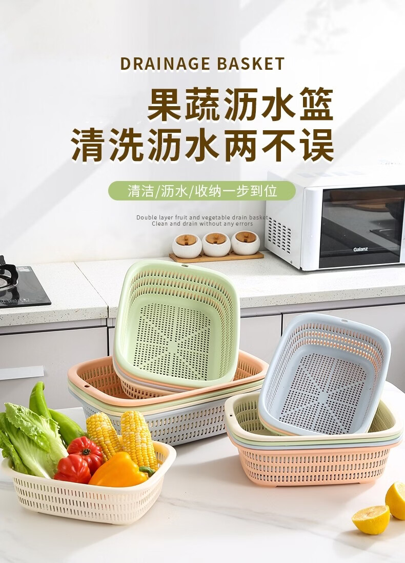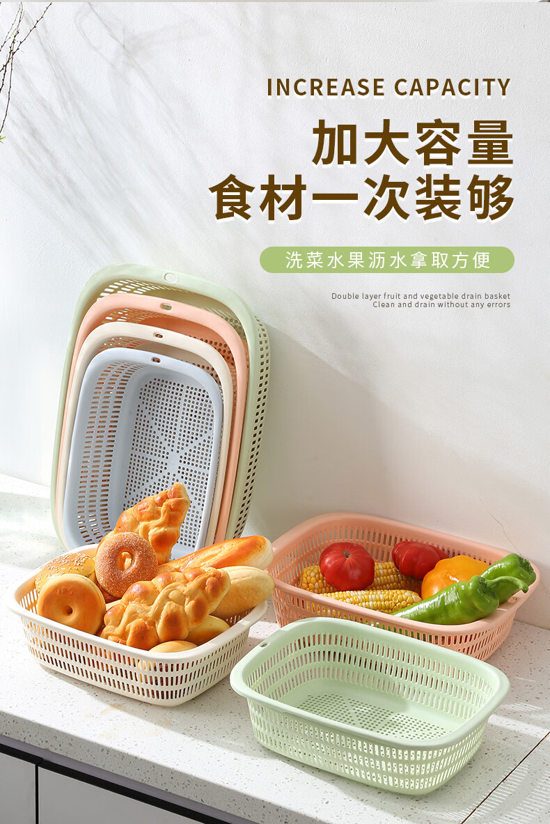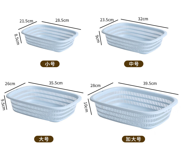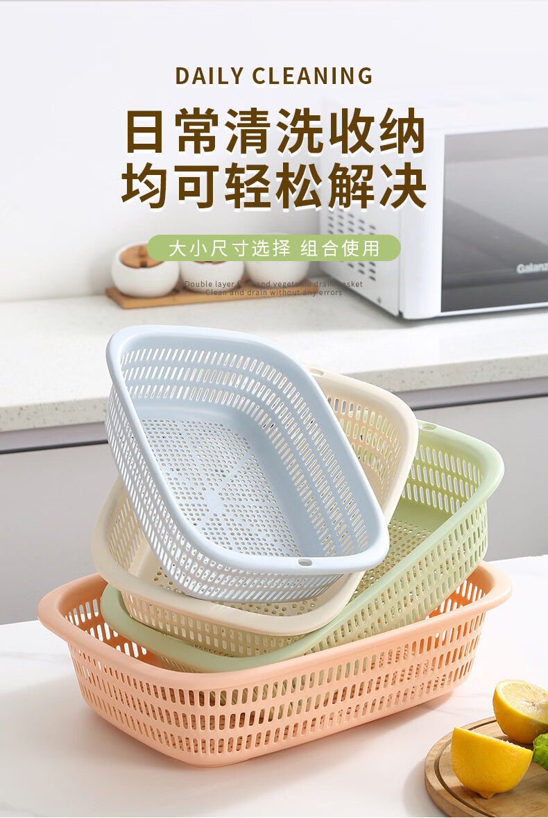 Pupan rectangular hollow plastic basket commercial thickened high temperature resistant fruit draining basket household large capacity vegetable basket blue small size