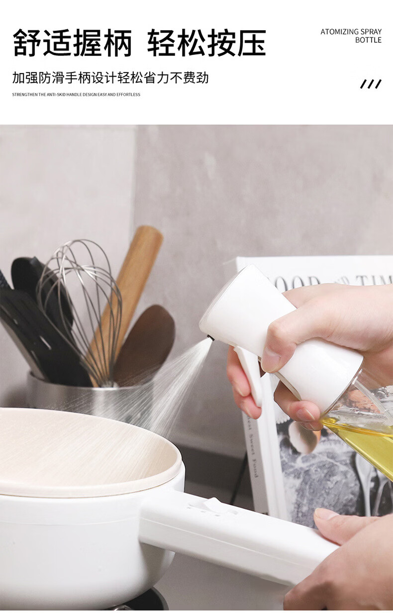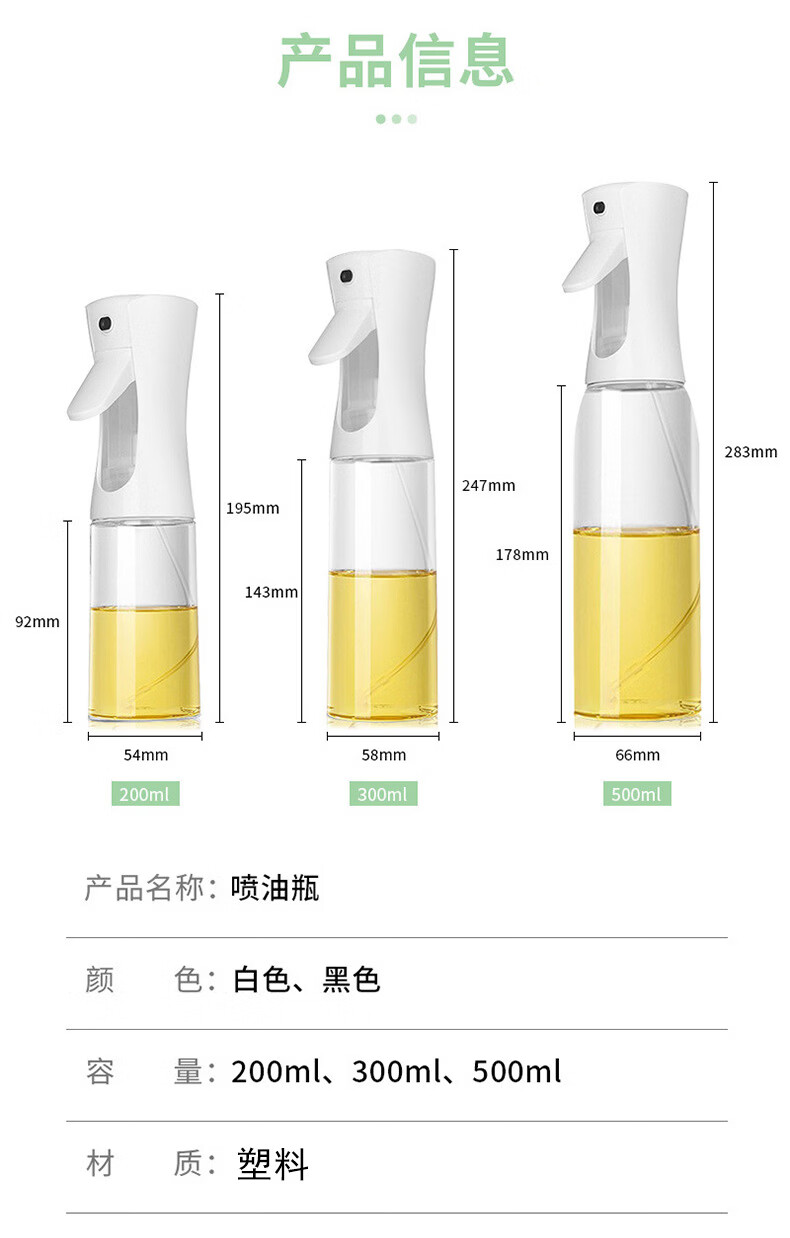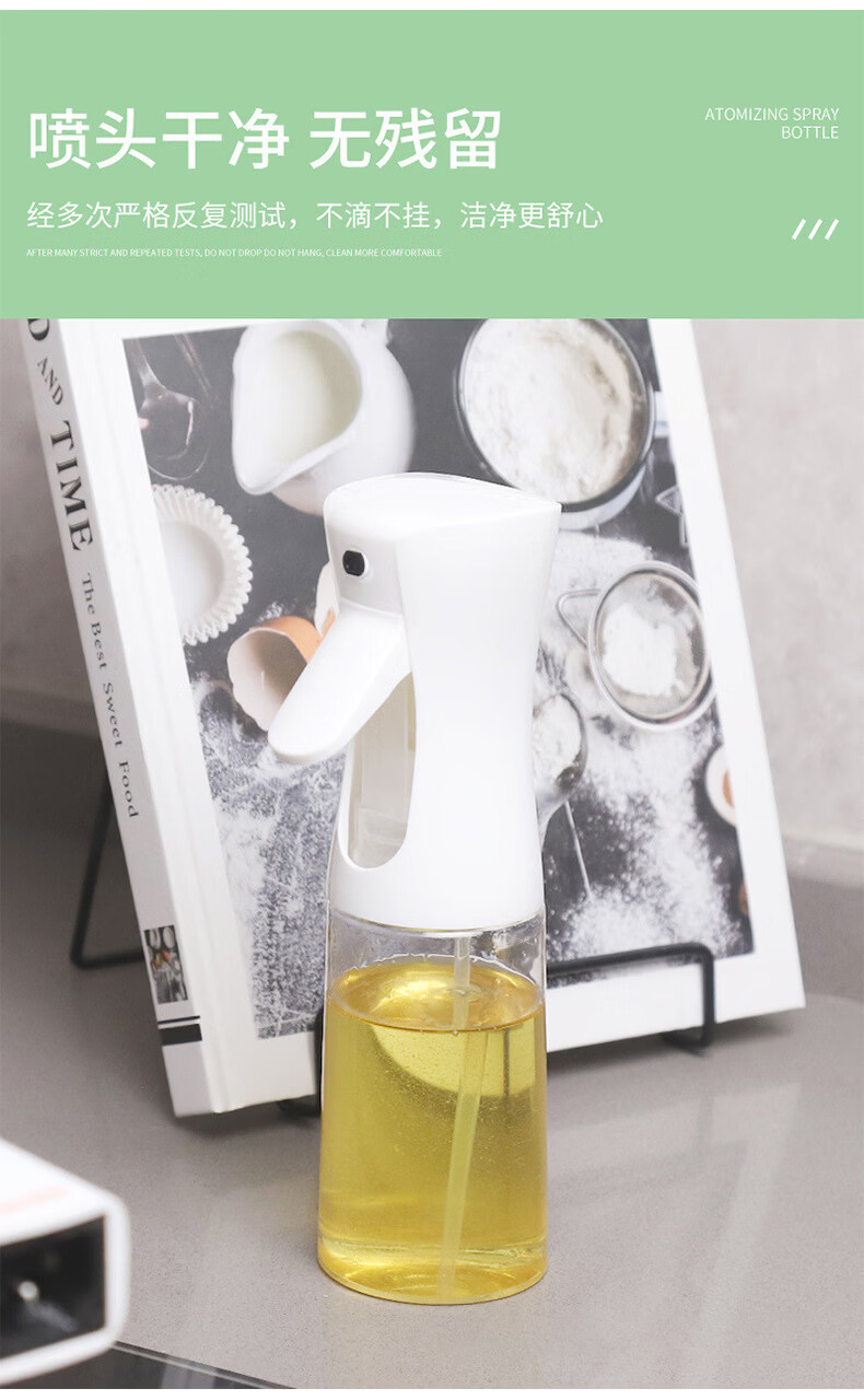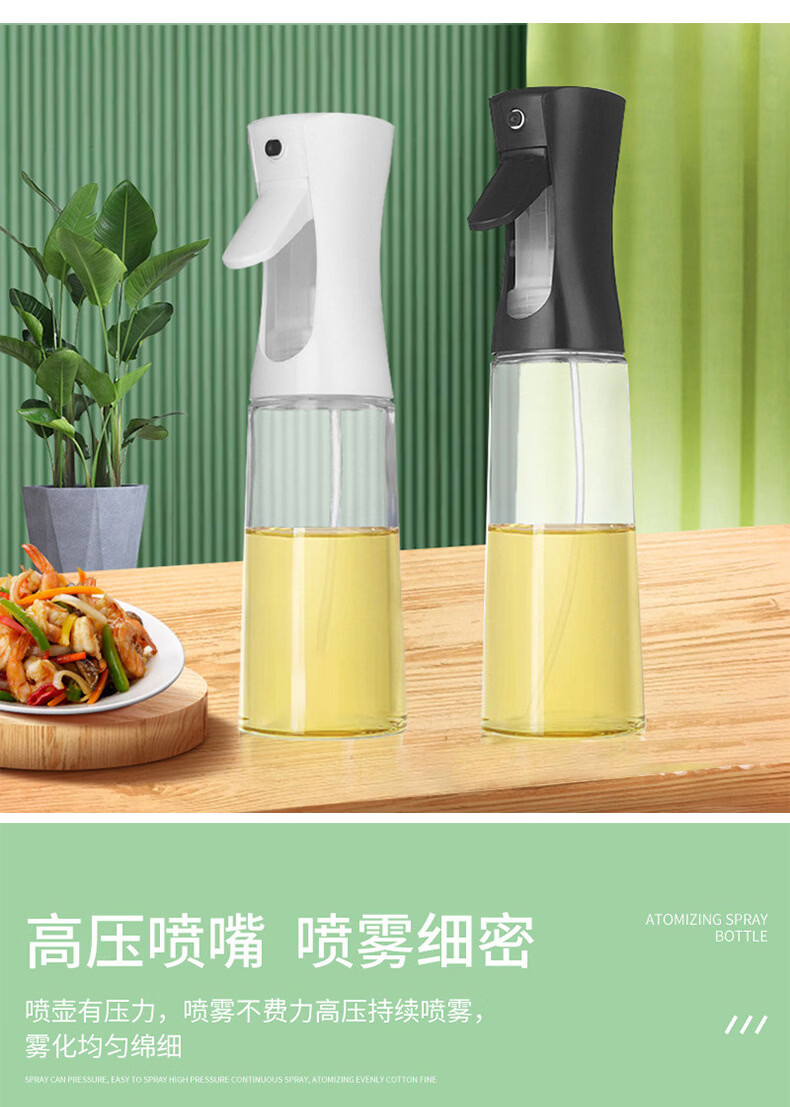 Shantou Lincun oil spray bottle 500ml kitchen spray bottle spray bottle glass bottle press does not hang oil transparent oil spray bottle 300ml black plastic model