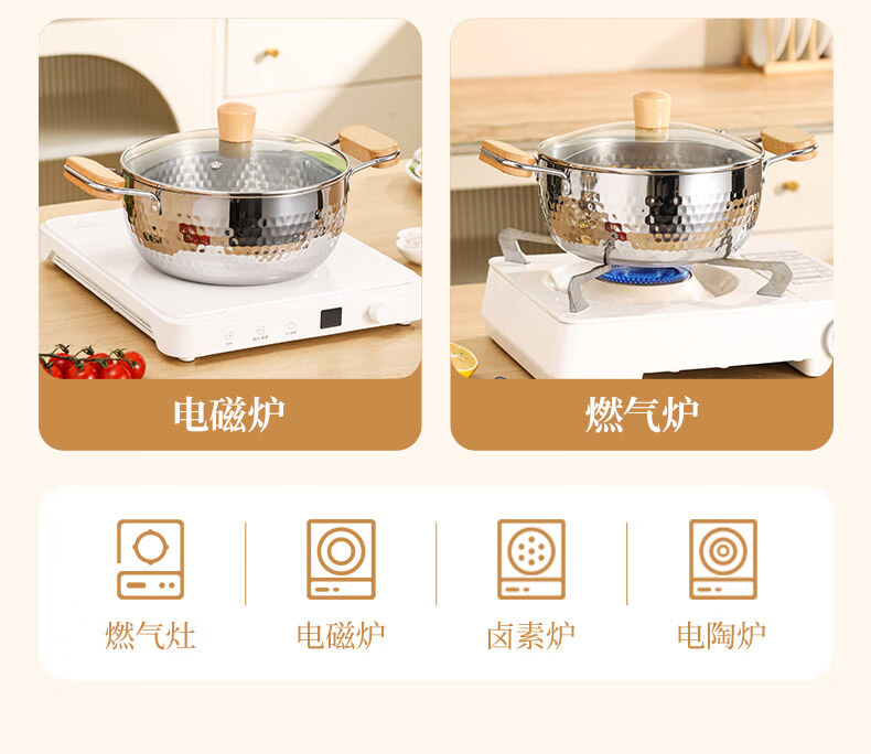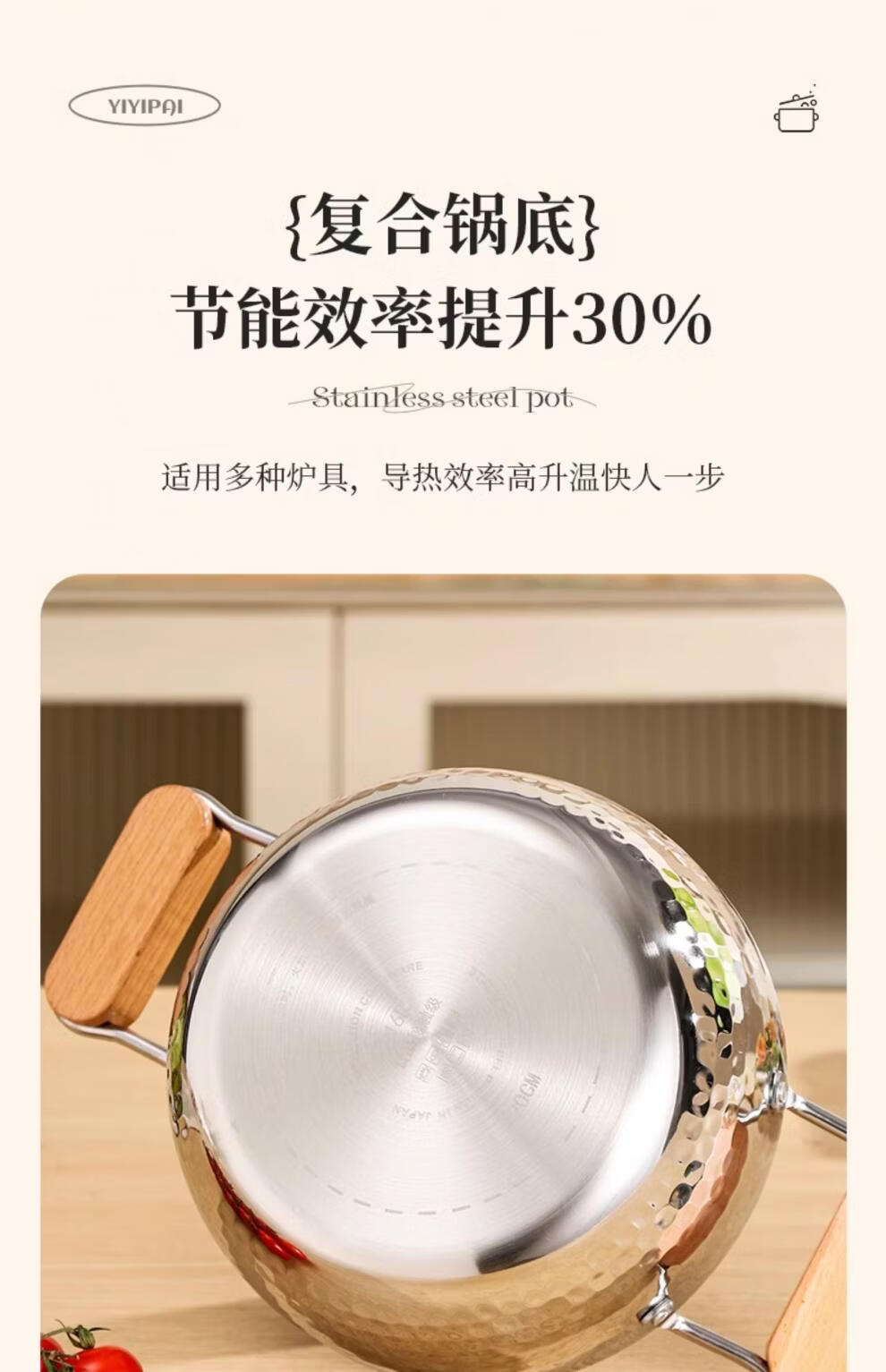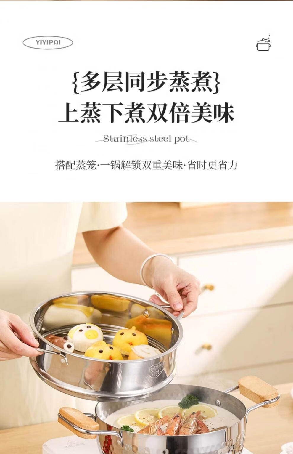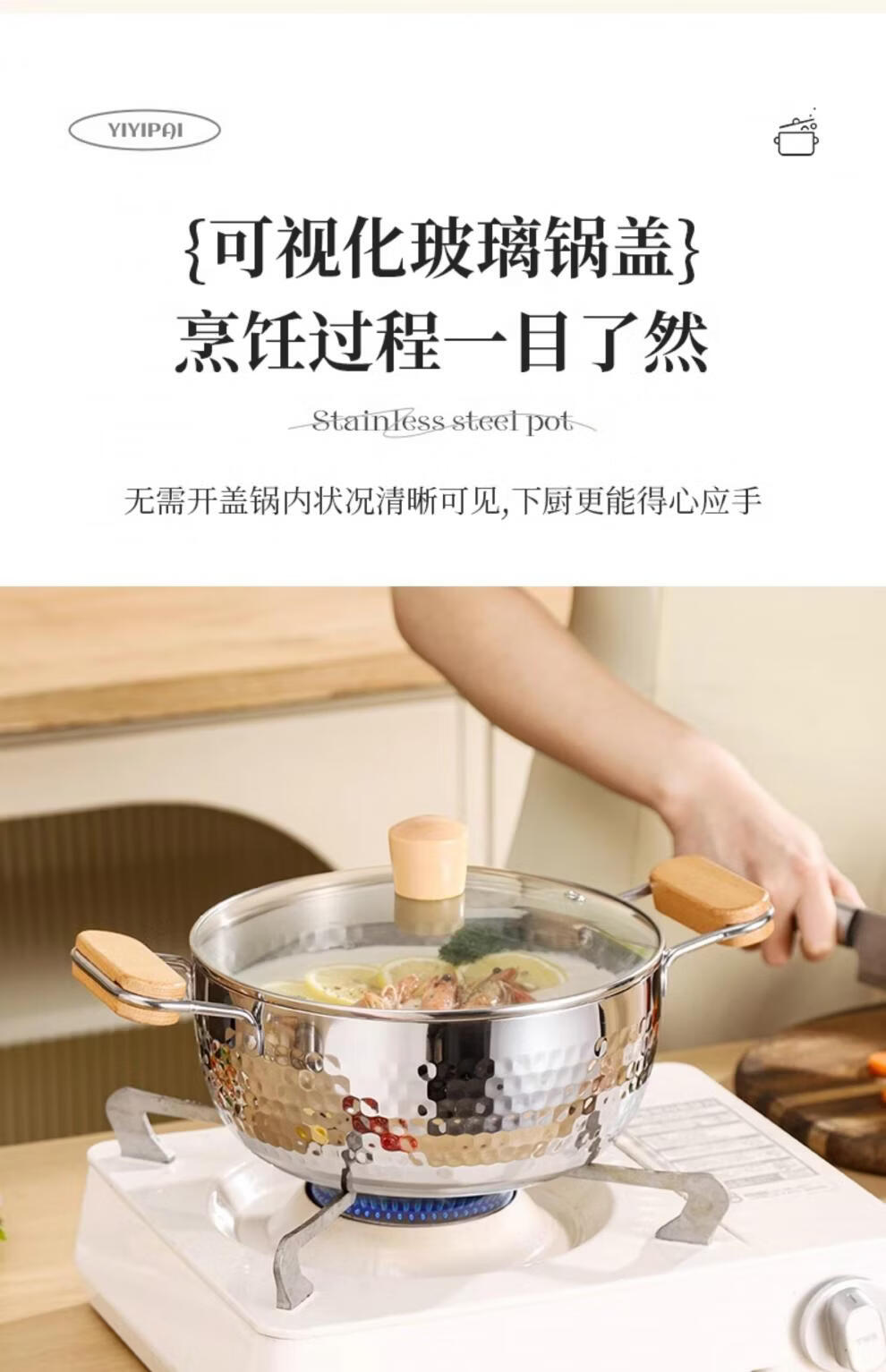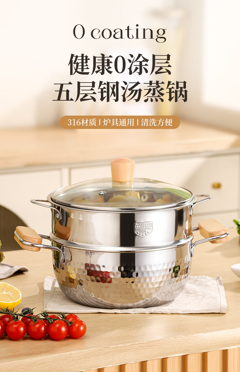 Tuojin 316 stainless steel Xueping soup pot thickened small steamer household cooking pot binaural stew pot gas induction cooker special 316 stainless steel + stainless steel detection liquid 22cm