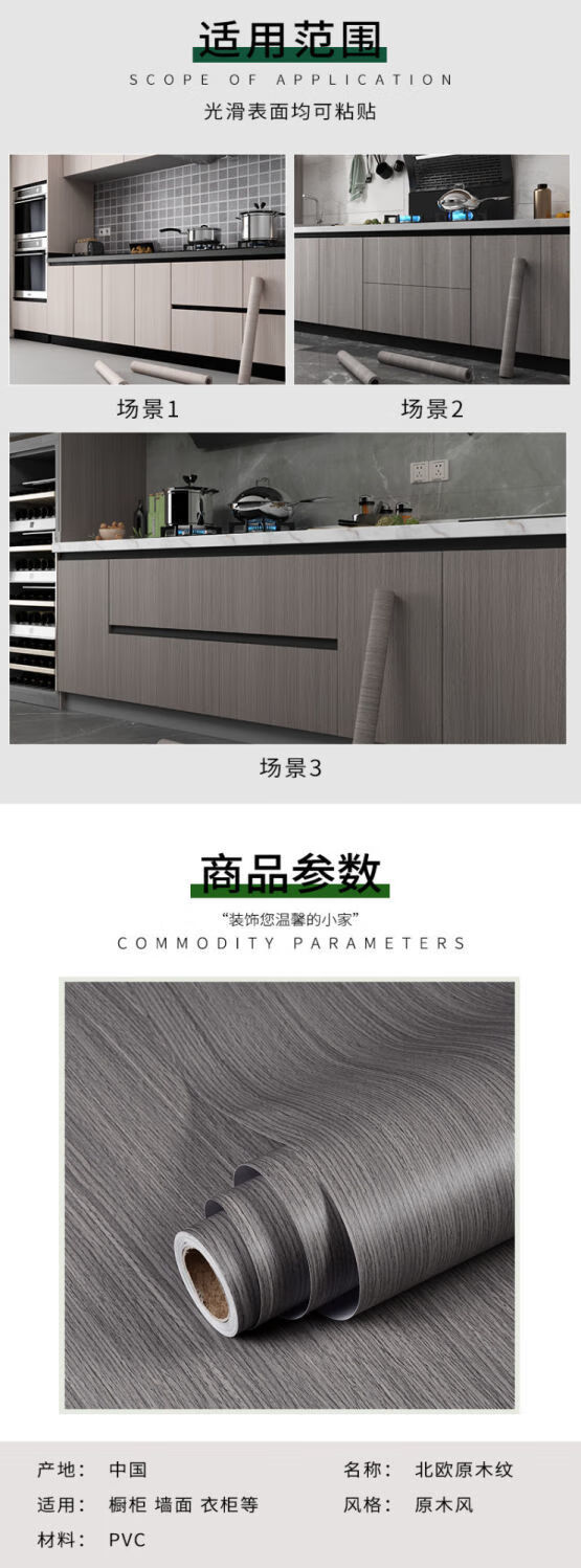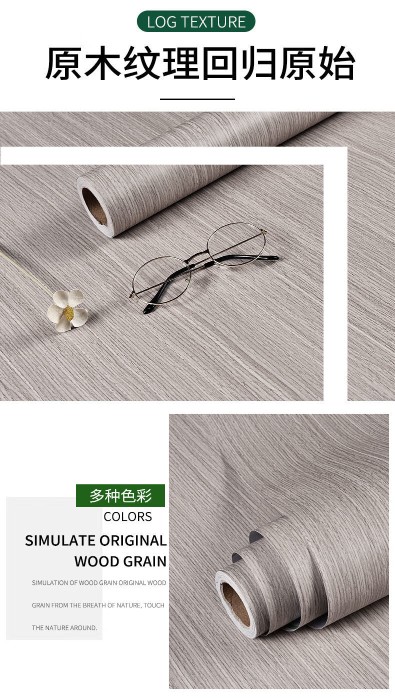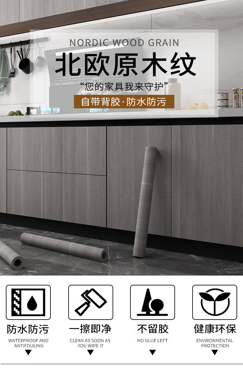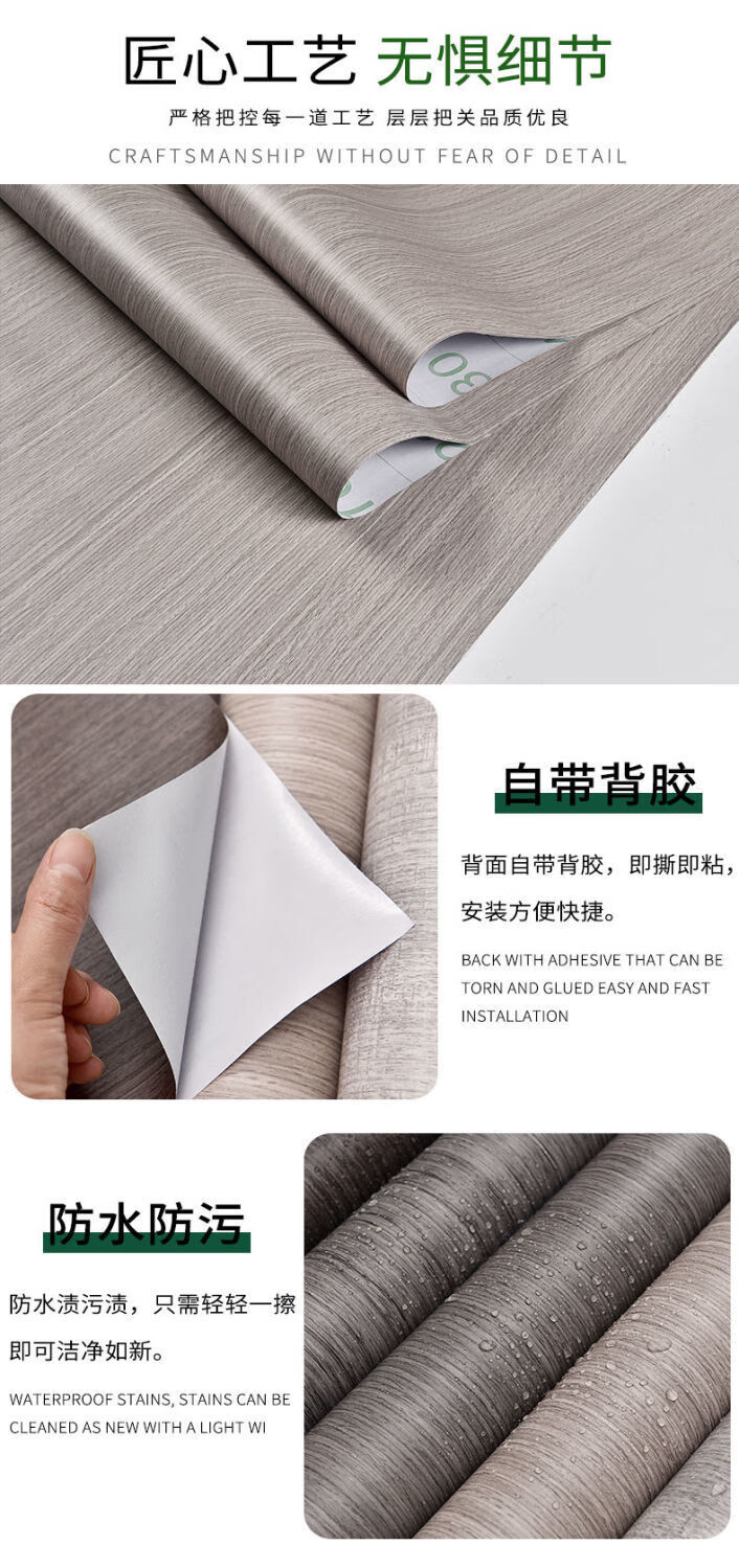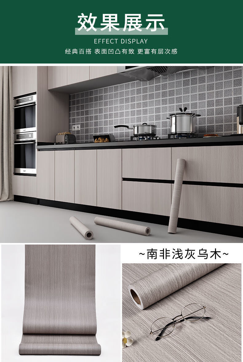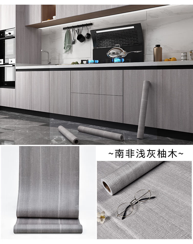 Meikejie imitation wood grain waterproof thickened cabinet renovation and color change ugly stickers furniture cabinet kitchen anti-oil stain self-adhesive film imitation wood grain light gray 5 meters X 80 cm