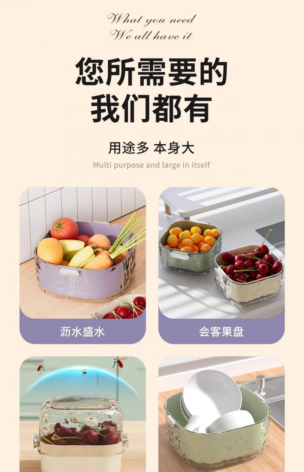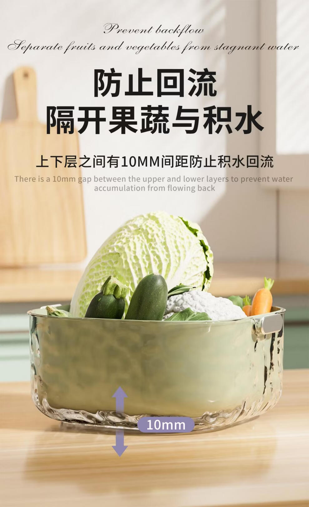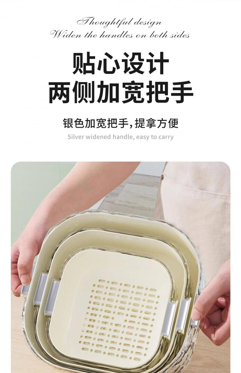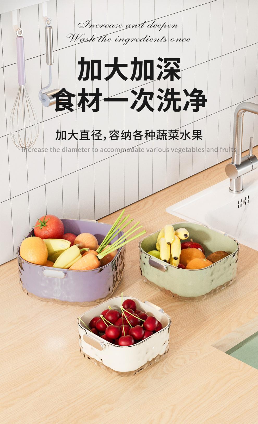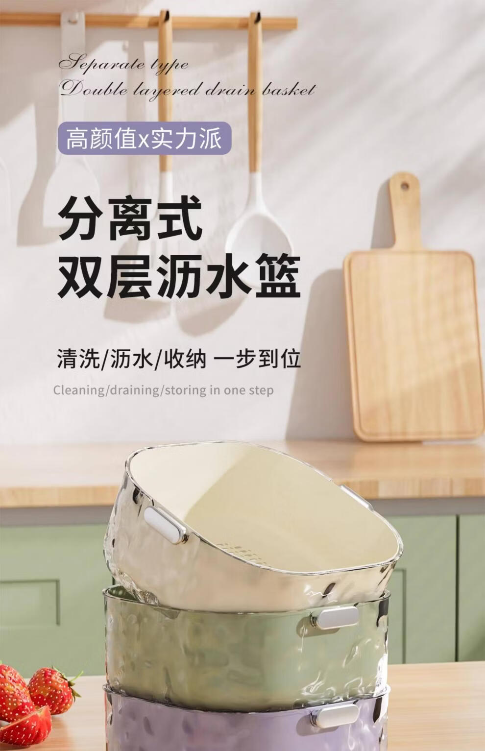 Tuojin double-layered sink drain basket eight-piece set for kitchen, living room, household fruit plate, simple plastic vegetable basket, milk white - small, medium and large - double-layered drain basket, environmentally friendly material