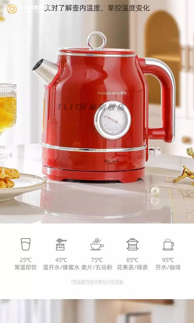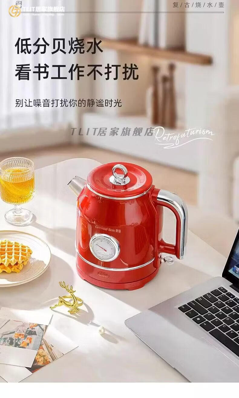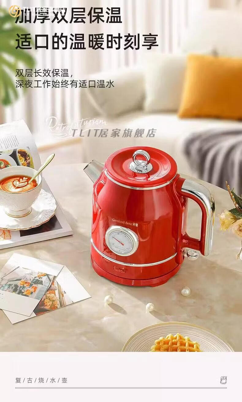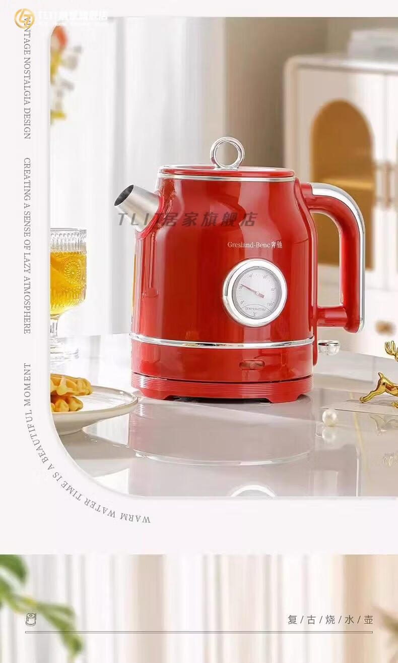 TLIT German imported quality red retro kettle electric kettle household antique stainless steel kettle large capacity Mercedes-Benz electric kettle丨Red 1ml