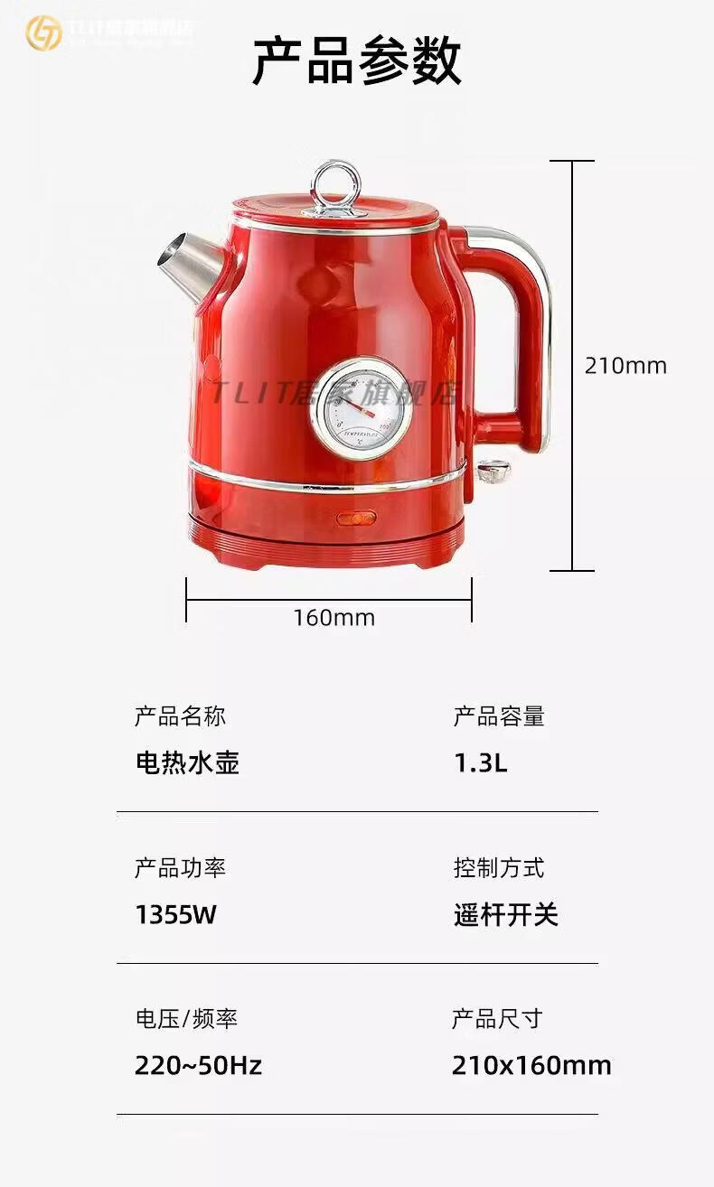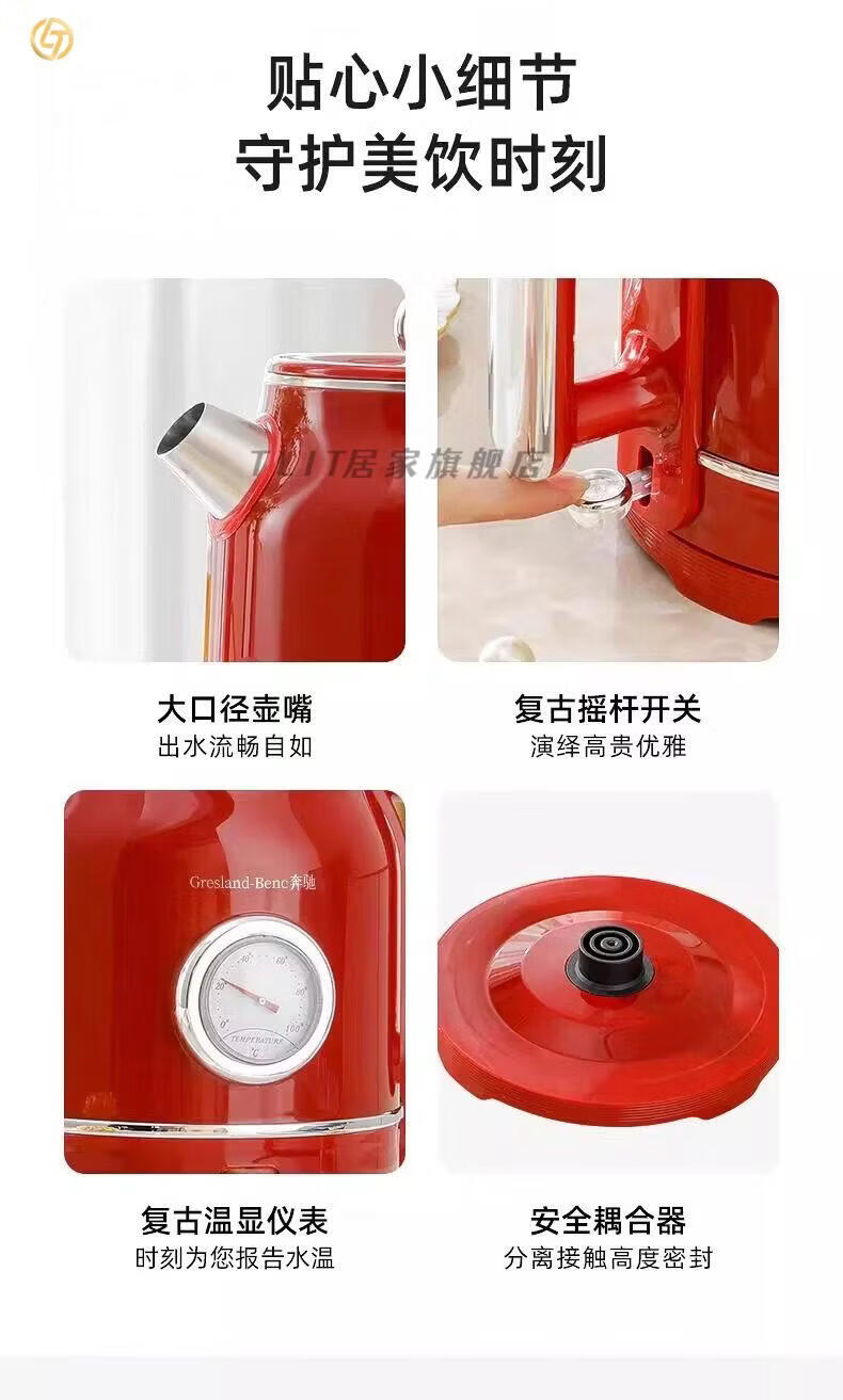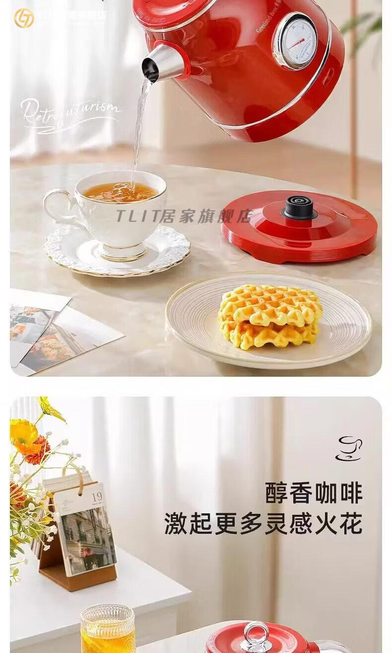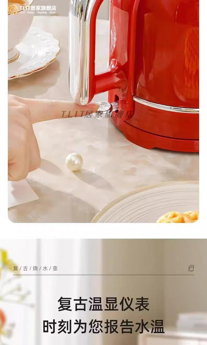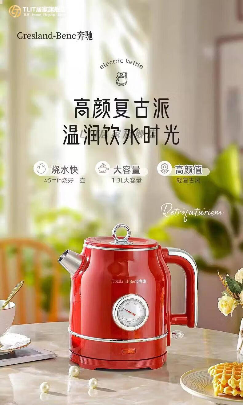 TLIT German imported quality red retro kettle electric kettle household antique stainless steel kettle large capacity Mercedes-Benz electric kettle丨Red 1ml