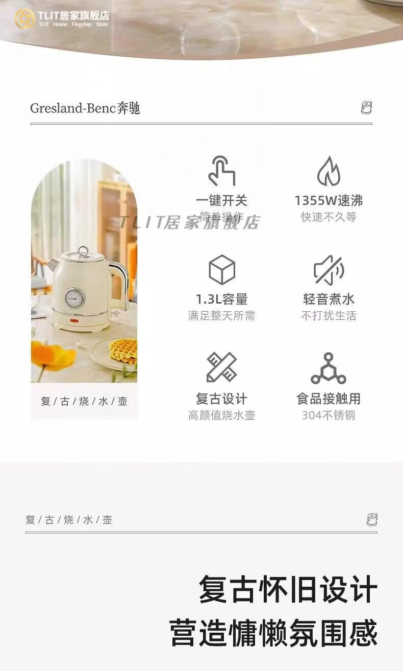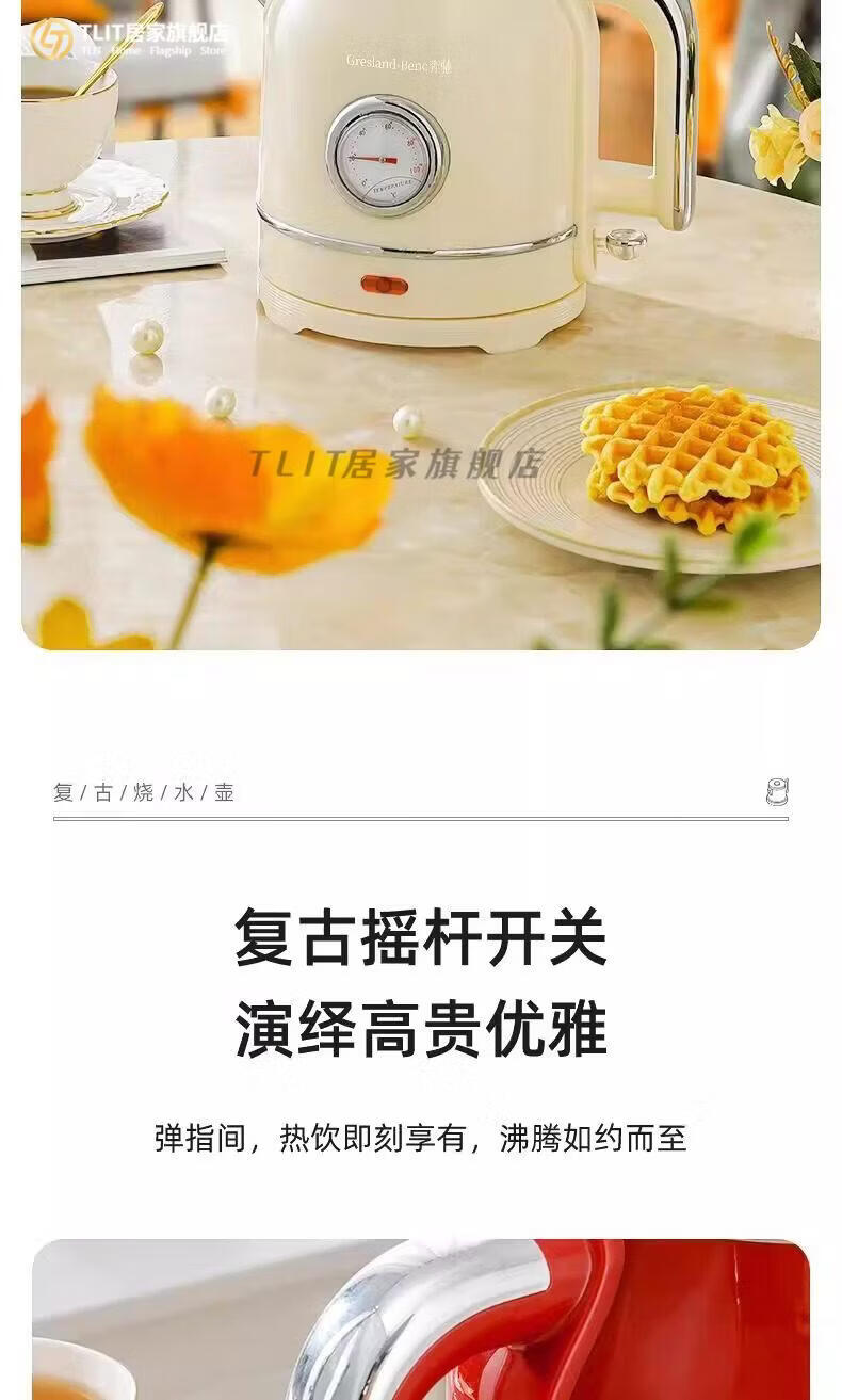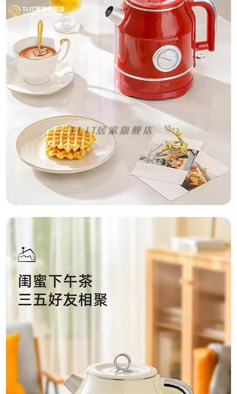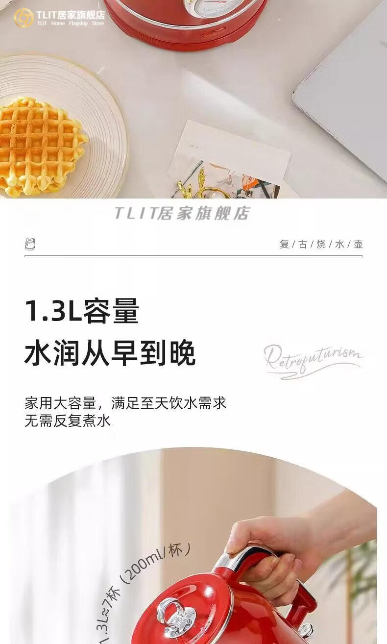 TLIT German imported quality red retro kettle electric kettle household antique stainless steel kettle large capacity Mercedes-Benz electric kettle丨Red 1ml