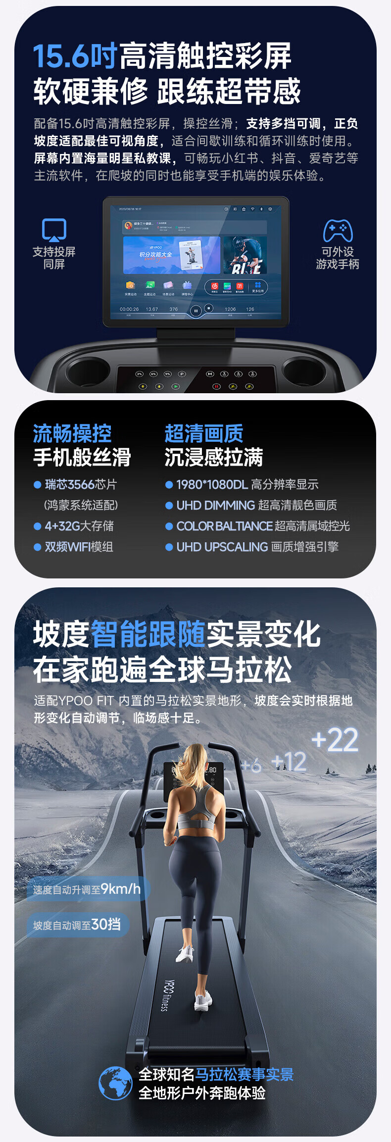 Easyrun M3max Marathon Treadmill Home Intelligent Climbing and Shock Absorbing Indoor Gym Equipment Marathon Climbing Model 15.6-inch Color Screen Version 19 Sky Dome Large Slope Black Walnut Wood Grain Version