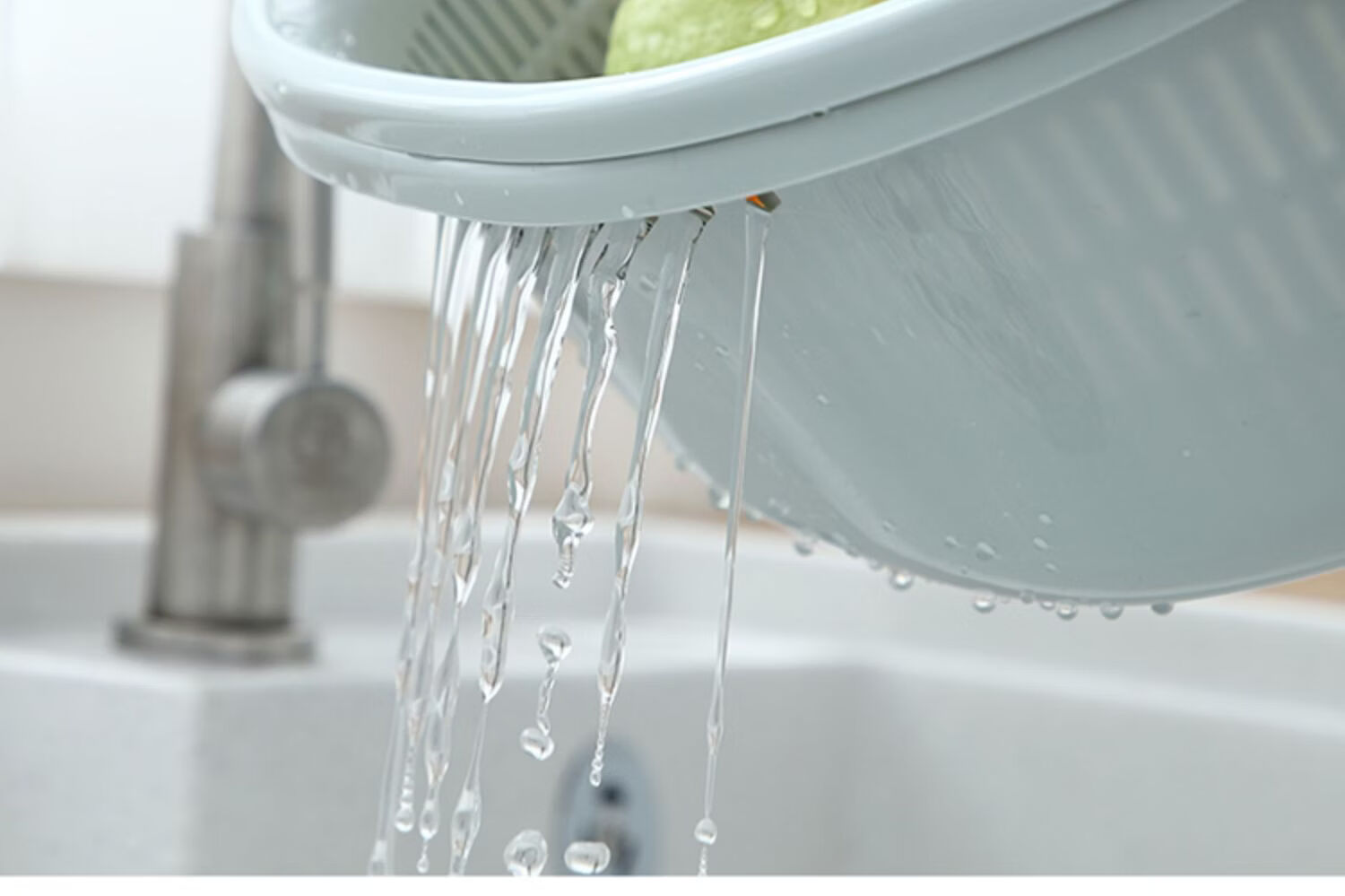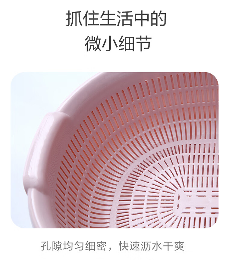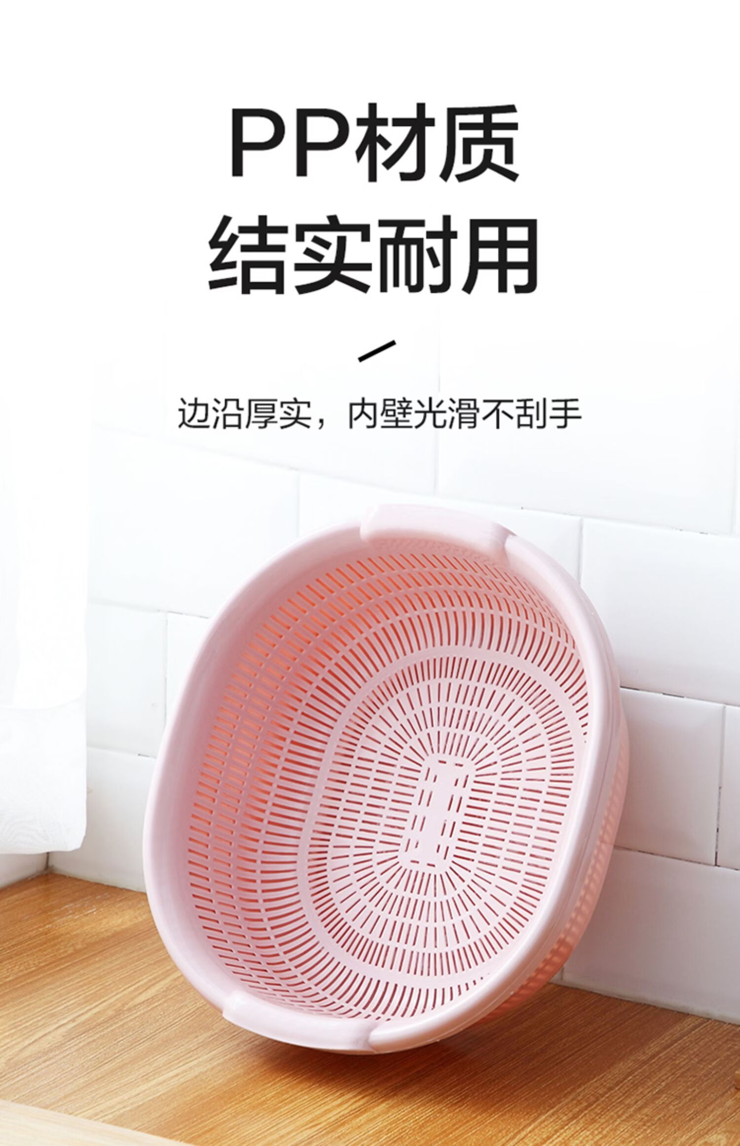 Yusenyi vegetable washing basin, rice washing and draining basket, home kitchen and living room, double-layer plastic sieve, vegetable basket, fruit filtering basket, Nordic blue, upgraded and thickened, 2-piece set