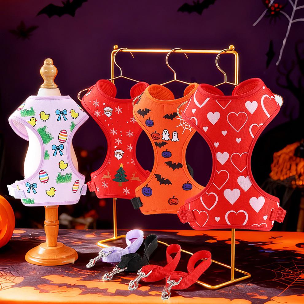 Miaopule Dog Leash Vest Style Small Dog Teddy Bichon Pomeranian Puppy Harness Pet Dog Chain Dog Walking Leash Easter S (3-5 catties recommended)