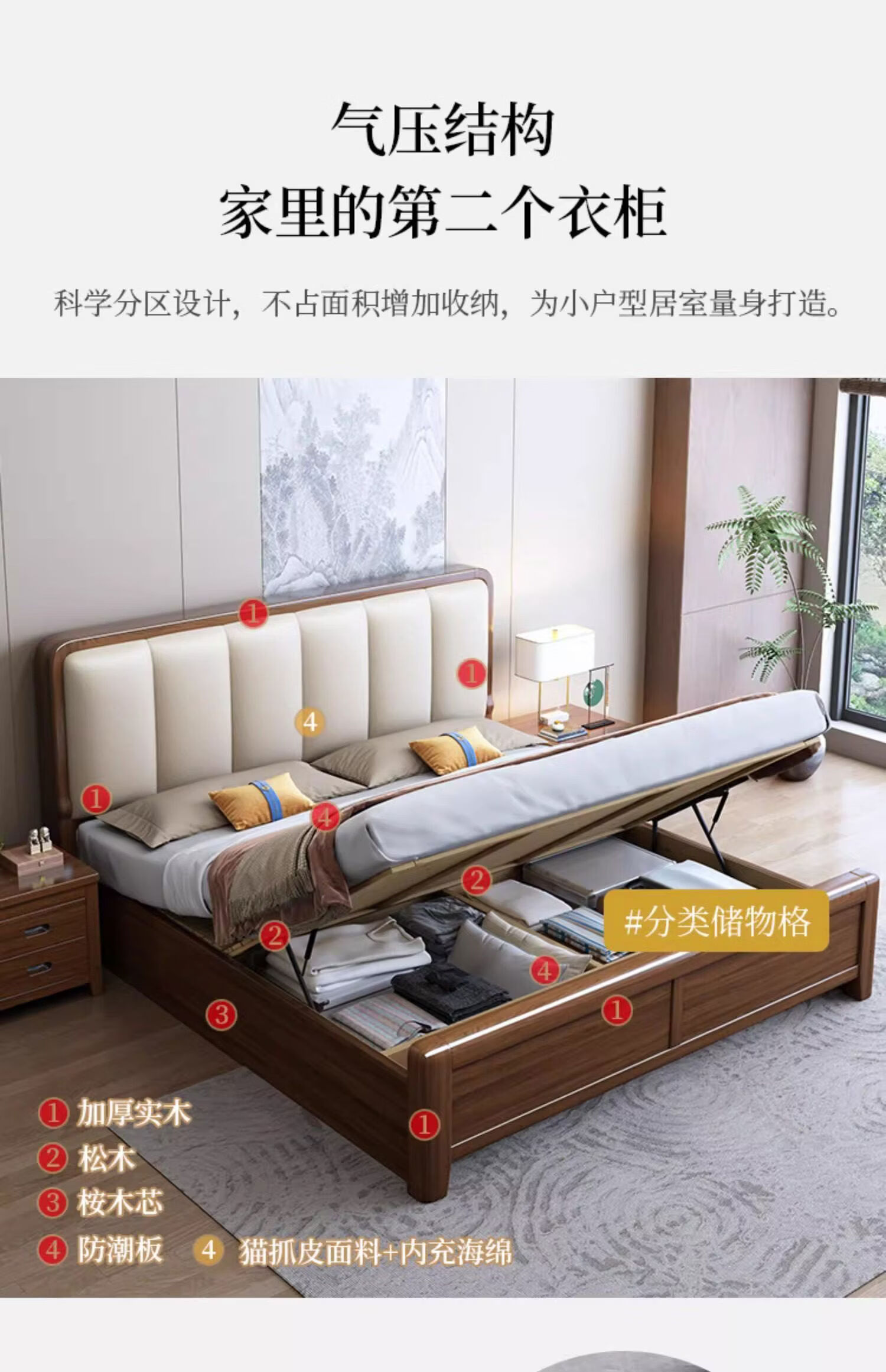 Yusenyi bed 18m home soft-packed double bed master bedroom large bed bed + 1 cabinet 15002000 air pressure structure