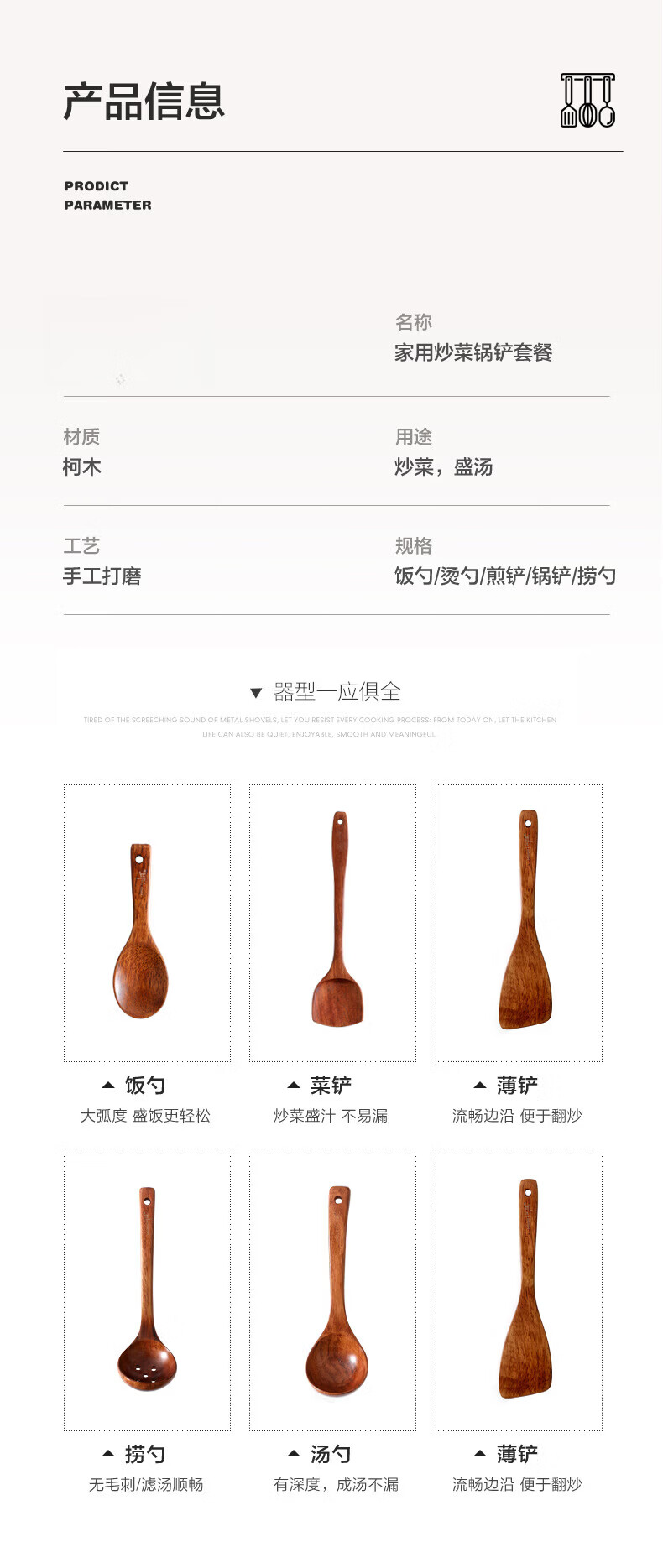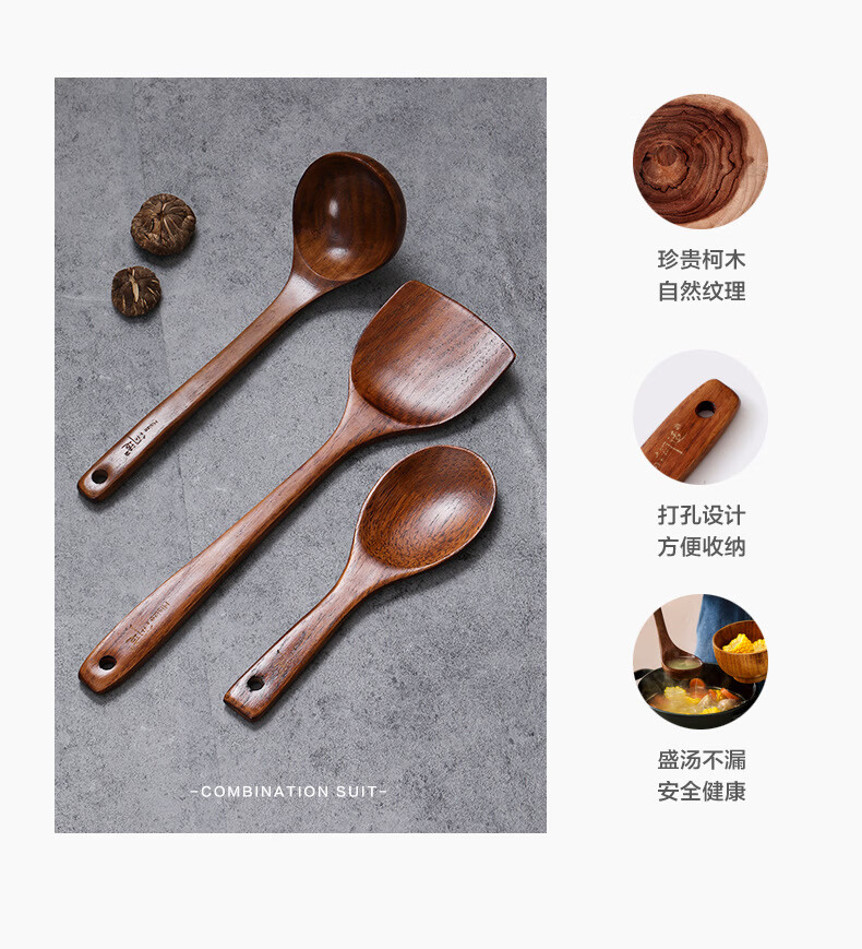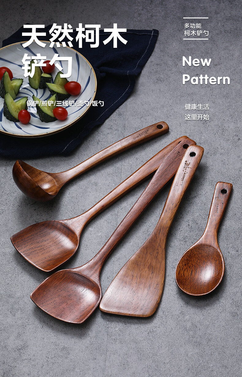 Shantou Lincun He Shike wooden pot shovel spoon kitchenutensils kitchen utensils cooking shovel cooking wooden shovel straight handle large spoon 30*8.8cm about 80g