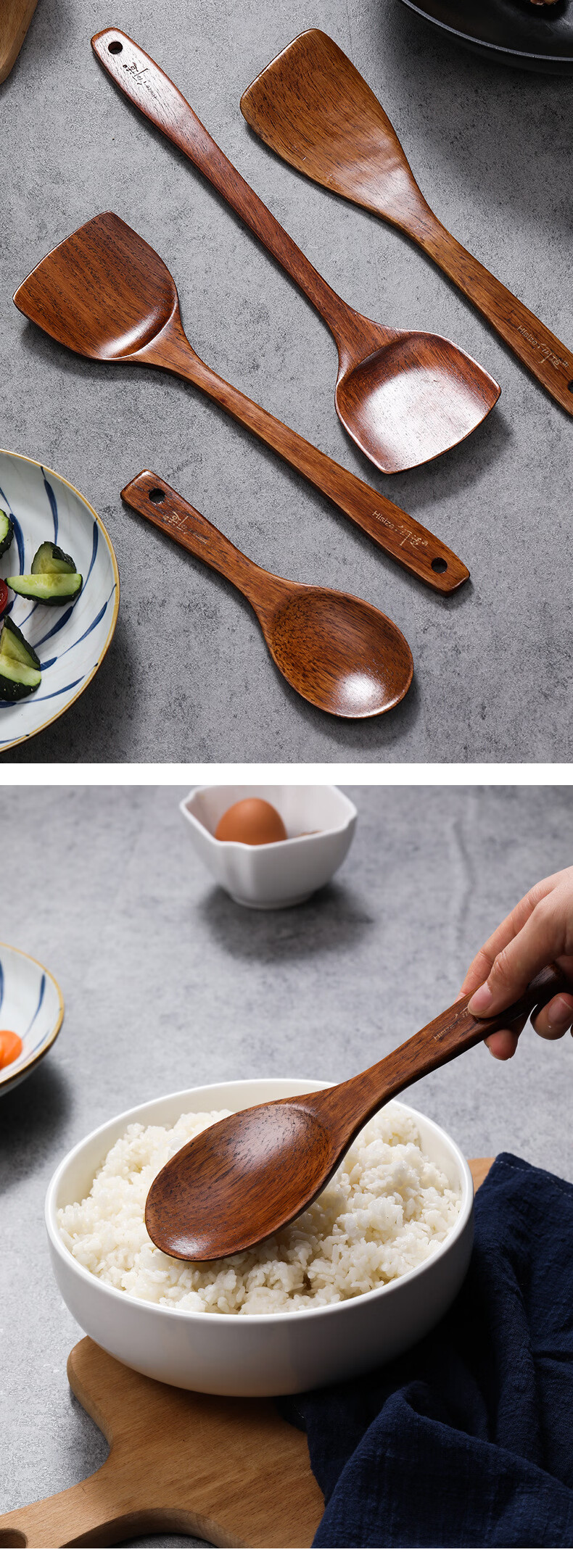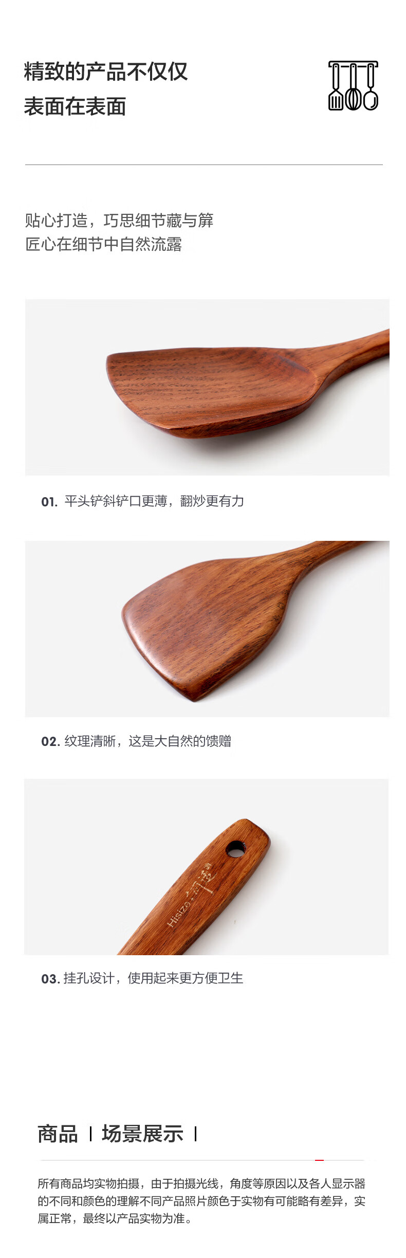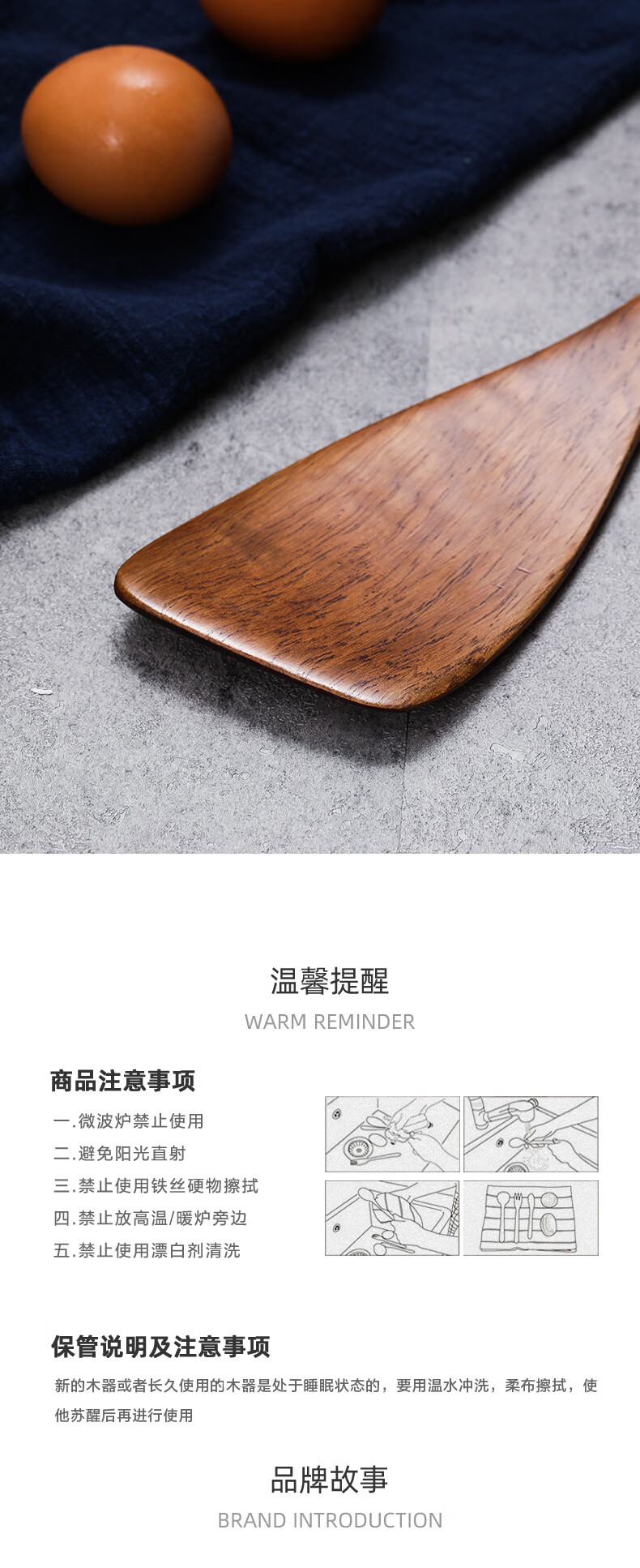 Shantou Lincun He Shike wooden pot shovel spoon kitchenutensils kitchen utensils cooking shovel cooking wooden shovel straight handle large spoon 30*8.8cm about 80g