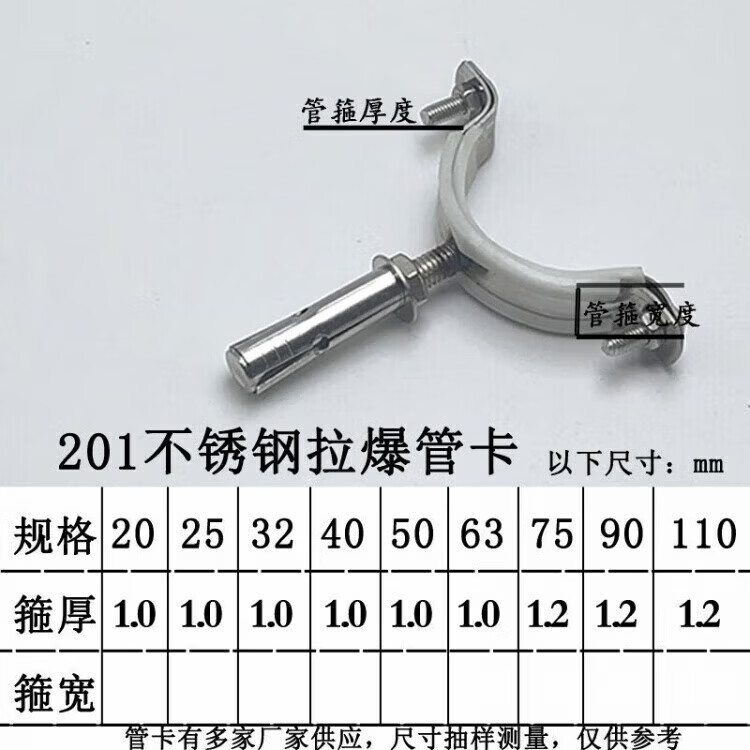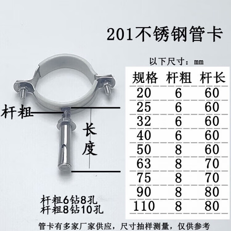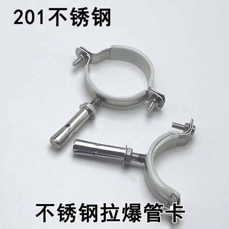 Xu Ding 201 stainless steel pipe clamp, stainless steel hanging code, stainless steel pull-out rubber pipe clamp, expansion bolt pipe hoop elevator, 25 pipe clamps M6*60mm, 10 pieces, stainless steel pull-out