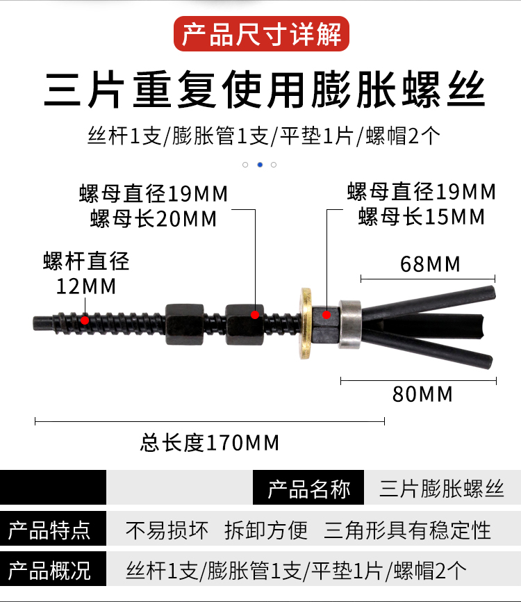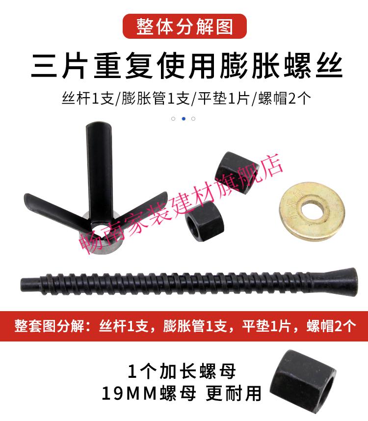 Junmo three-piece reusable expansion screw water drill fixed base expansion plug removable pull-out three pieces of thick wire 10 pieces