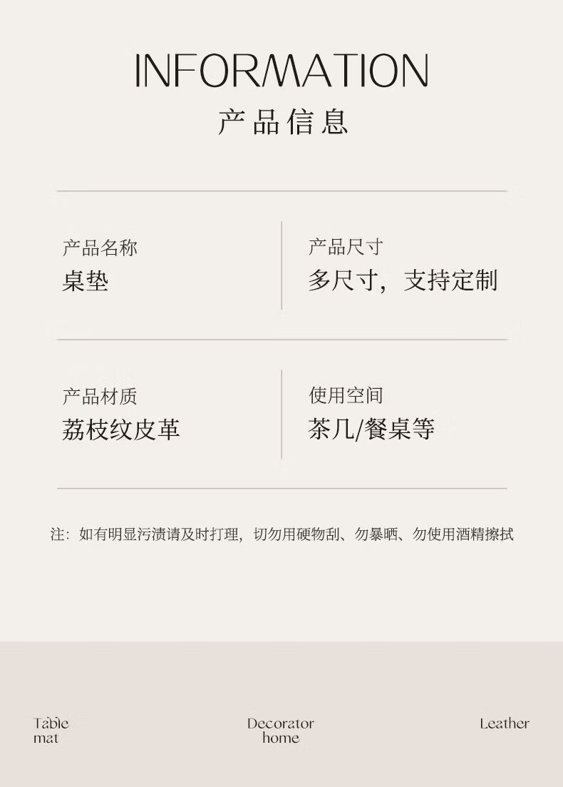 Fantasy table mat, disposable tablecloth, rectangular coffee table table mat, semi-warm time, pebbled leather 80x80cm, safe and environmentally friendly