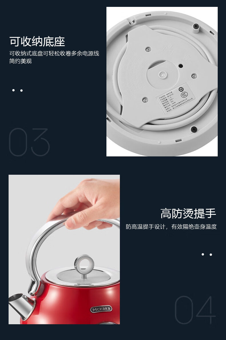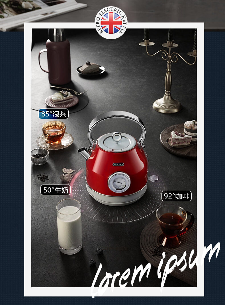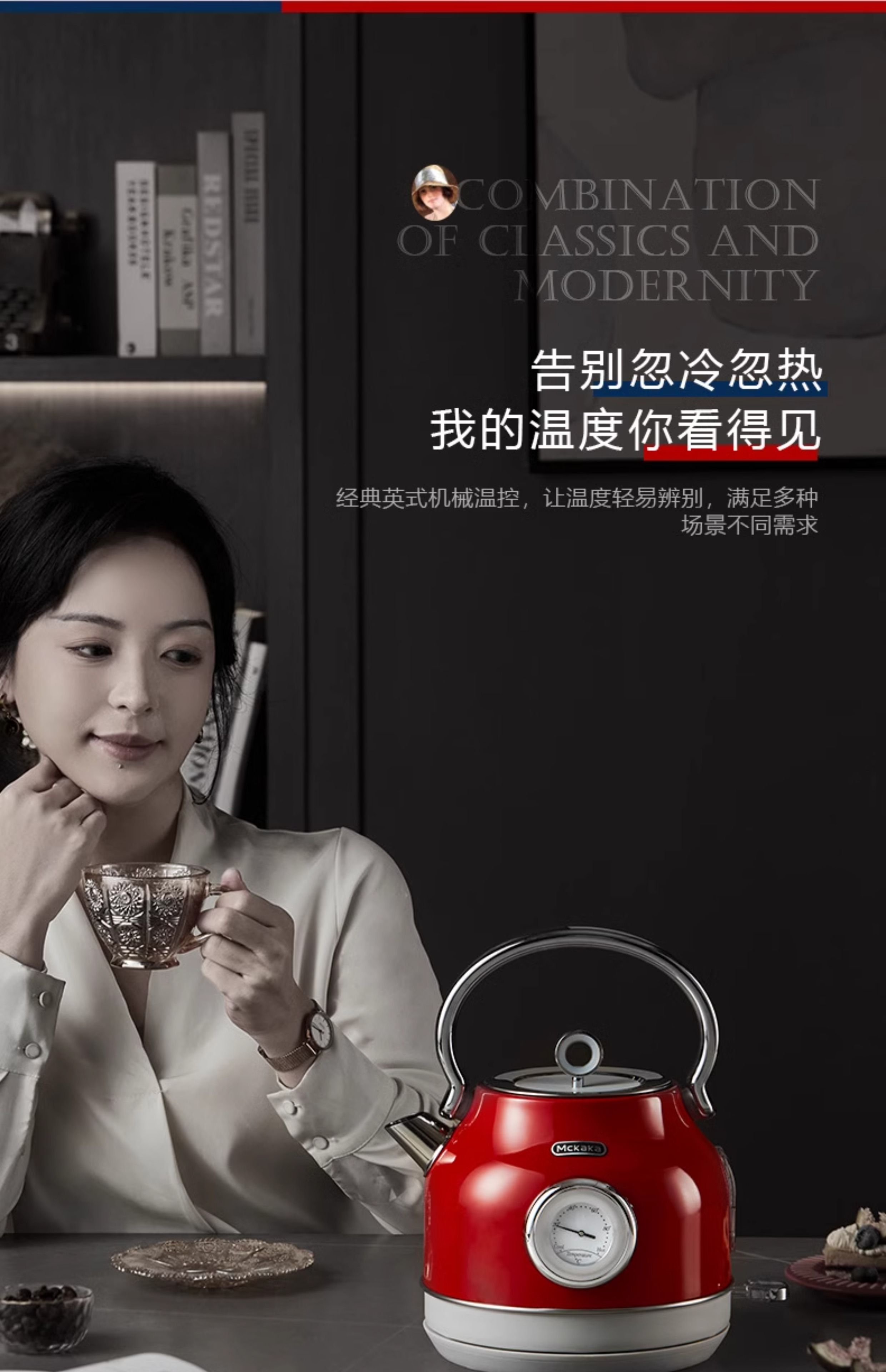 MEOD British imported retro kettle household electric kettle automatic power off kettle 304 stainless steel quick boiling kettle milky white kettle 21ml