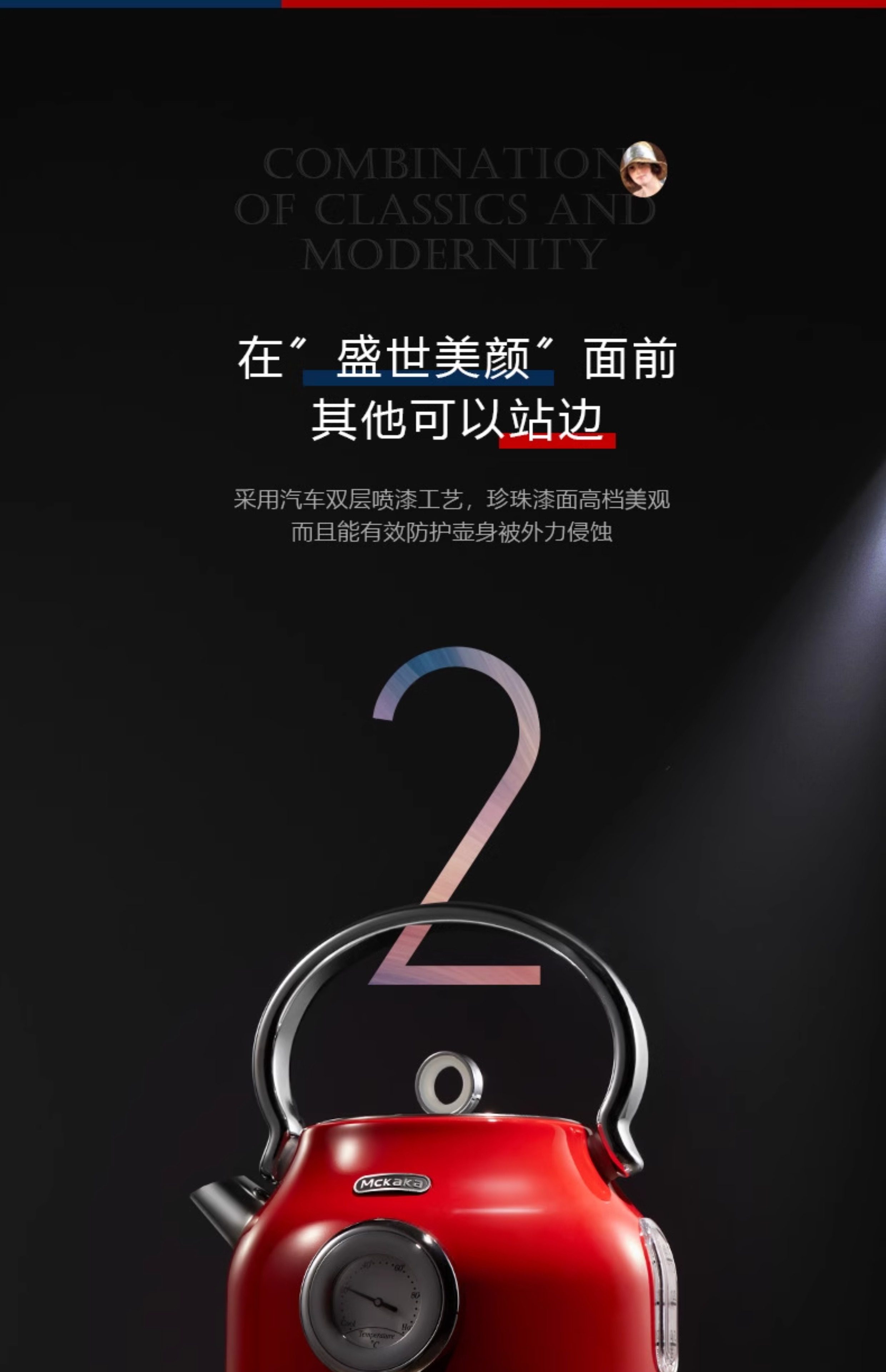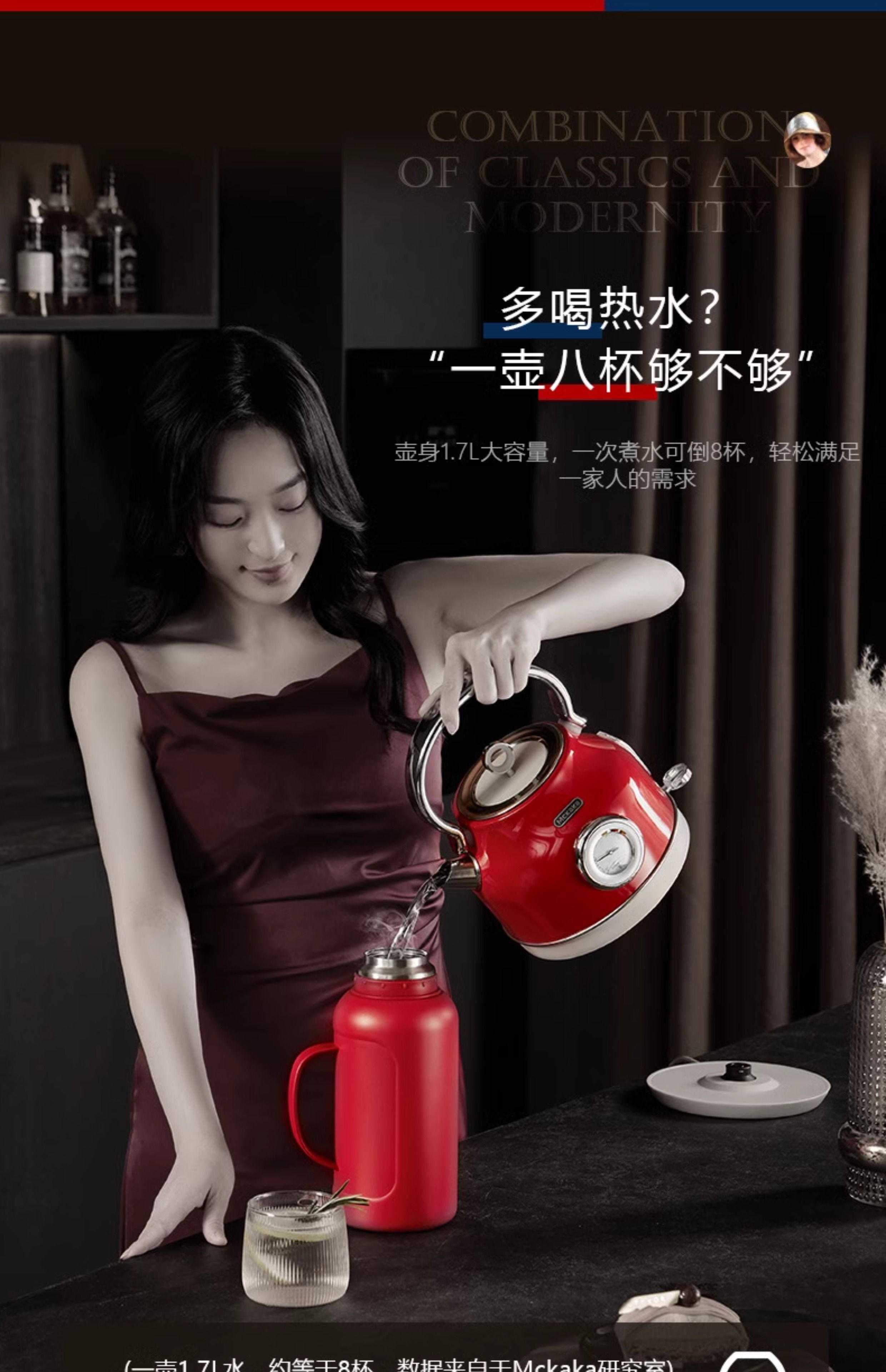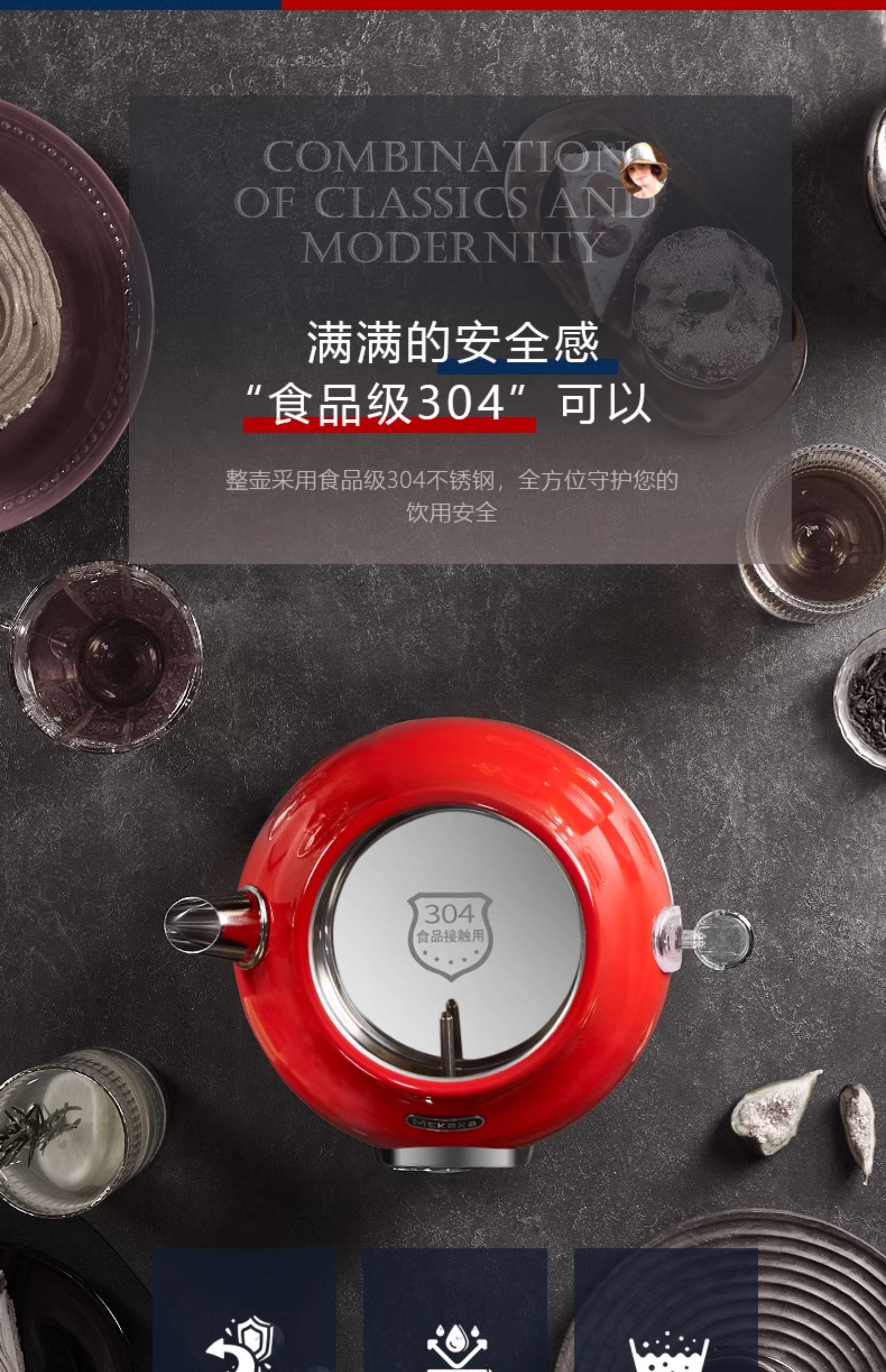 MEOD British imported retro kettle household electric kettle automatic power off kettle 304 stainless steel quick boiling kettle milky white kettle 21ml