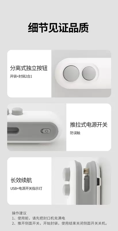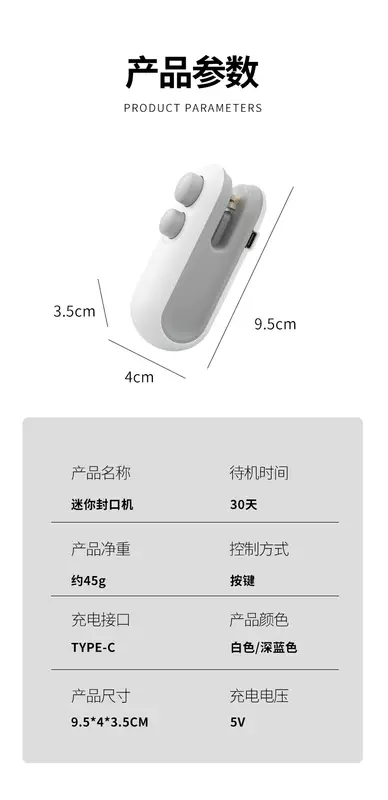Yusenyi vacuum sealing machine seals household plastic bag sealing artifact, portable hand-pressed small snack food mini machine, upgraded packaging bag sealing machine blue (charging model comes with data cable and opening integrated)