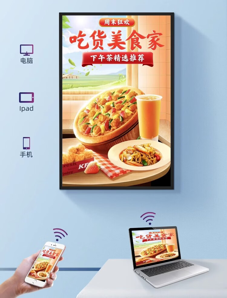 1 wall-mounted advertising machine display high-definition electronic menu TV milk tea store promotion network all-in-one machine vertical screen upgrade 40 inches (comes with wall hanging) ultra-thin aluminum alloy