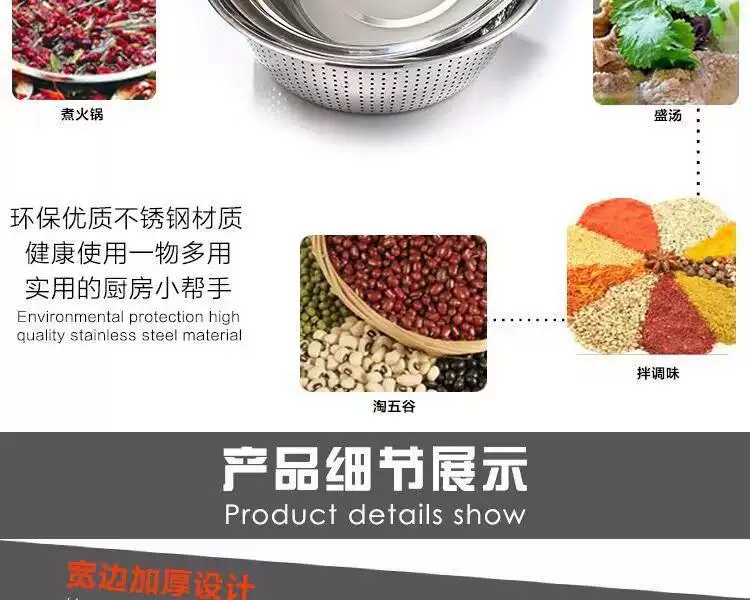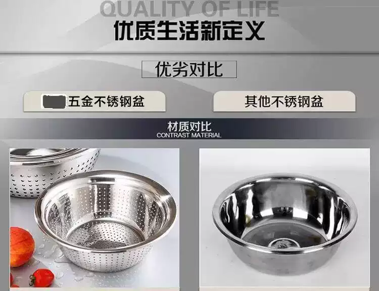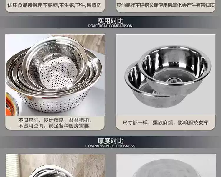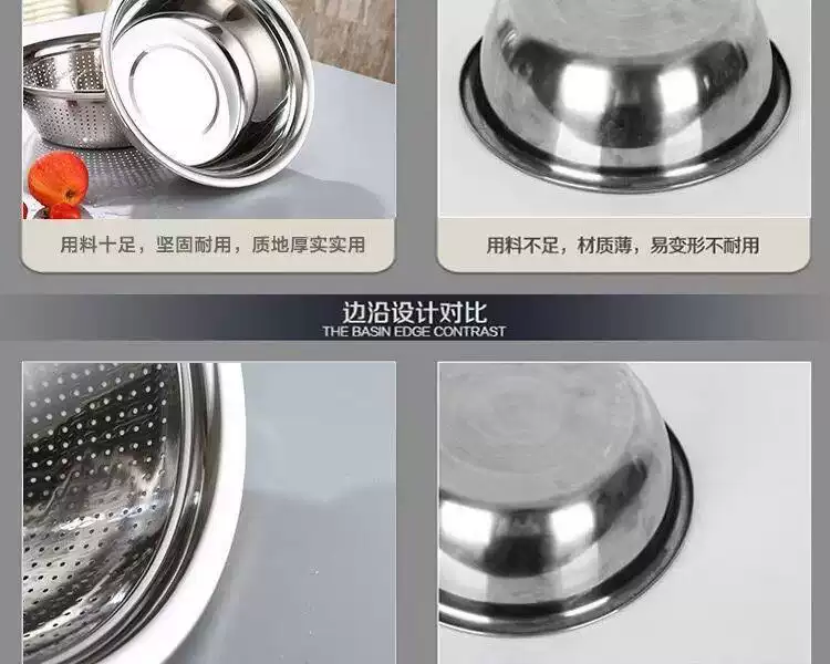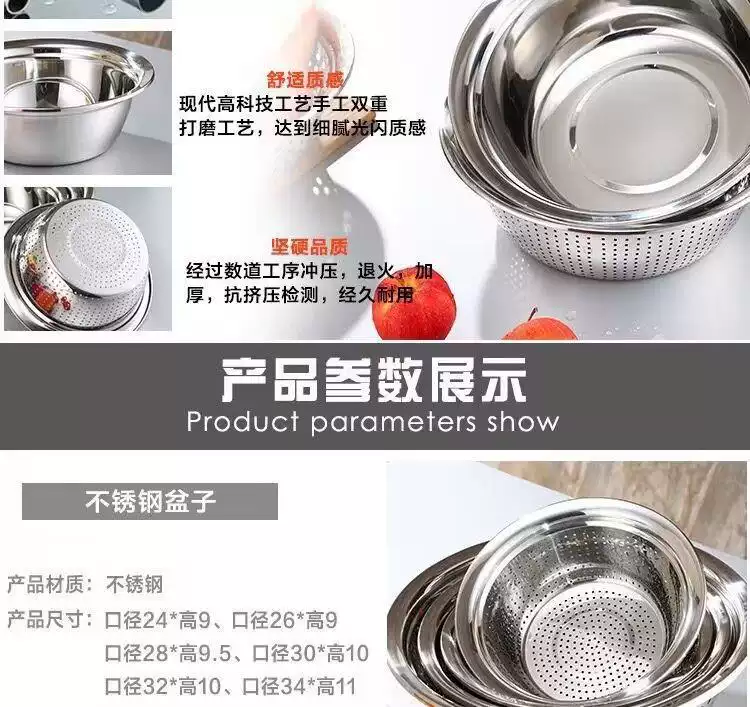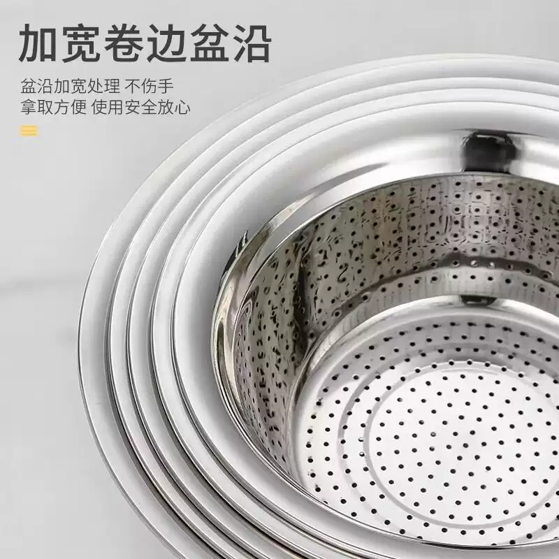 Yusenyi food-grade stainless steel basin 316L wash basin drain basket basin household kitchen leaky basin rice cleaning artifact fruit basket single 27cm drain basin