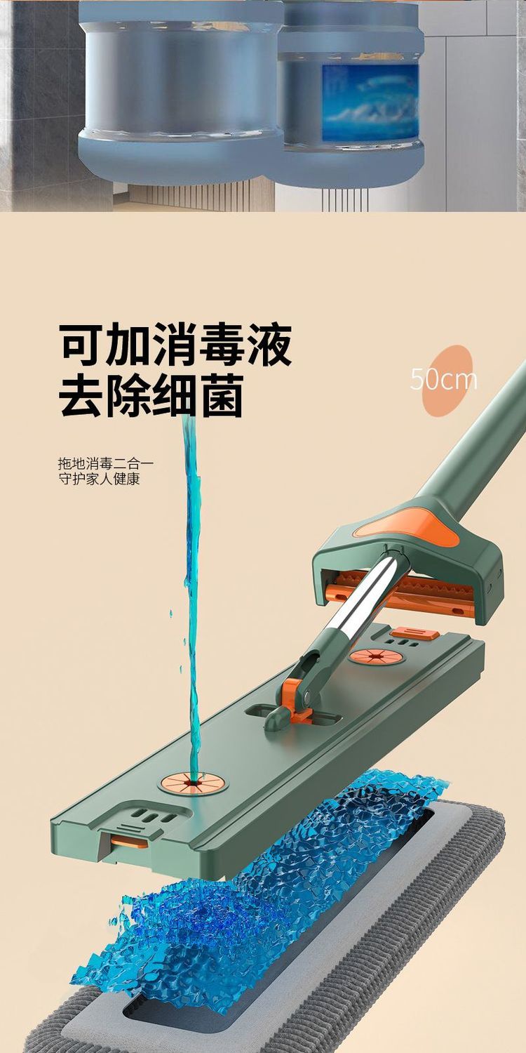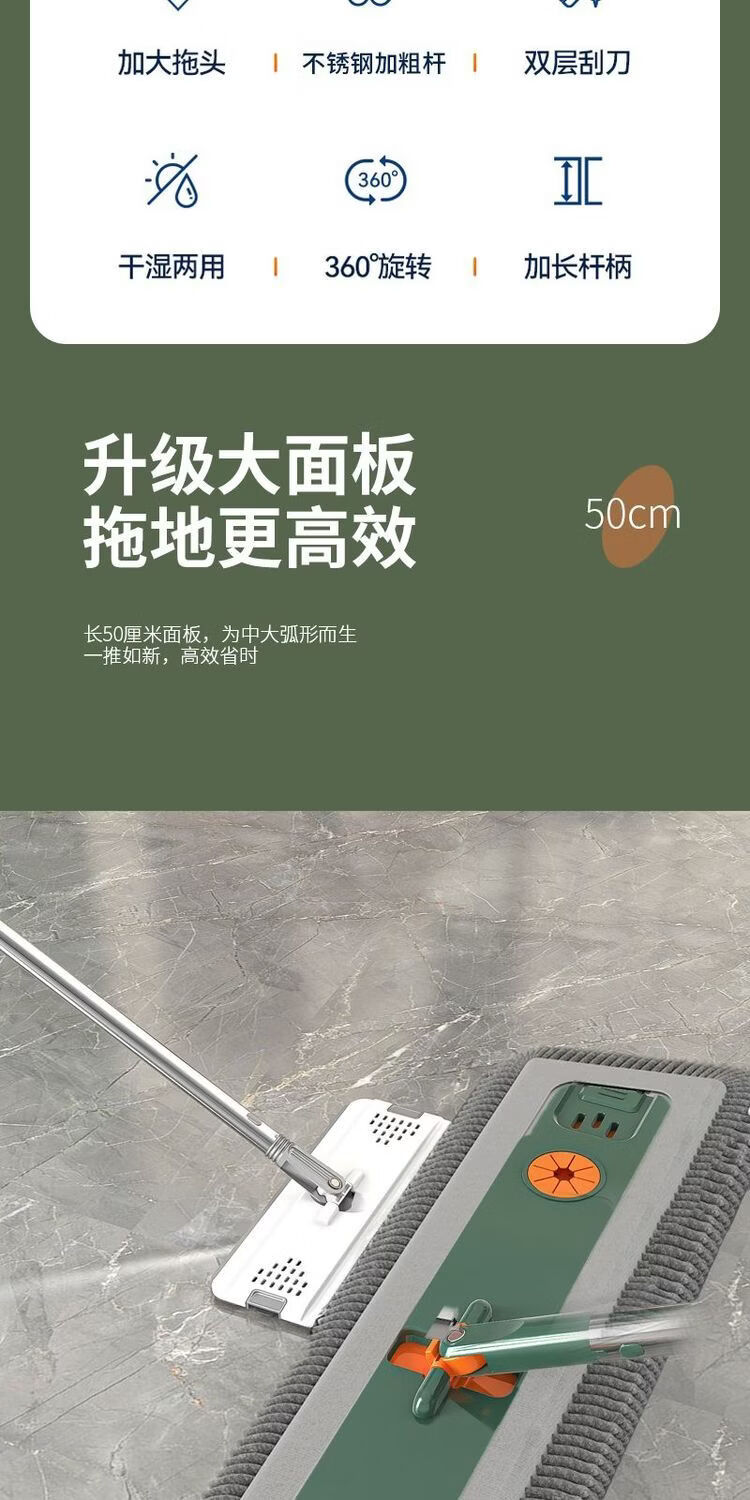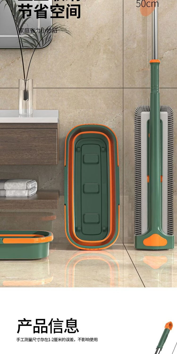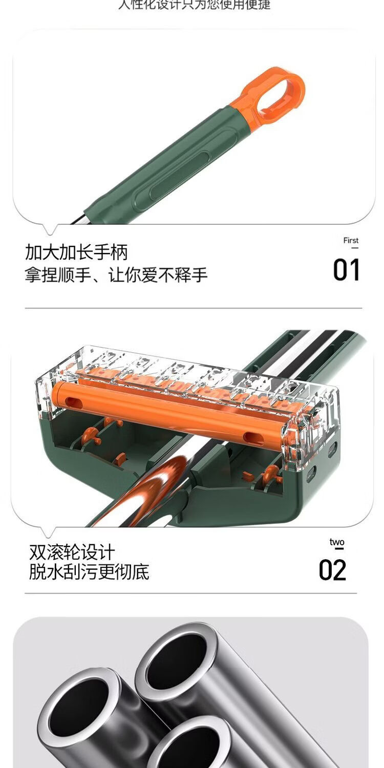 Mop set with bucket chenille hands-free flat mop household lazy one mop dry and wet dual-use long-hair absorbent mop mop orange green-chenille 45CM panel + extension rod 4 replacement cloths chenille