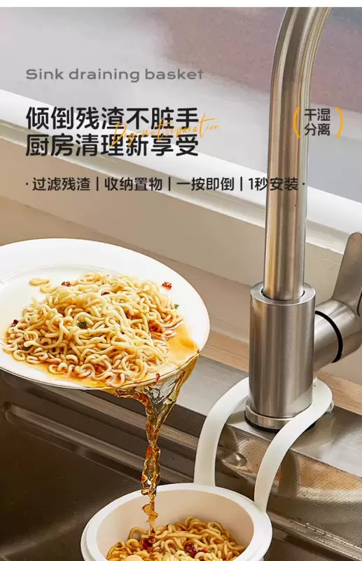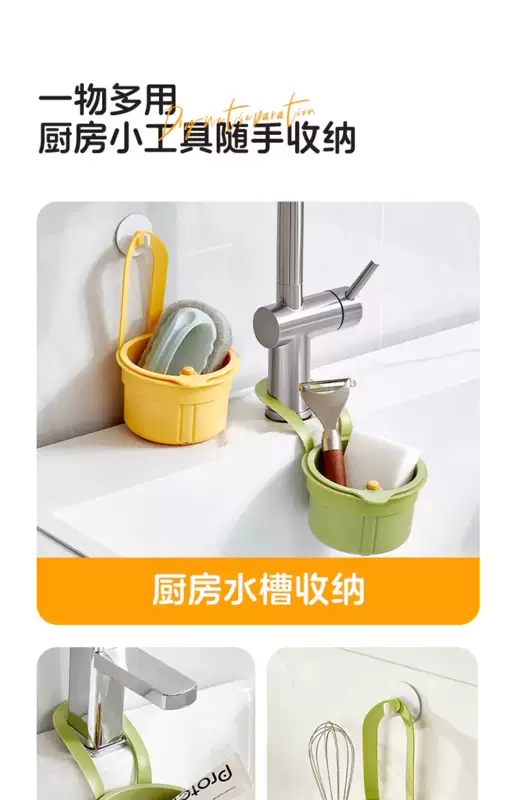Yusenyi creative multi-functional push-type sink filter storage hanging basket kitchen rack faucet sponge drain rack drain hanging basket (white x1) one-click drain without dirtying hands