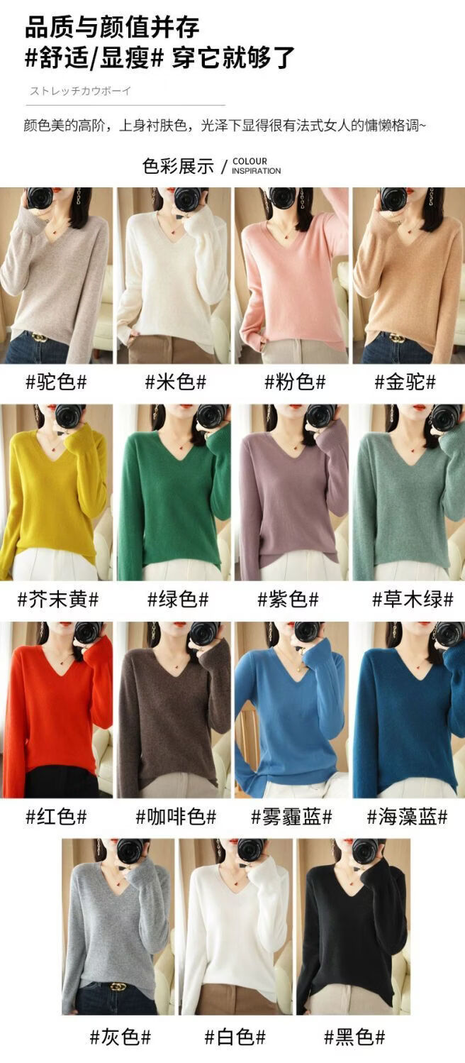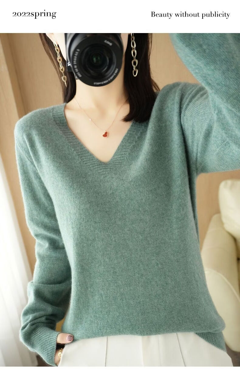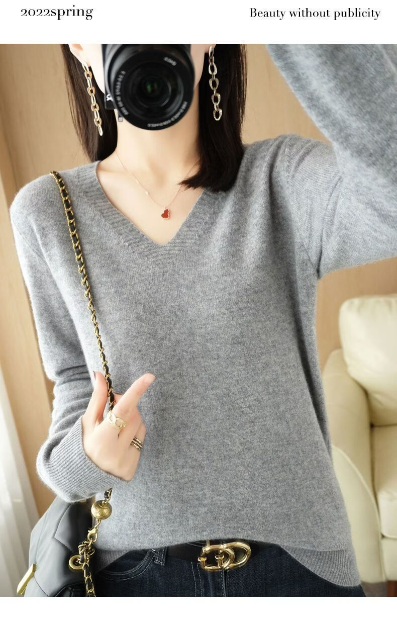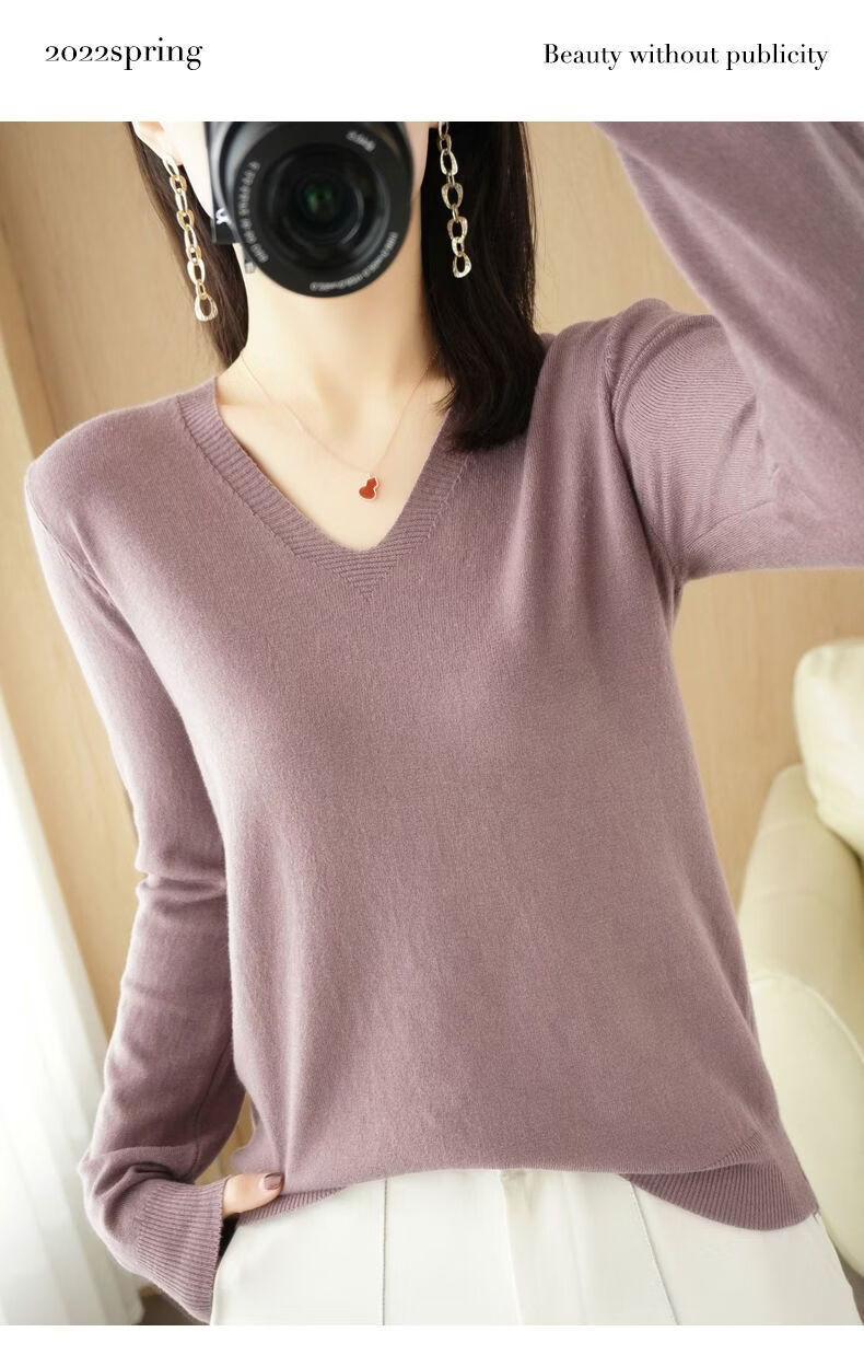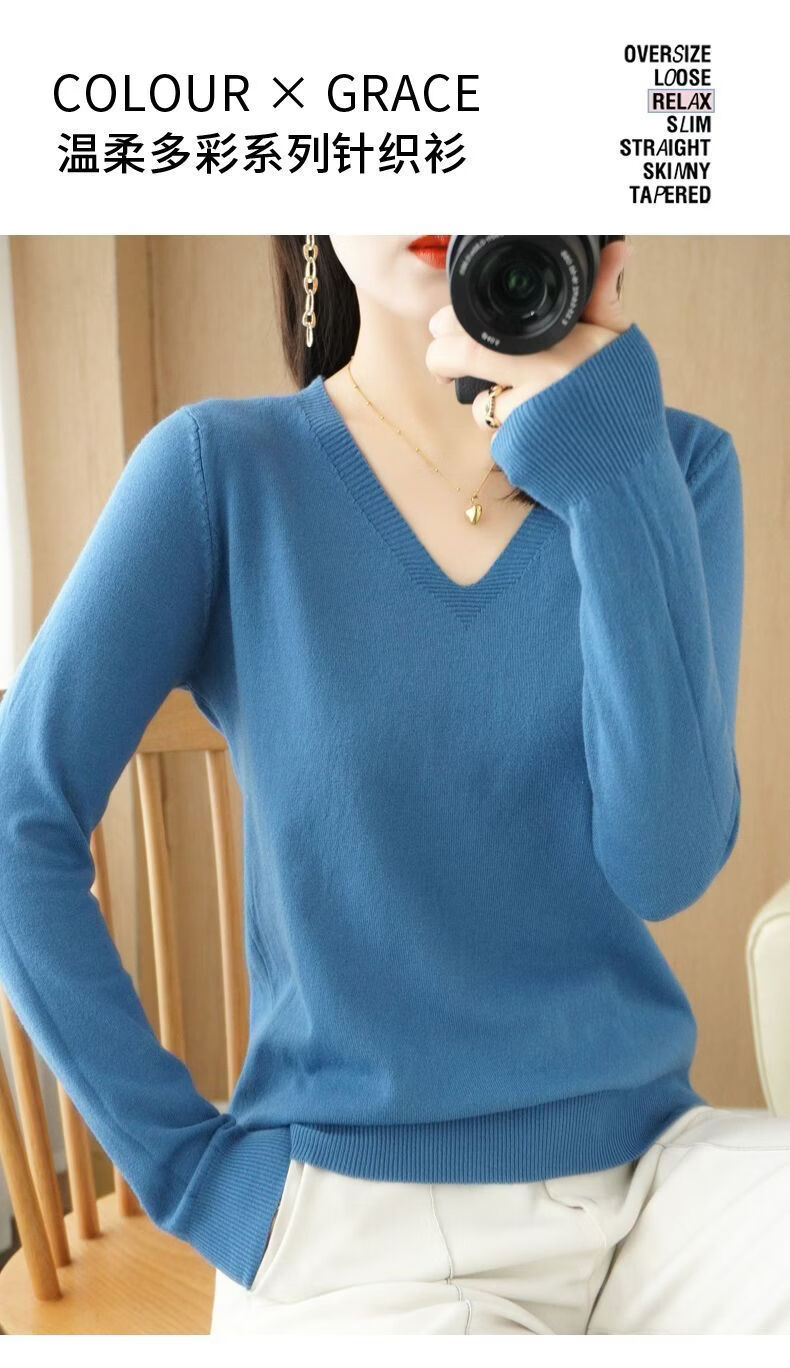 Playboy (PLAYBOY) 2026 new autumn and winter V-neck knitted sweater women's long-sleeved pullover bottoming shirt loose and simple inner wear slimming top official flagship haze blue L recommended 110-125 pounds