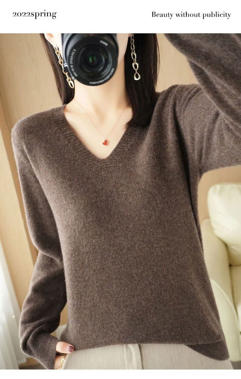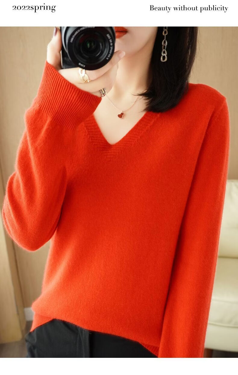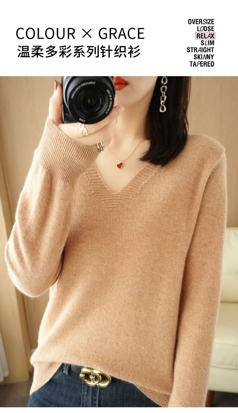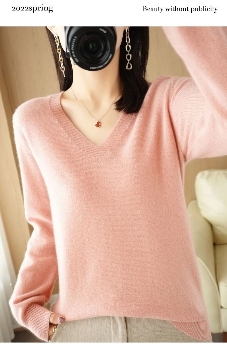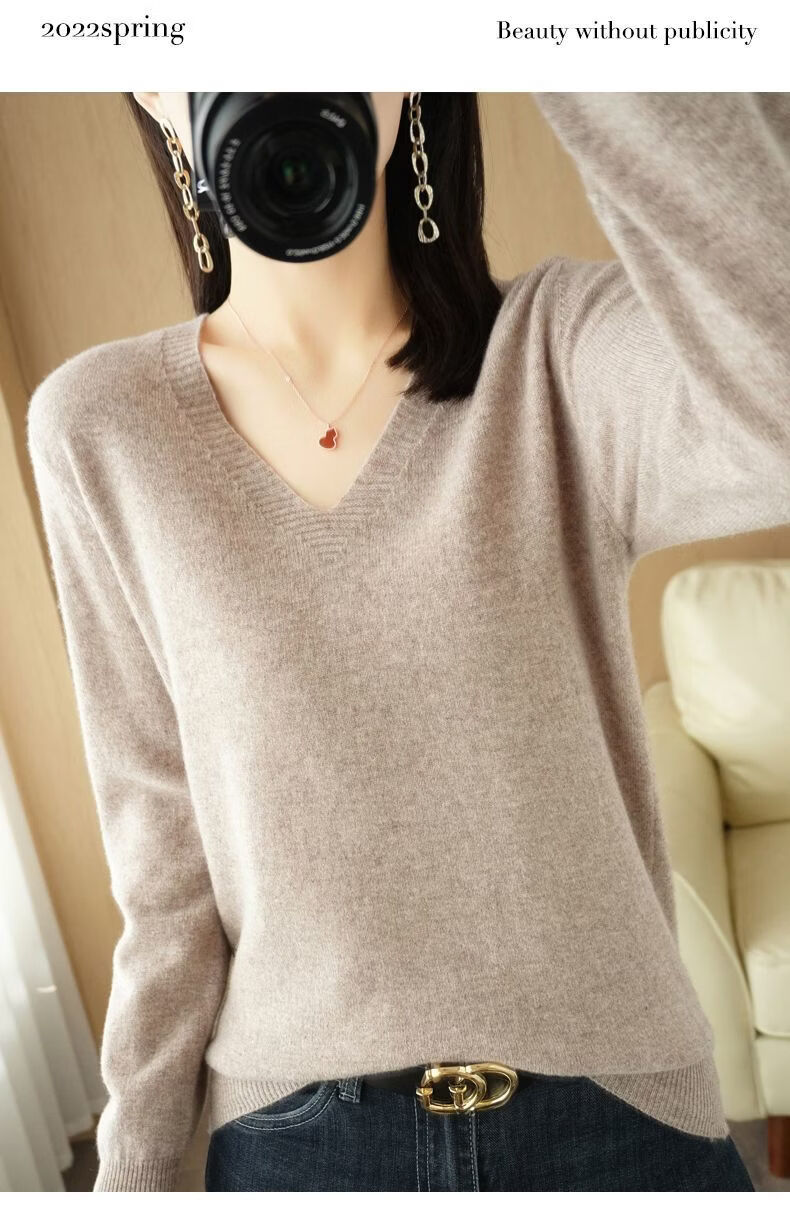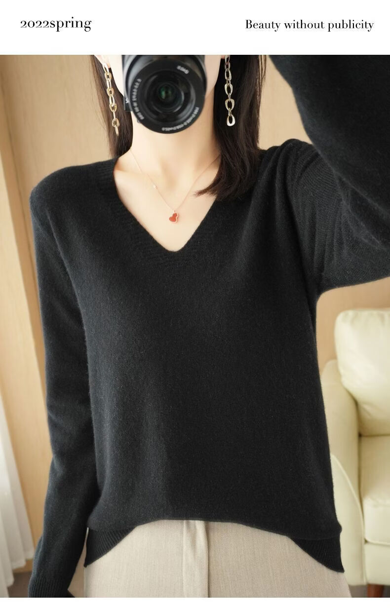 Playboy (PLAYBOY) 2026 new autumn and winter V-neck knitted sweater women's long-sleeved pullover bottoming shirt loose and simple inner wear slimming top official flagship haze blue L recommended 110-125 pounds