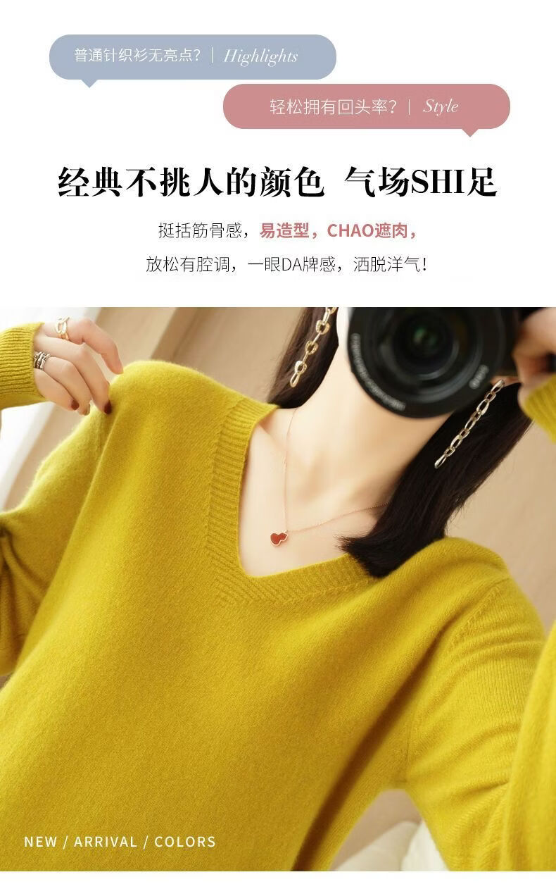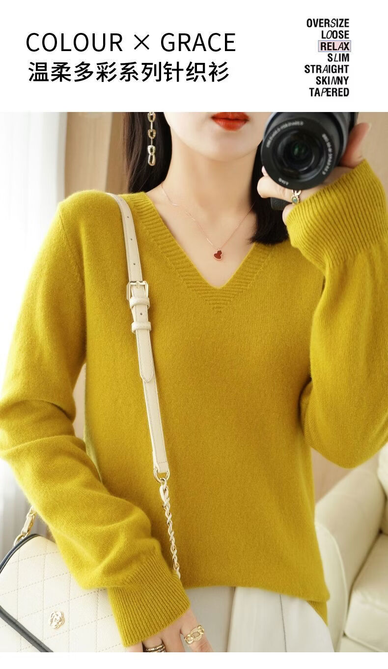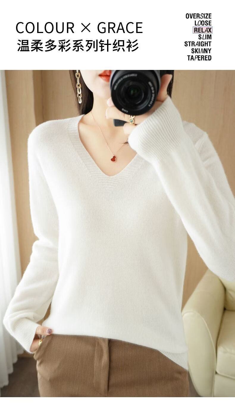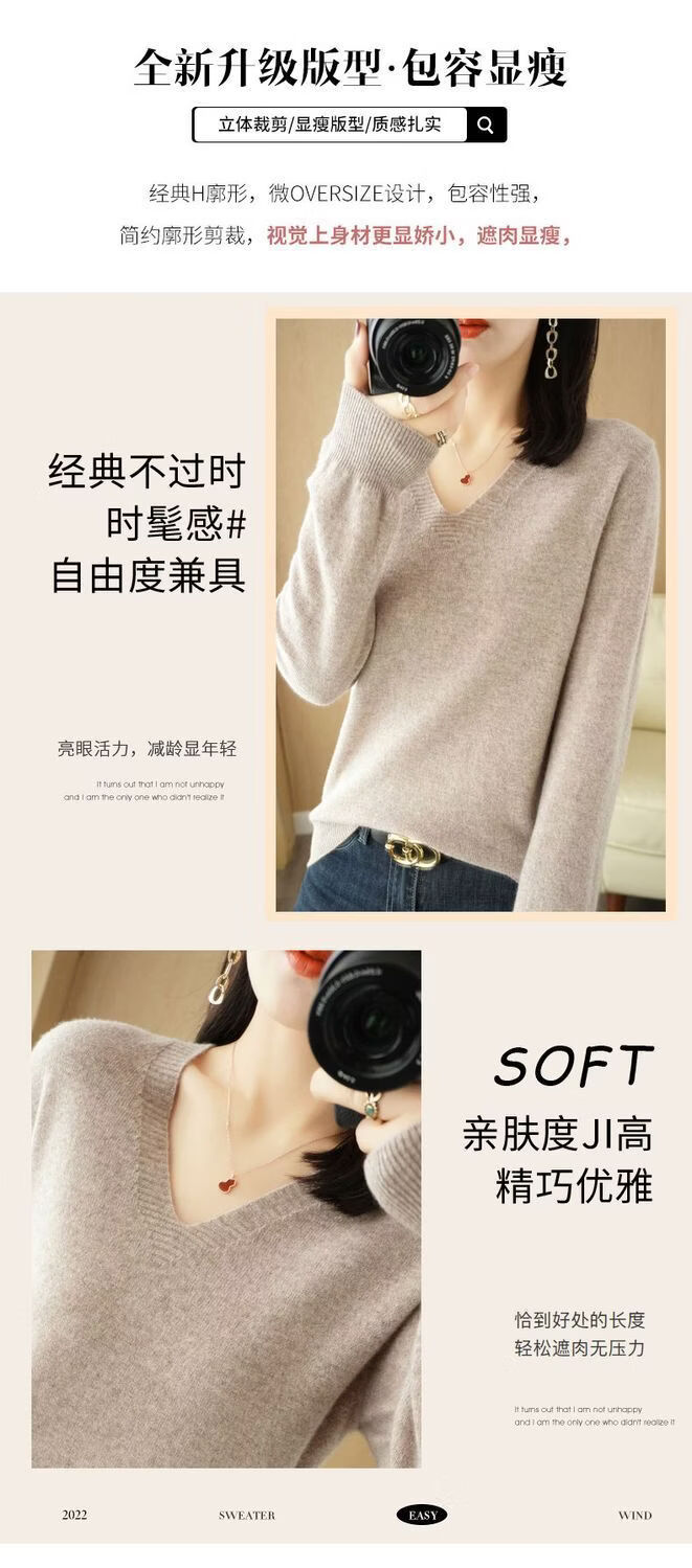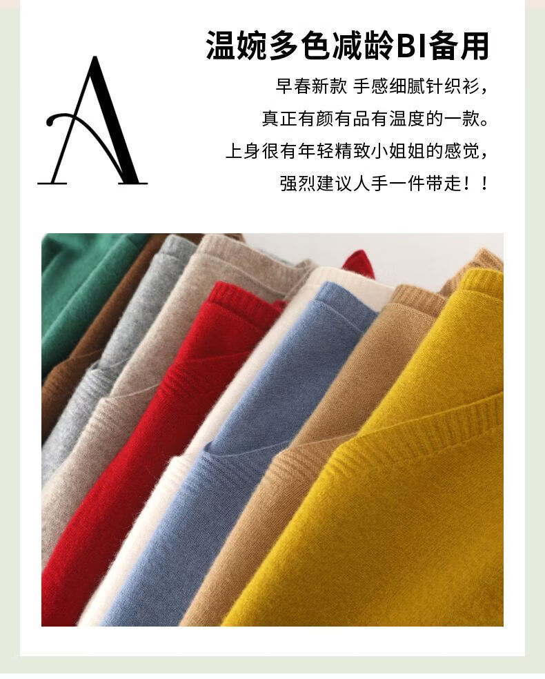 Playboy (PLAYBOY) 2026 new autumn and winter V-neck knitted sweater women's long-sleeved pullover bottoming shirt loose and simple inner wear slimming top official flagship haze blue L recommended 110-125 pounds