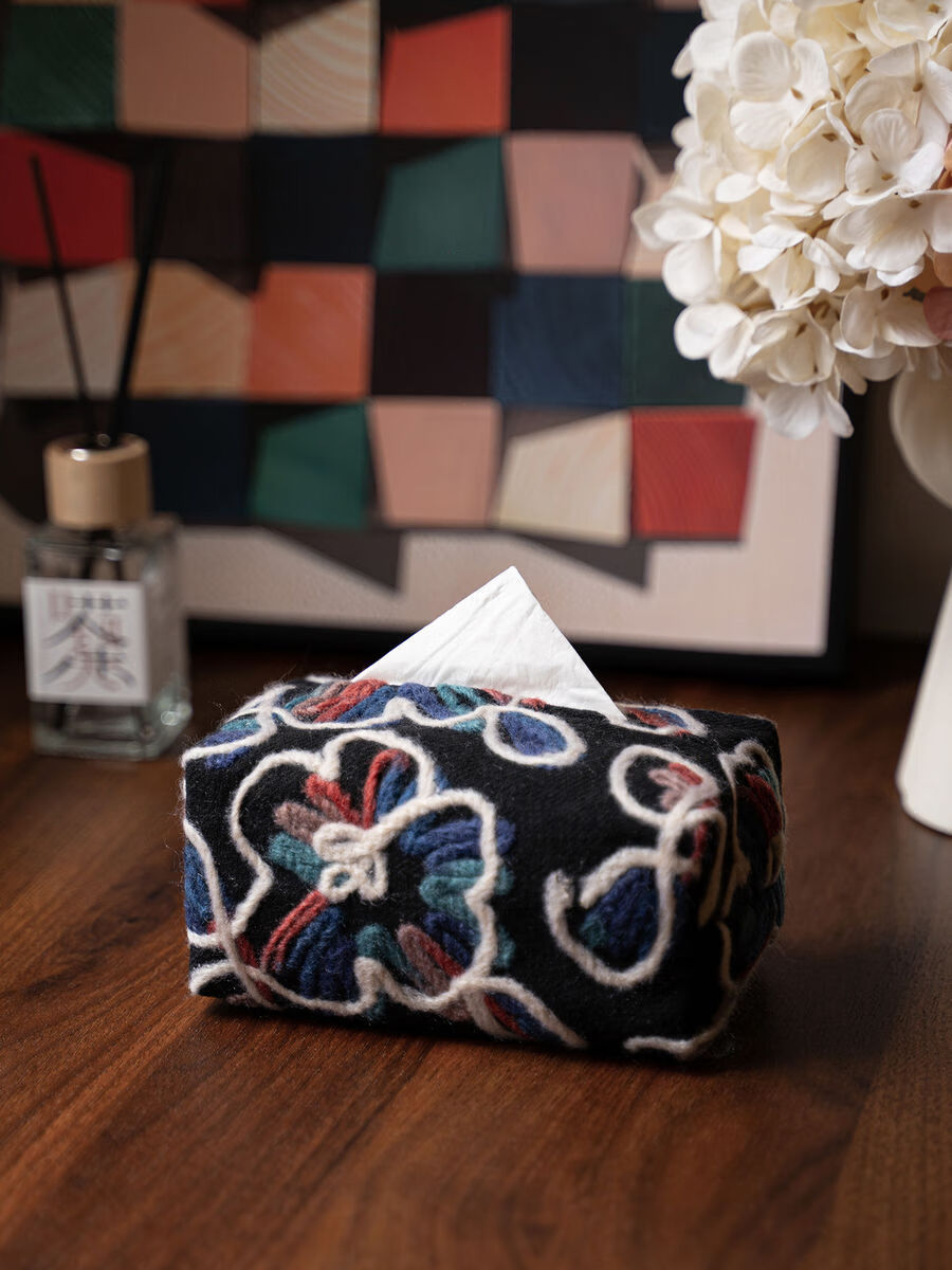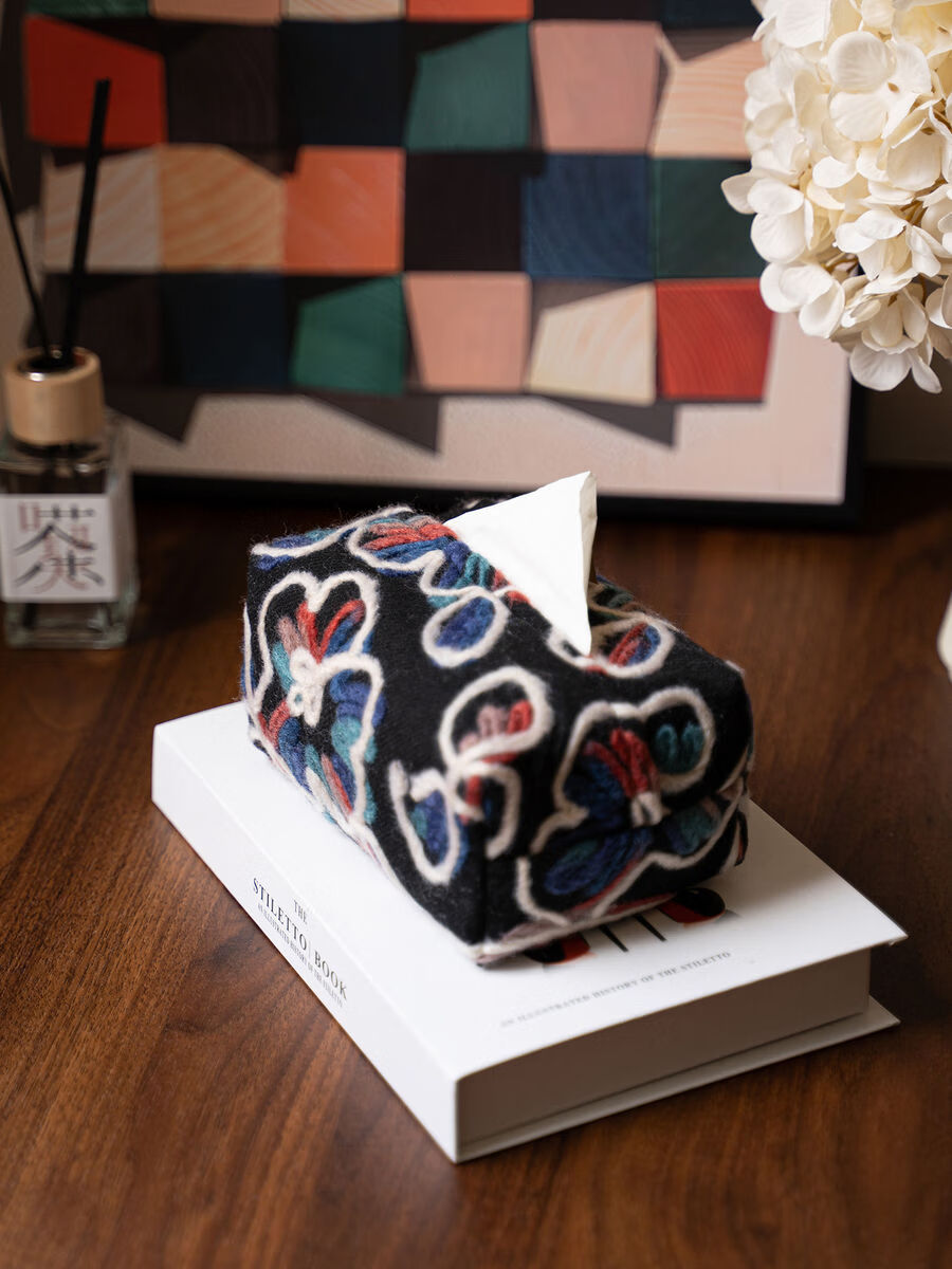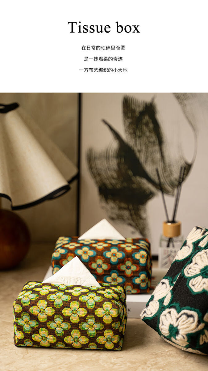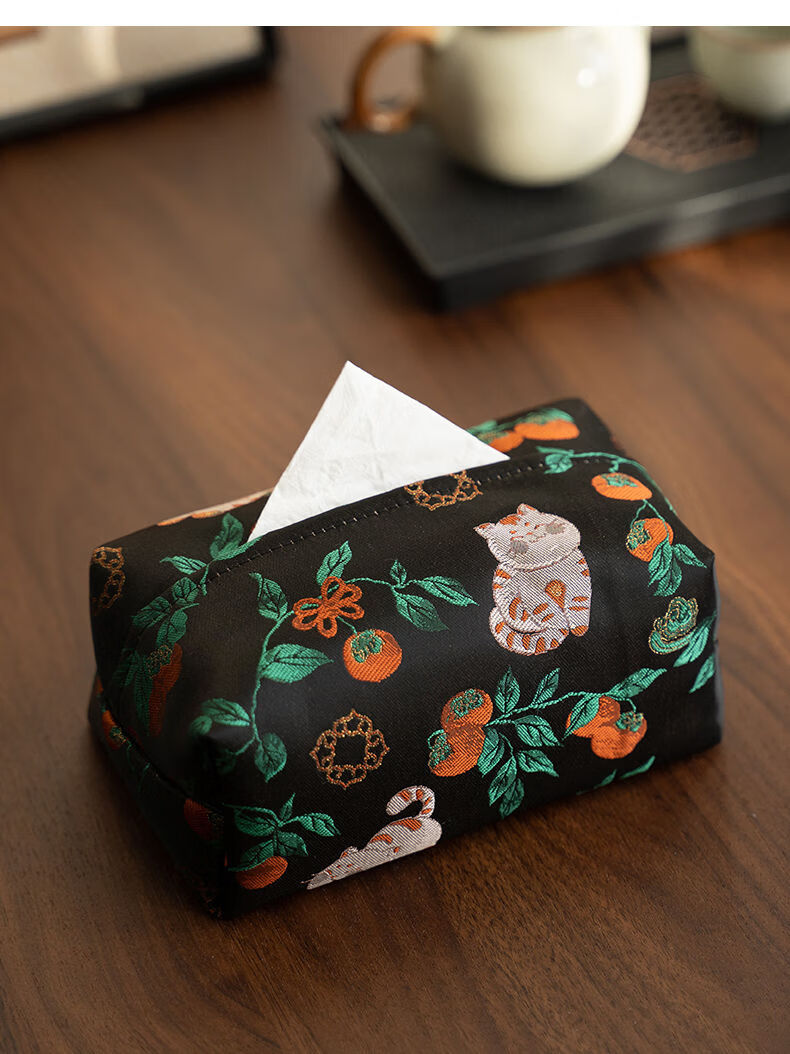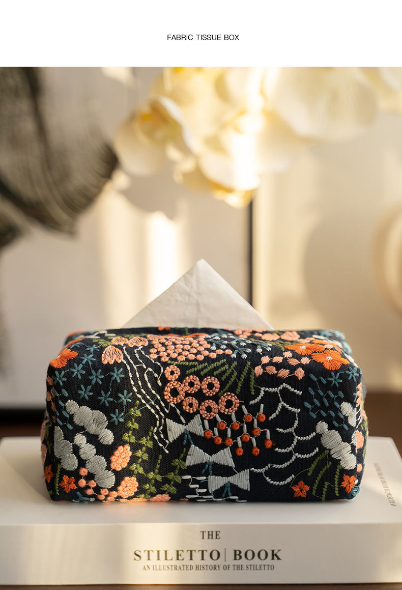 Fantasy three-dimensional tissue box living room tissue box tissue cover tissue bag tissue storage box embroidery + fire tree silver flower + yellow and black