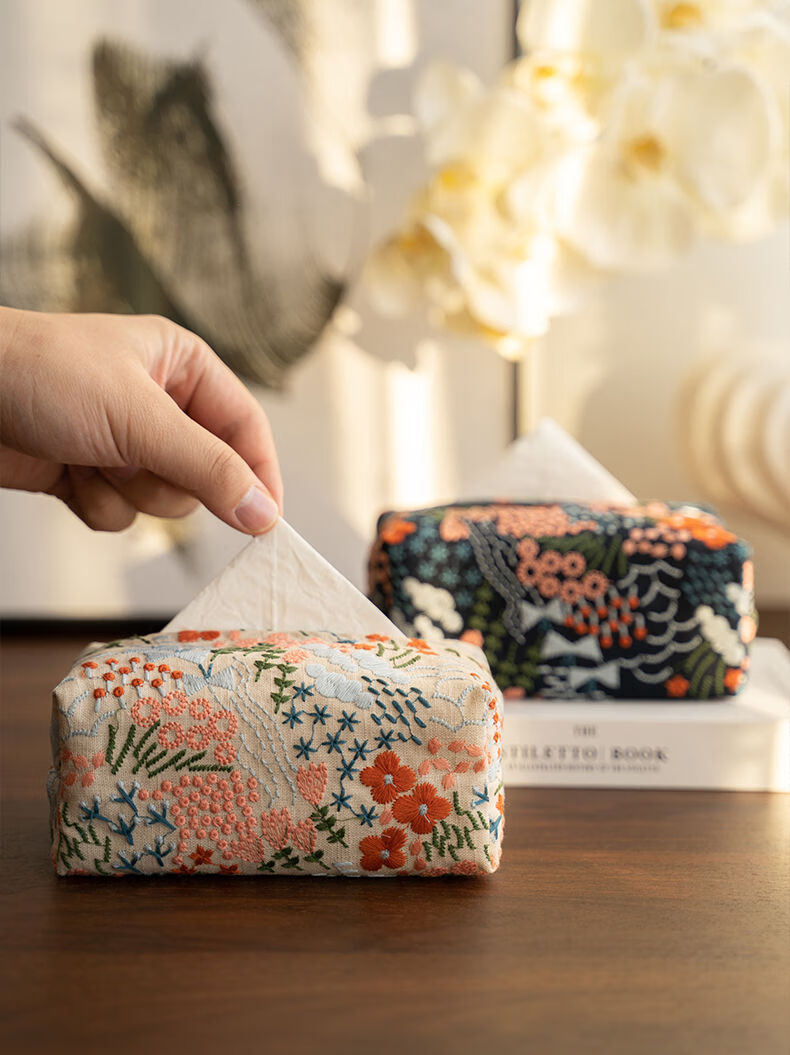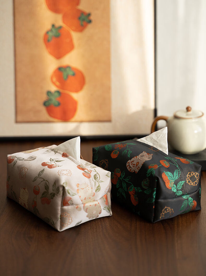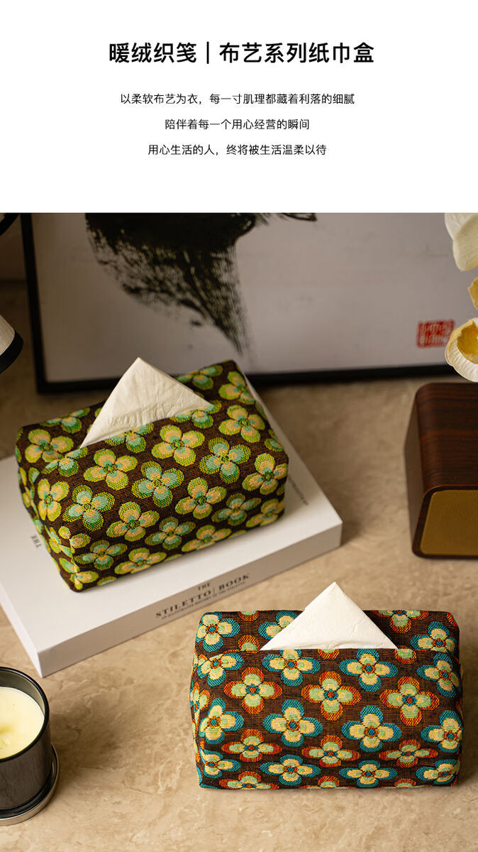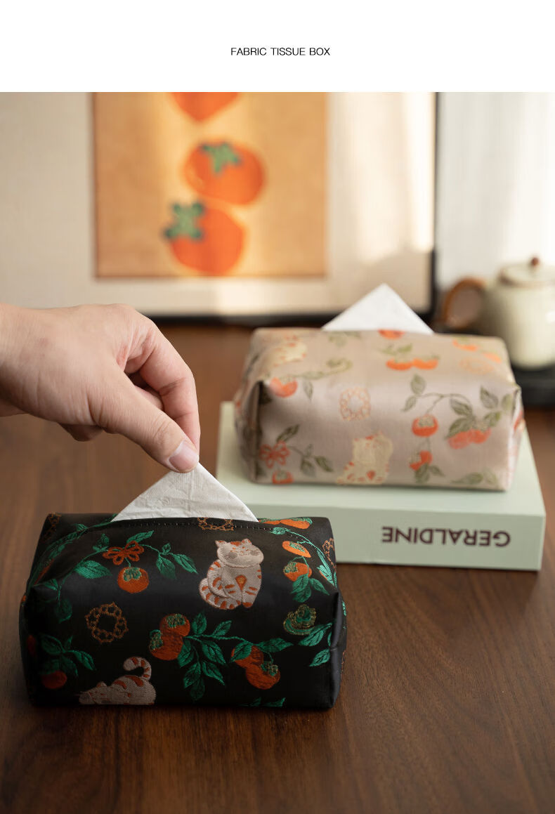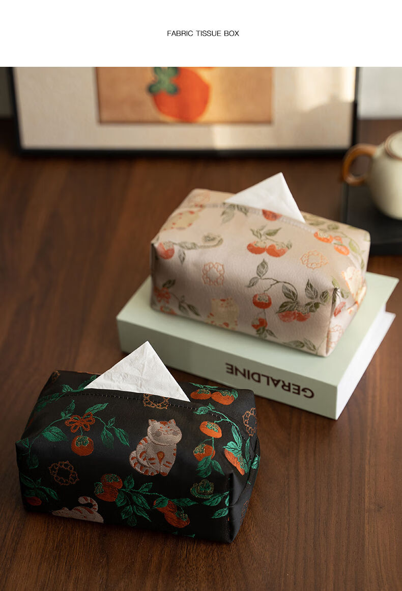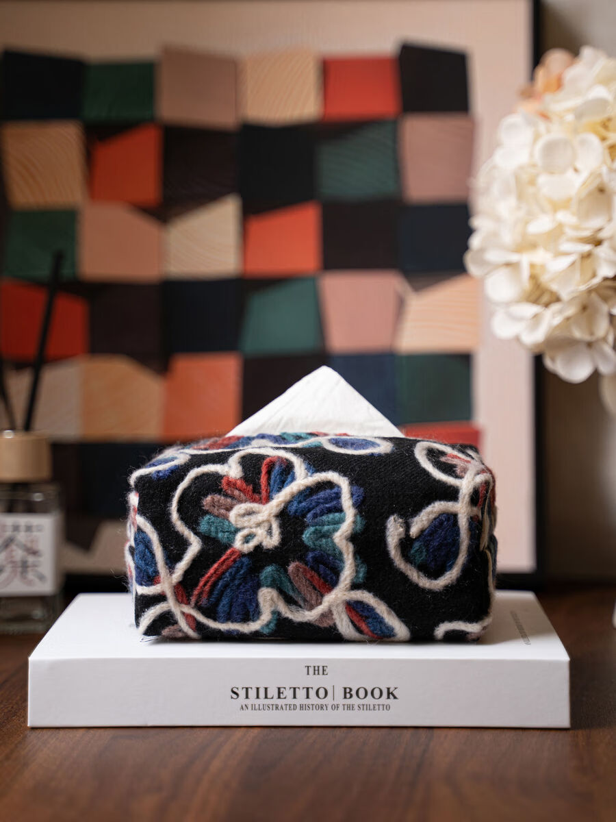 Fantasy three-dimensional tissue box living room tissue box tissue cover tissue bag tissue storage box embroidery + fire tree silver flower + yellow and black