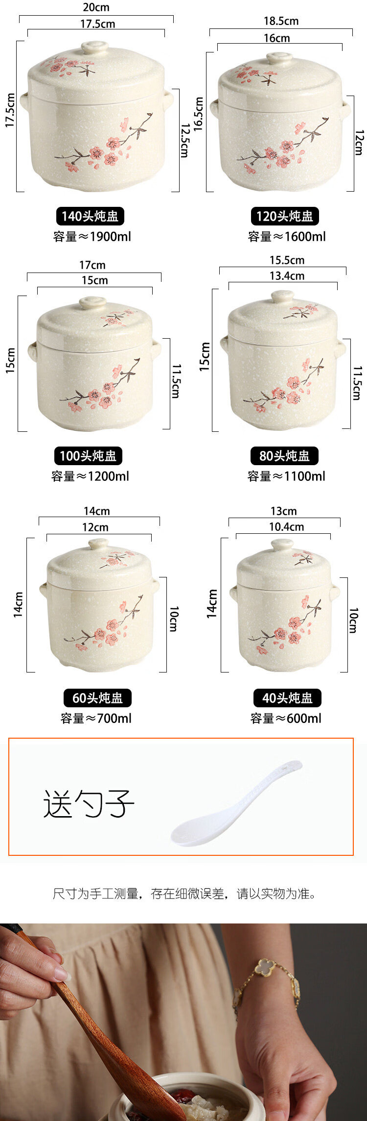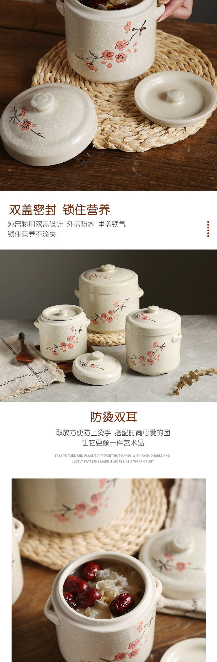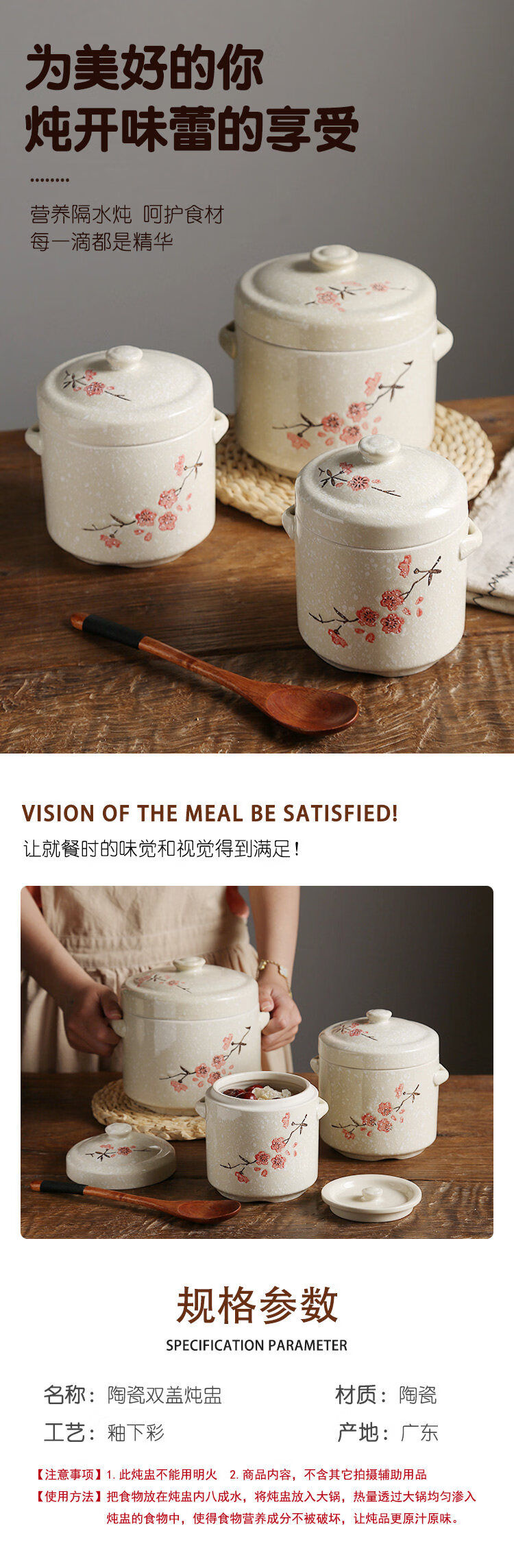Tuojin Jingdezhen ceramic water-proof stew pot with lid, double lid and double ears, stewed bird's nest cup, steamed egg cup, stew pot, household large inner pot, 40-head porcelain spoon, suitable for 1 person, 600ml