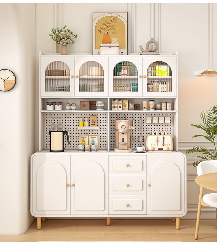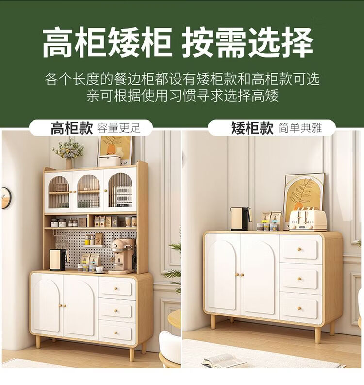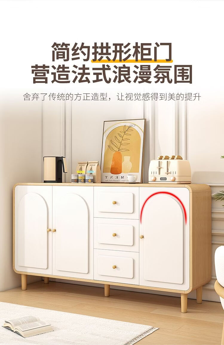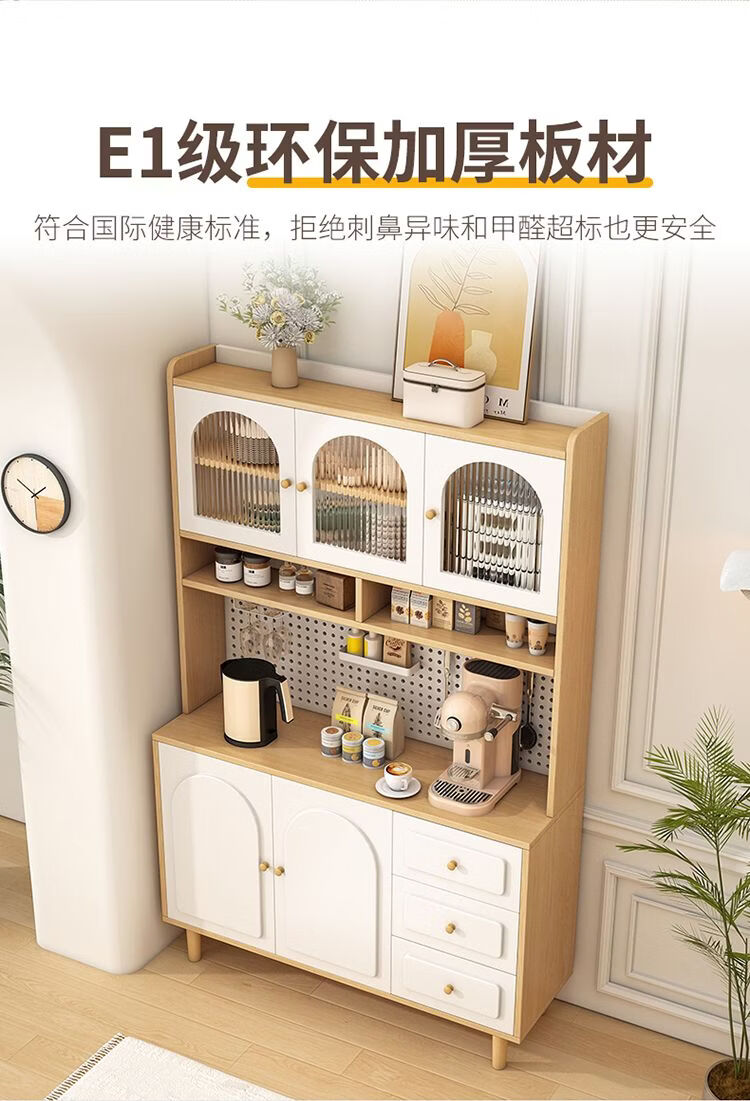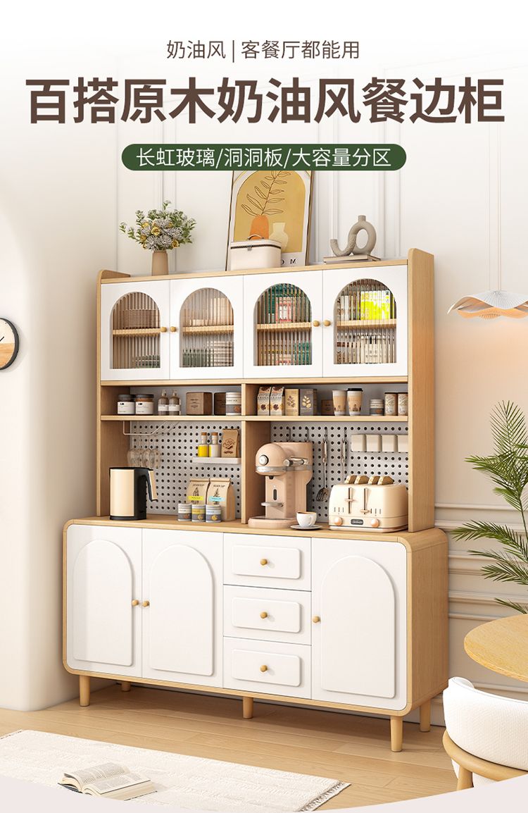 Haishi Shengbao log cream style sideboard wall-mounted integrated storage cabinet kitchen guest dining room multi-functional storage storage cabinet wine cabinet 60*40*81 milk white/embossed door delivered to the home