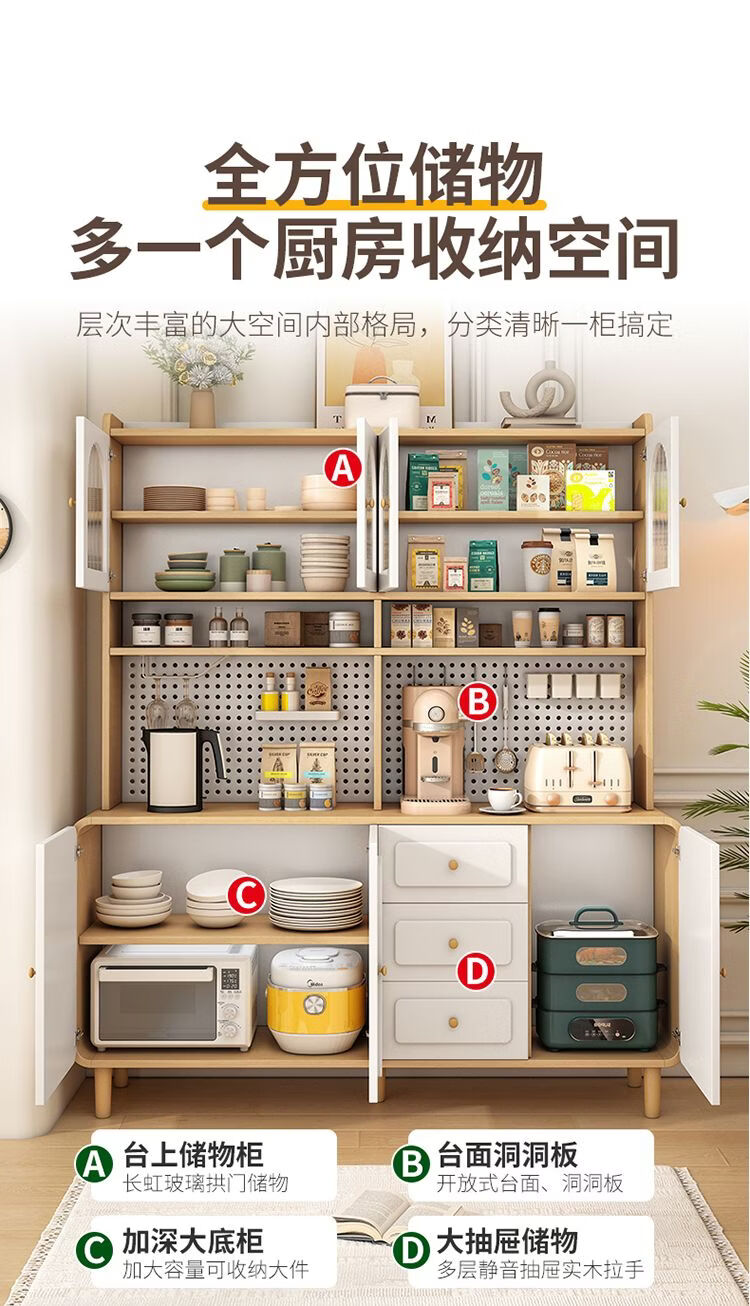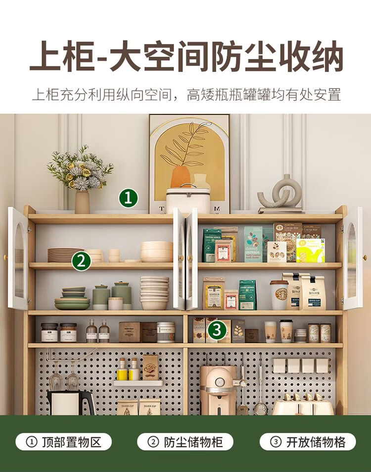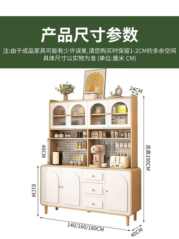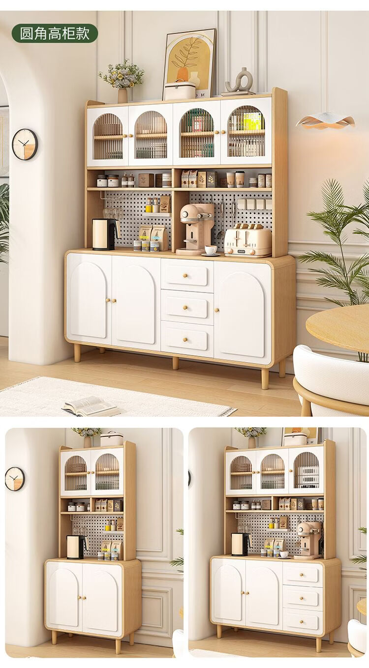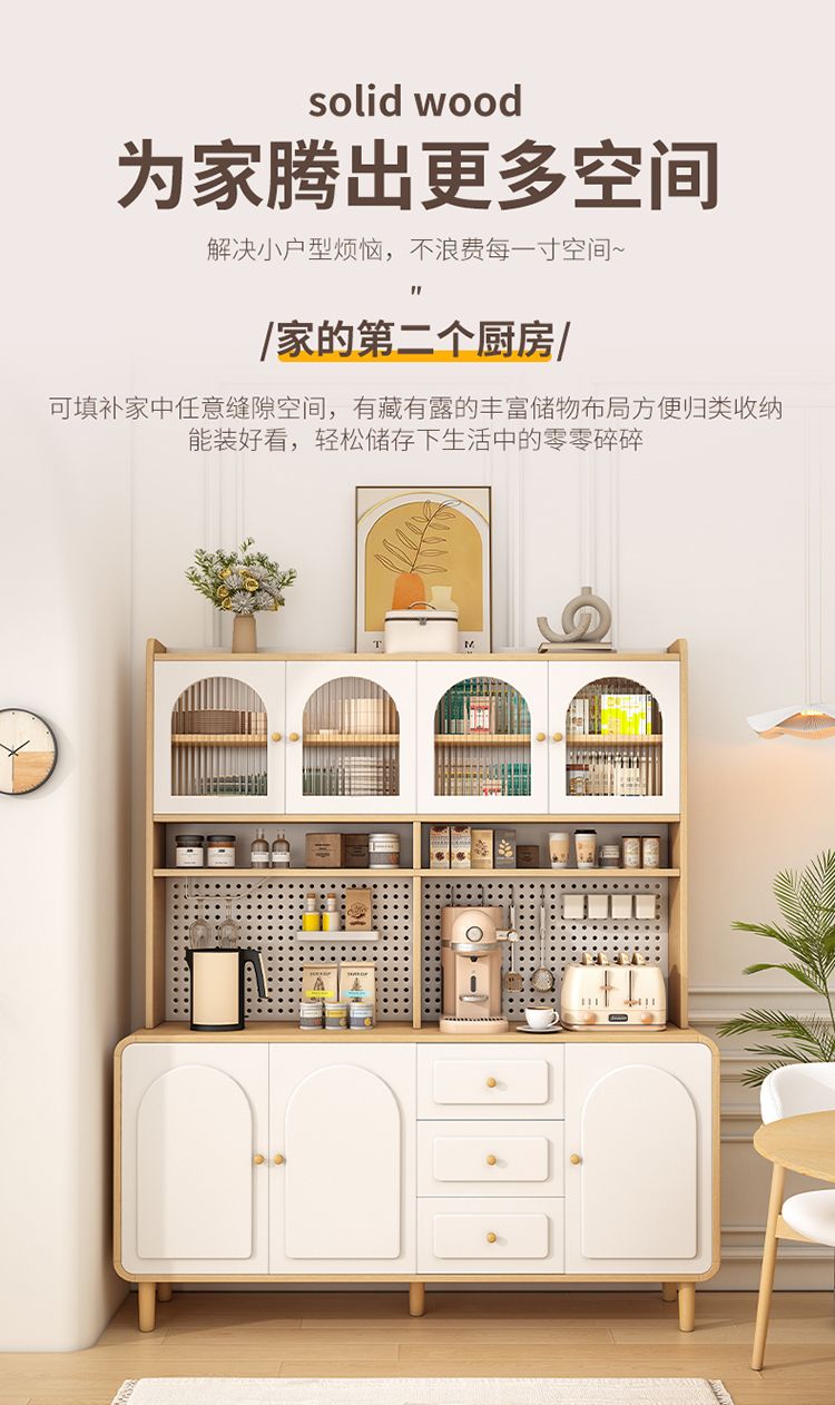 Haishi Shengbao log cream style sideboard wall-mounted integrated storage cabinet kitchen guest dining room multi-functional storage storage cabinet wine cabinet 60*40*81 milk white/embossed door delivered to the home