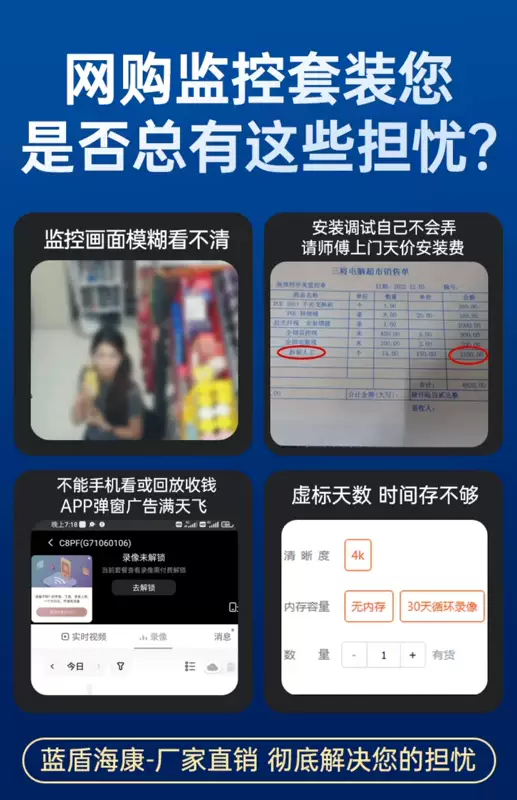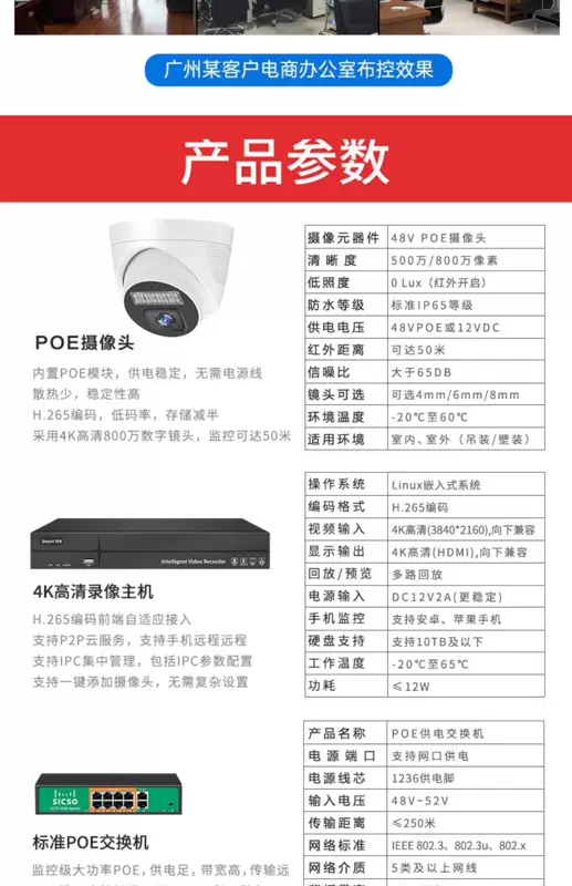 Yusenyi Blue Shield Haikang 4K HD Monitor Equipment Set Full Set of Poe Network Cable Powered Surveillance Cameras More Channels to Make Plans Please Contact Customer Service No Memory 4mm+3MP