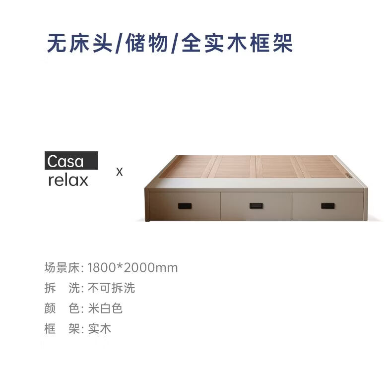 VALEN CASA has no bedside, all solid wood tatami, leather floor bed, beech wood silent ribbed frame, customized size. Casa bed total height 24 meters, white + German imported S-grade beech ribbed frame, 1800mm*2000mm side-drawing structure